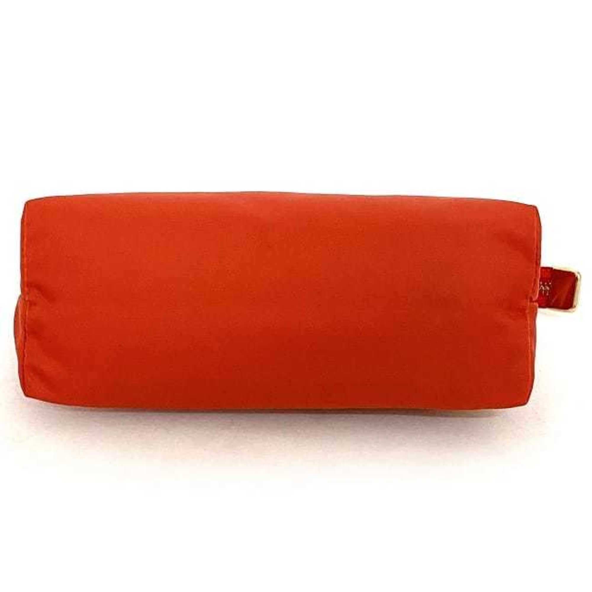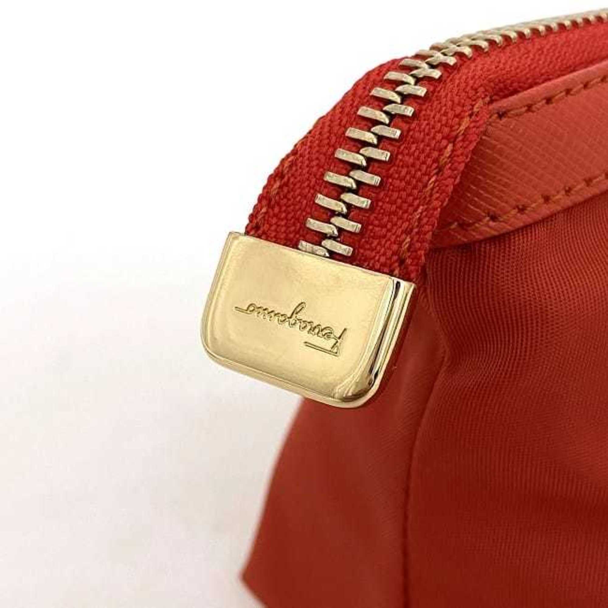 This Salvatore Ferragamo Vara pouch is a chic and versatile accessory designed for women. Crafted from a combination of nylon and leather in a vibrant red color it exudes sophistication and style.