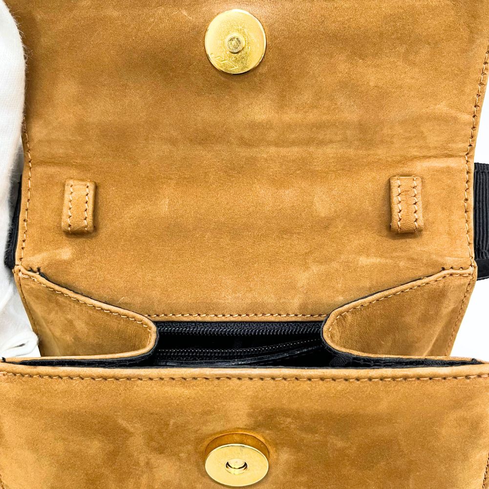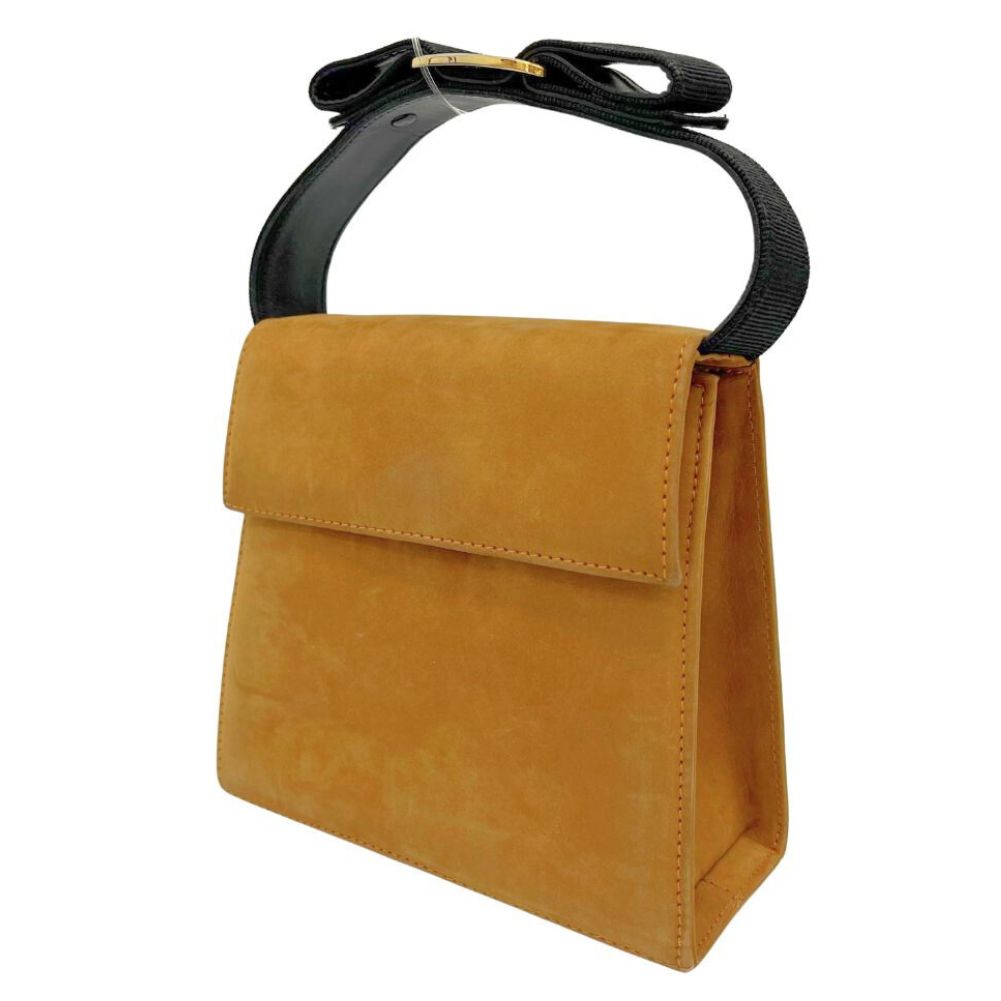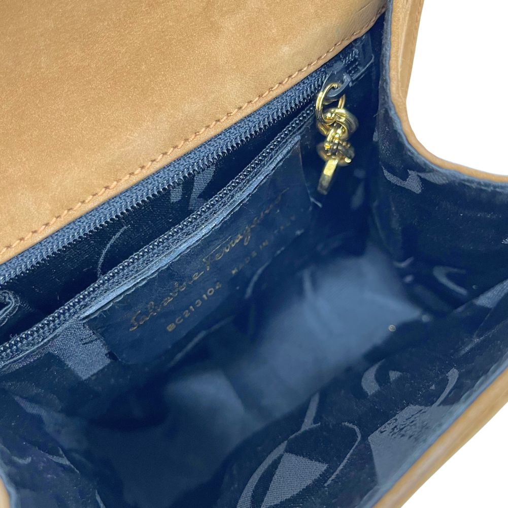 The Salvatore Ferragamo Vara handbag a stylish accessory for ladies is crafted from luxurious suede offering a touch of sophistication to any ensemble. Its practical design includes a convenient magnet closure and an interior zipper pocket for organization.