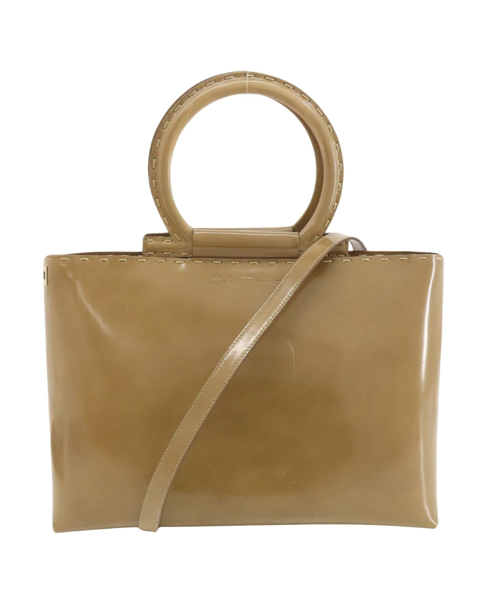 Brand: Salvatore Ferragamo Model: Gancini Color: Beige Material: Leather Inclusions: Shoulder strap Dimensions: 21cm x 31cm x 10.5cm Handle Length 28cm Strap Length 85cm Serial number: EW-21 2736 Country of origin: Italie Condition: AB - good condition. If you're in search of a bag that is both practical and elegant then this Salvatore Ferragamo gancini bag will be perfect for you! It has the ability to charm fashion enthusiasts whether they are women with its captivating beauty. The item shows traces of usage with visible scratches and dirt but is generally in good condition. Overall there are slight scratches and the overall traces of use include scuff marks. We recommend that you look at all the photos before making your purchase to ensure that you are satisfied with the condition of the item.