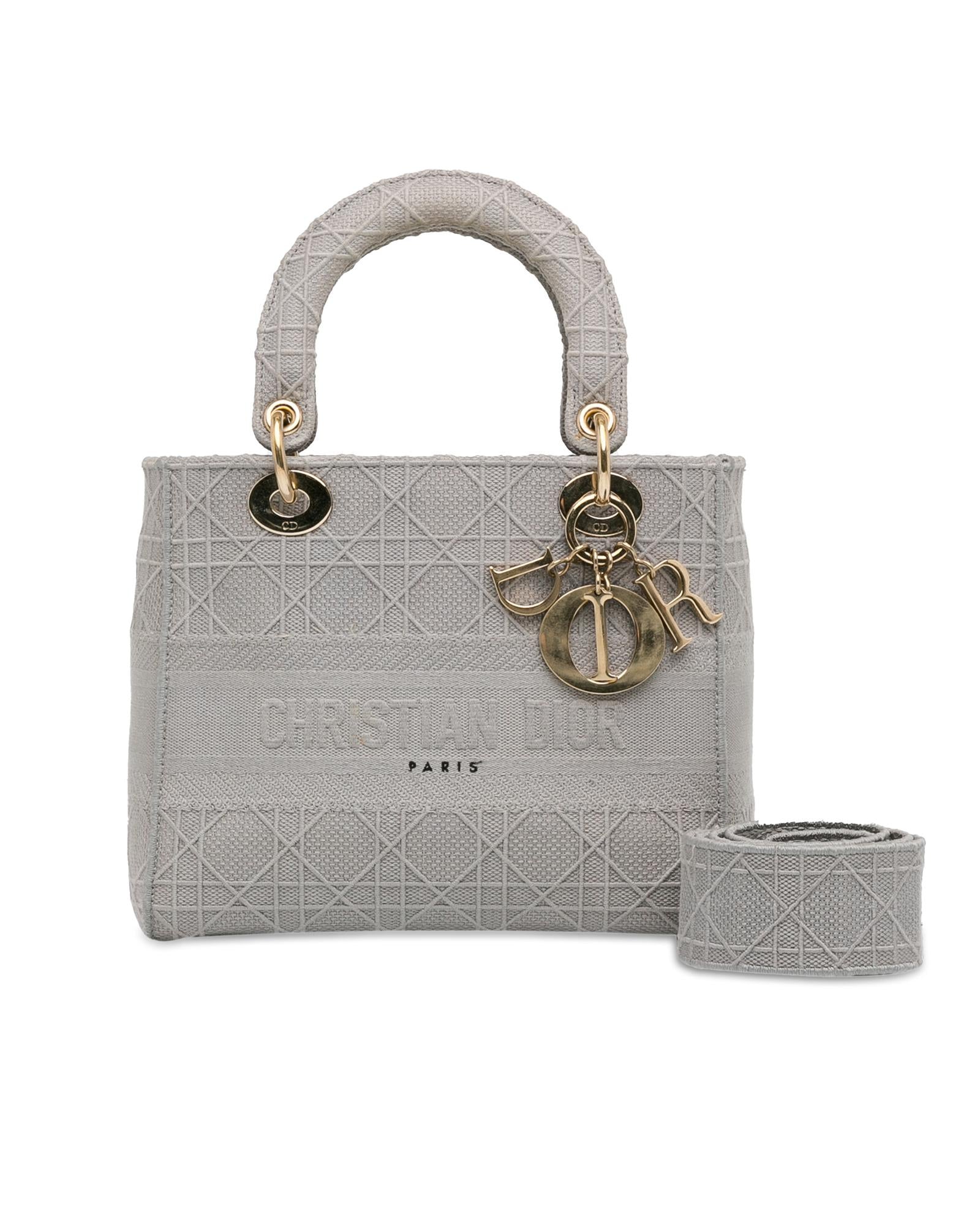 The Lady D-Lite features a canvas body flat handles a detachable strap a top flap and interior zip and slip pockets.Brand: Dior Vintage