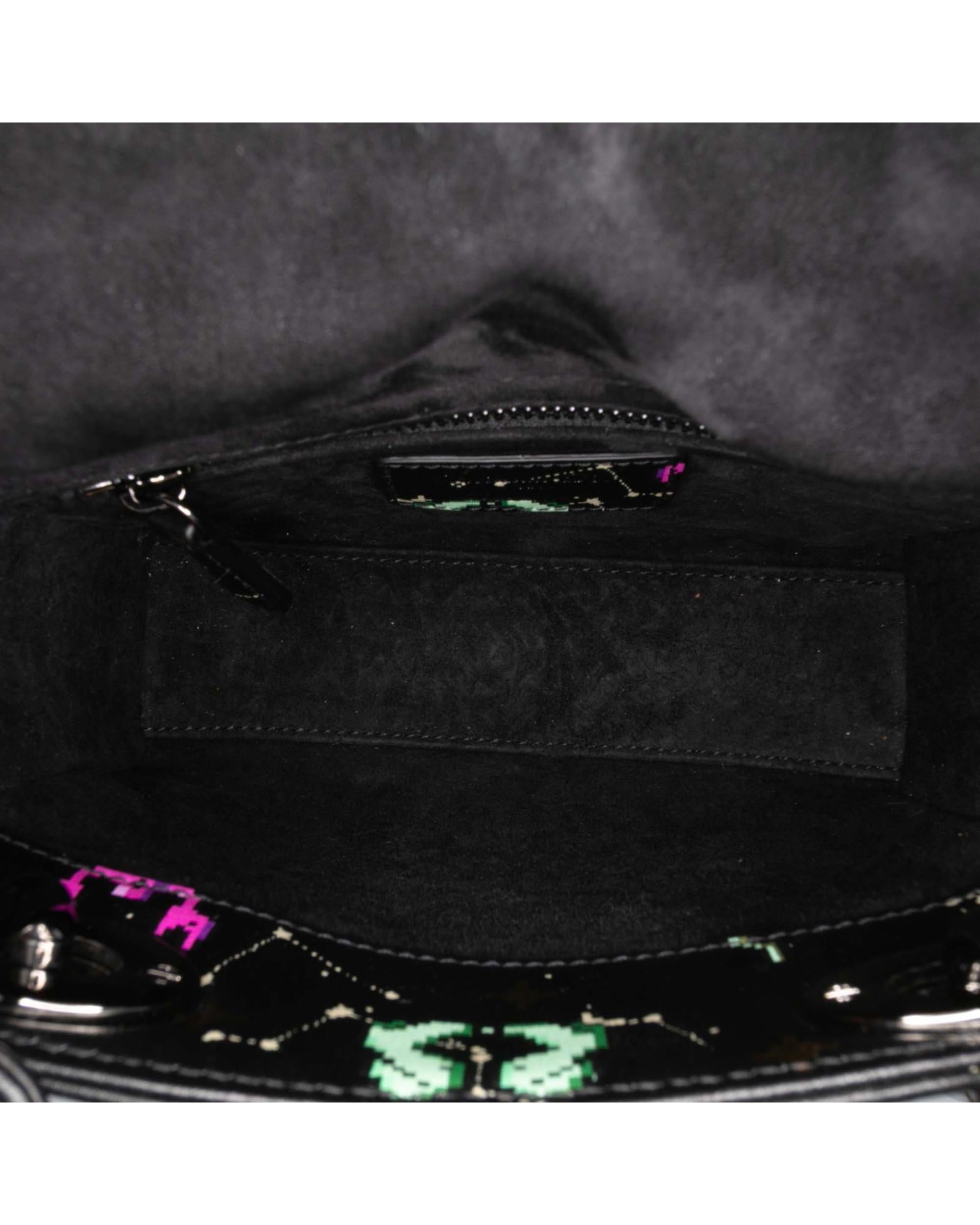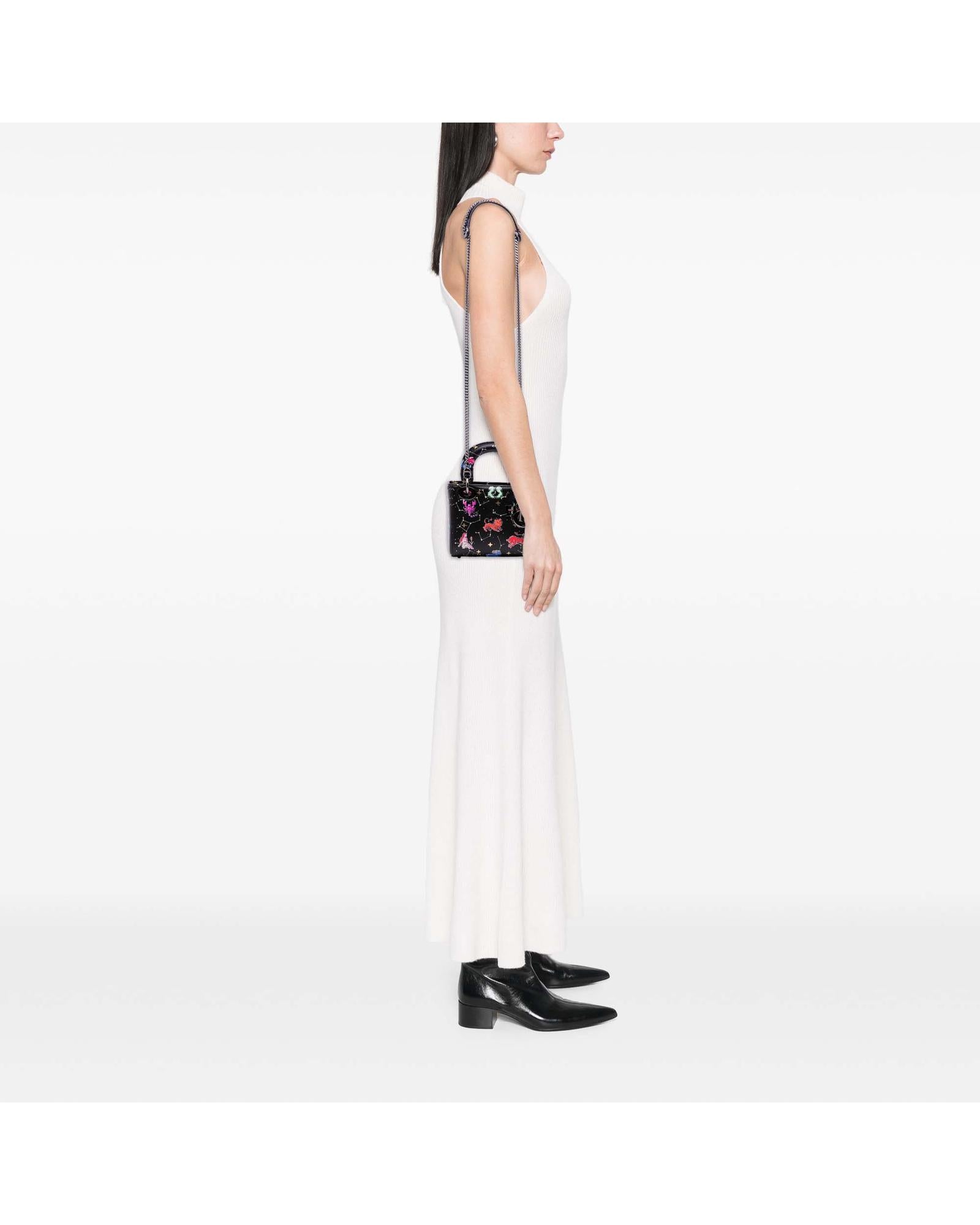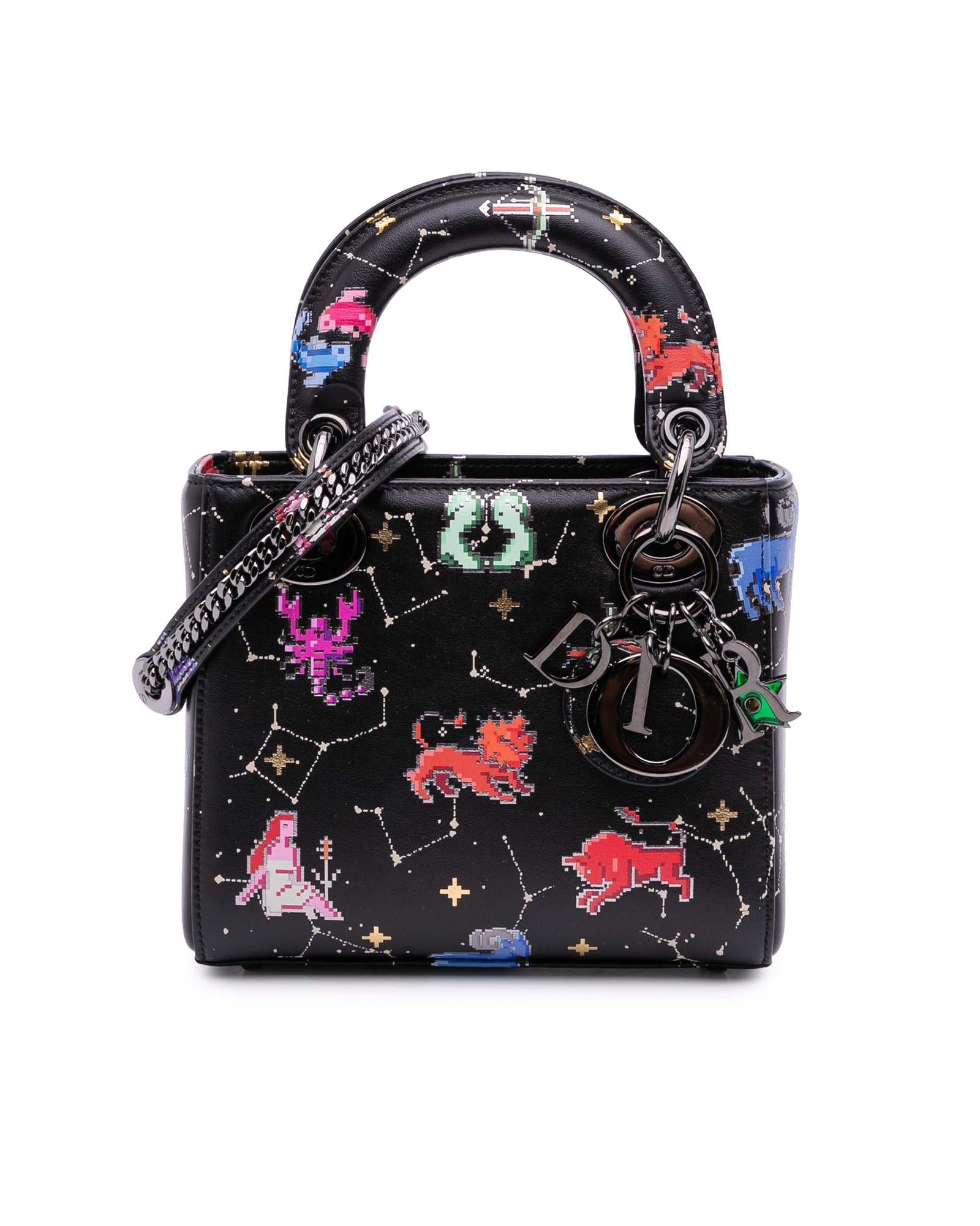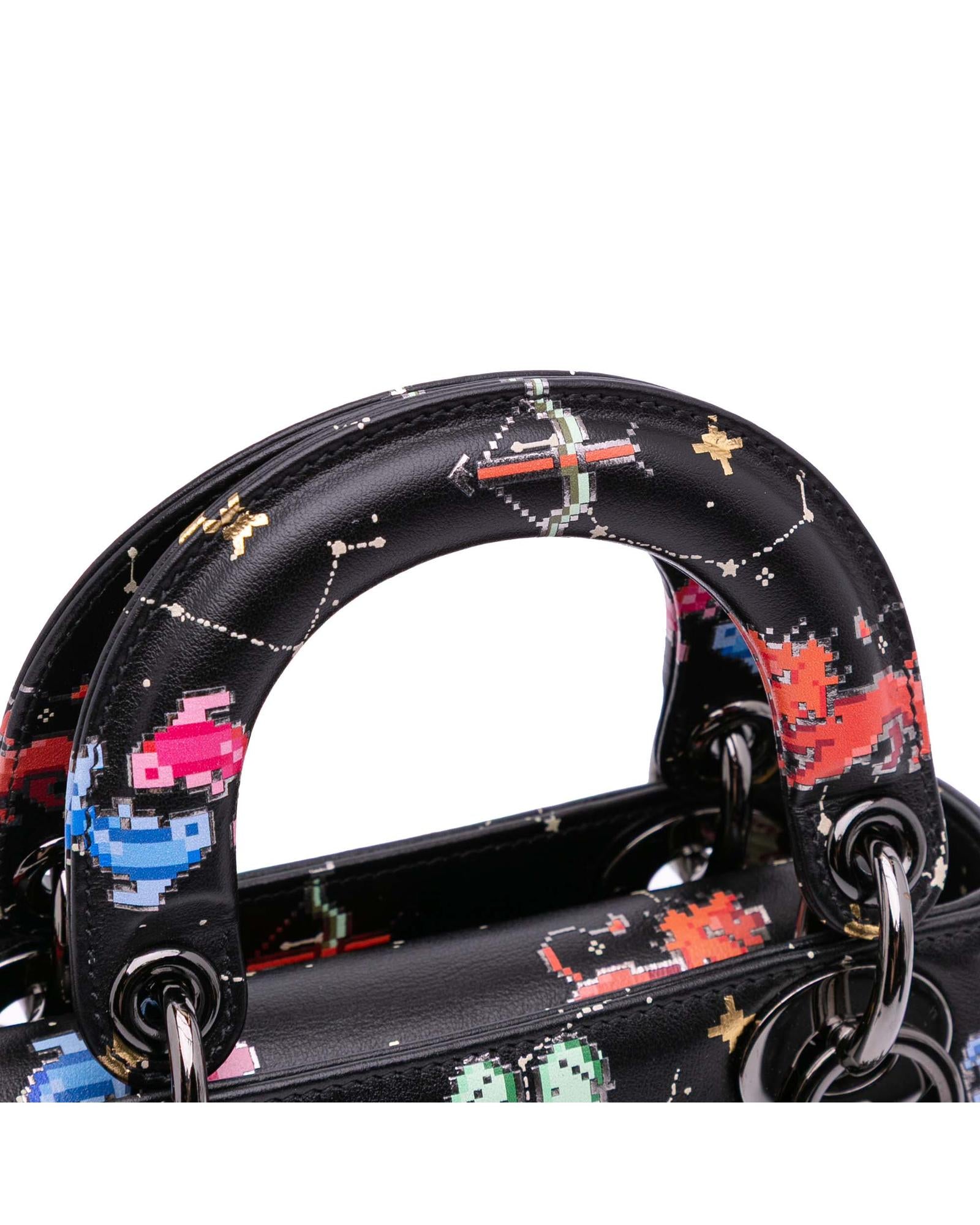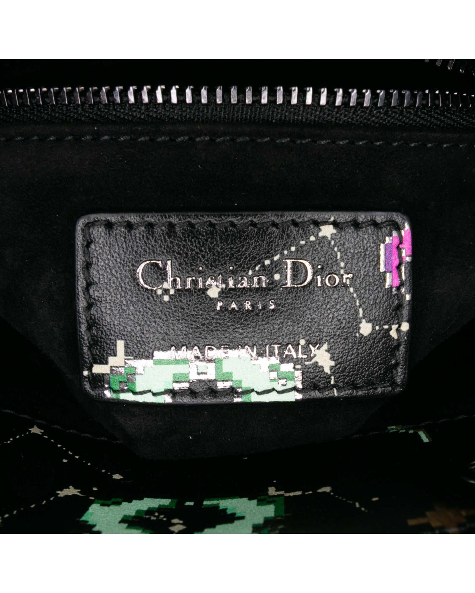 The Lady Dior features a printed leather body flat leather handles a detachable chain link strap with leather shoulder guard a fold in flap closure and an interior zip pocket.Brand: Dior Vintage