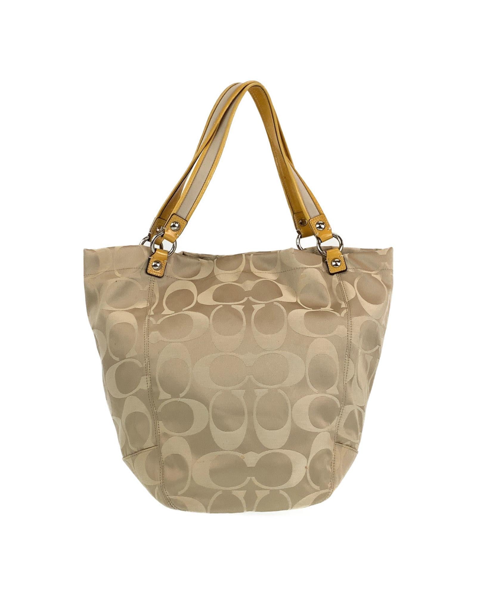 - Item name: Coach Leather Signature Beige Silver Hardware Tote Bag