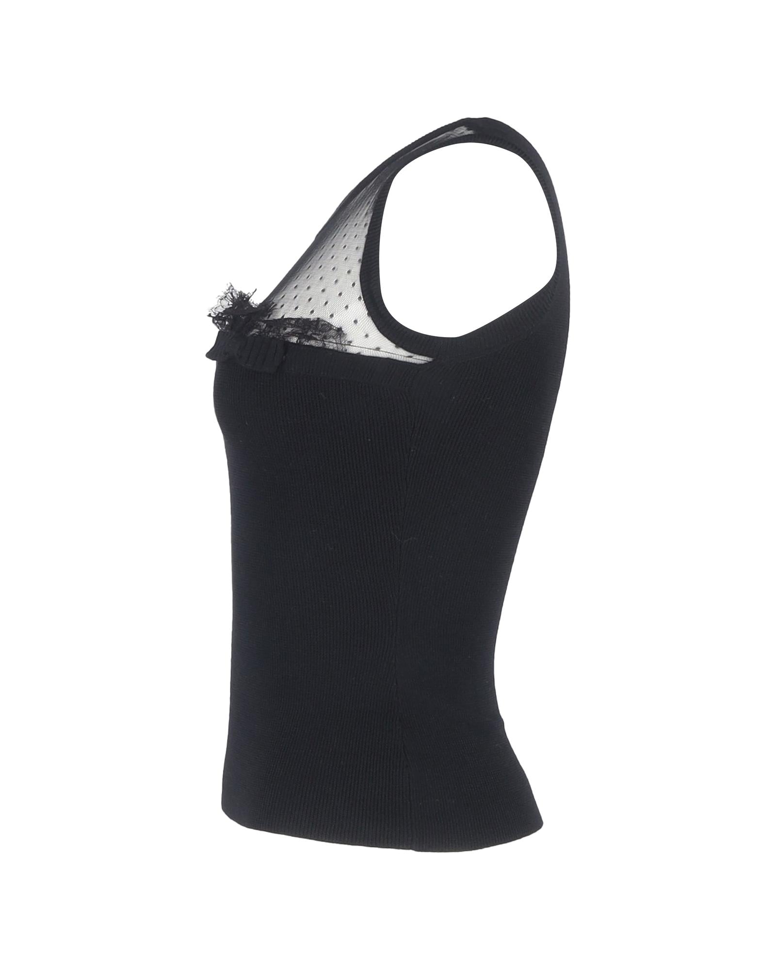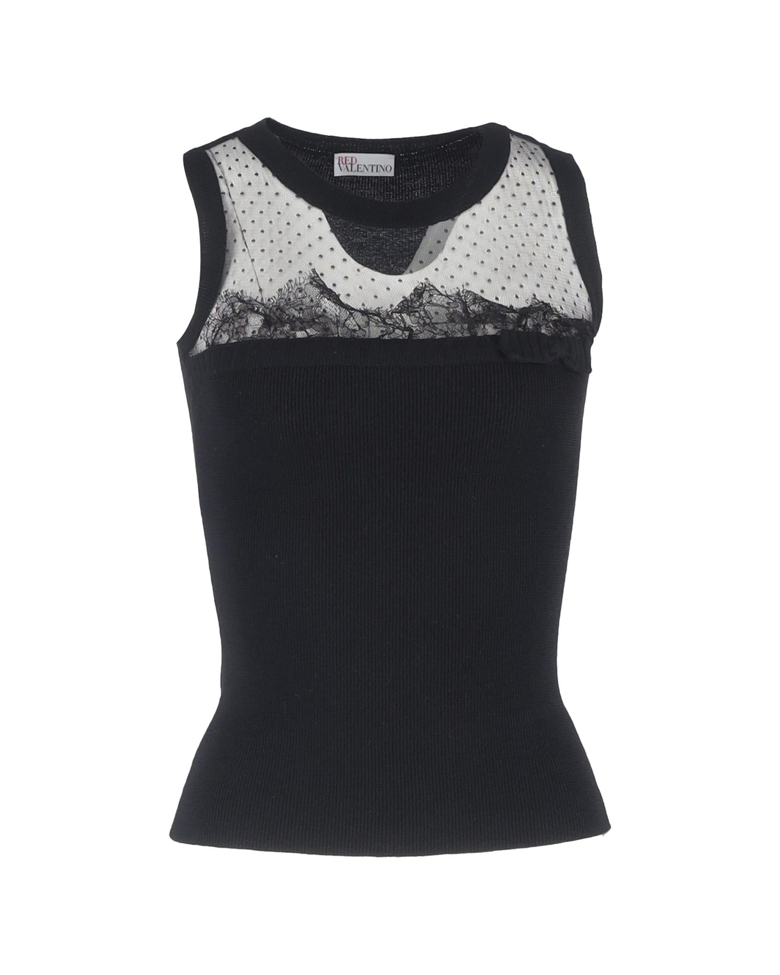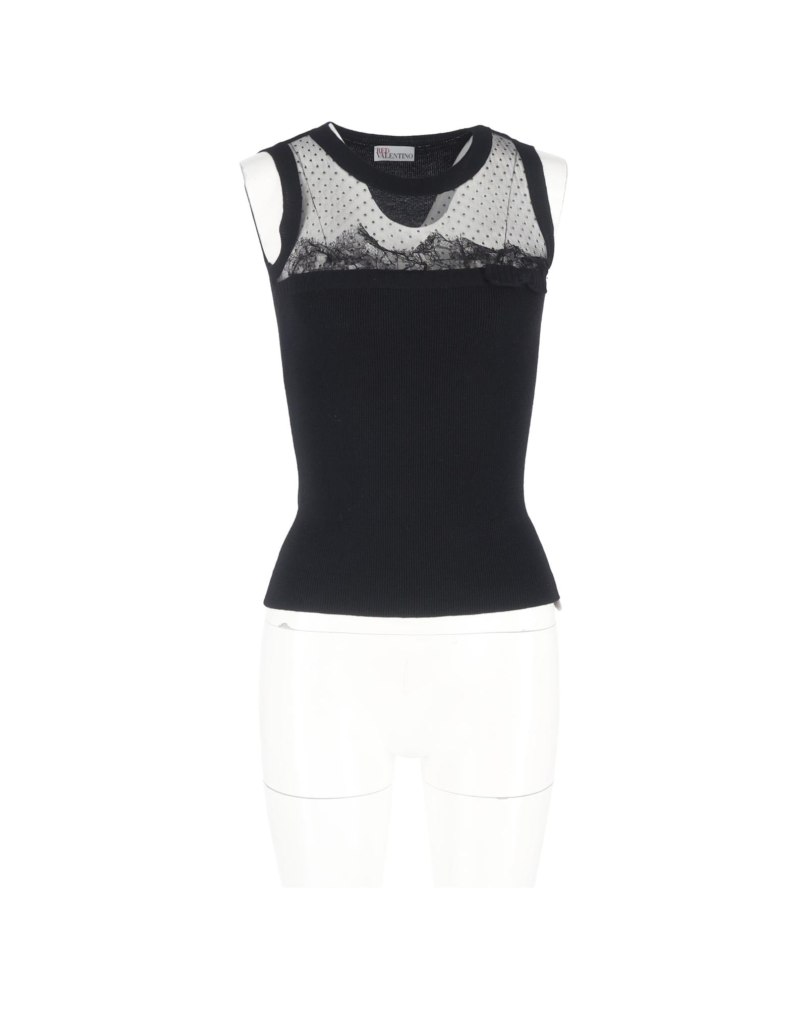 - RED Valentino Knitted Lace Detail Tank Top in Black Wool