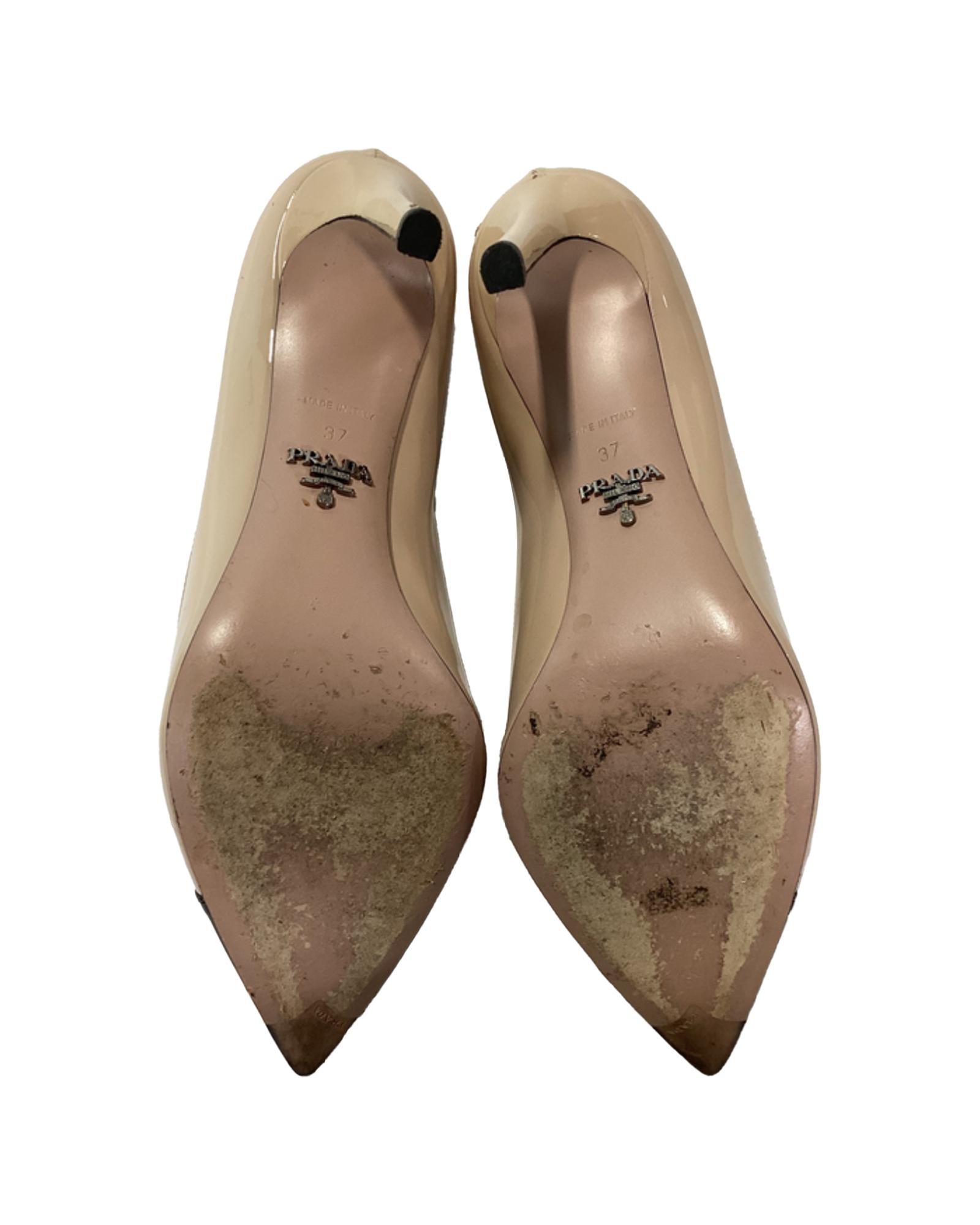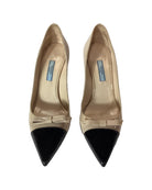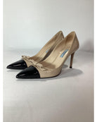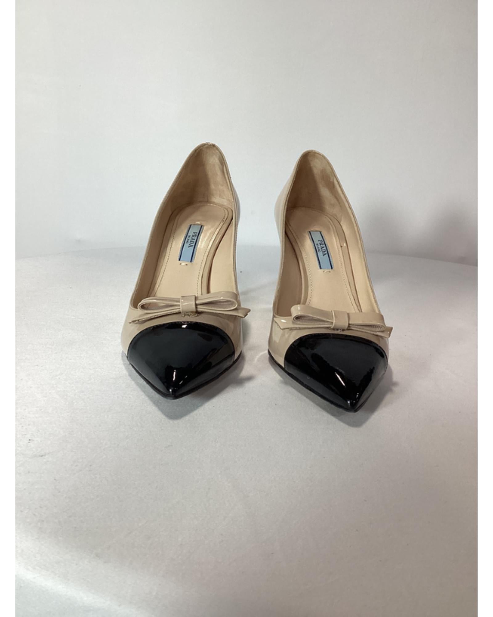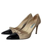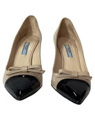 - Prada Cap Toe Bow Detail Pumps in Beige Patent Leather