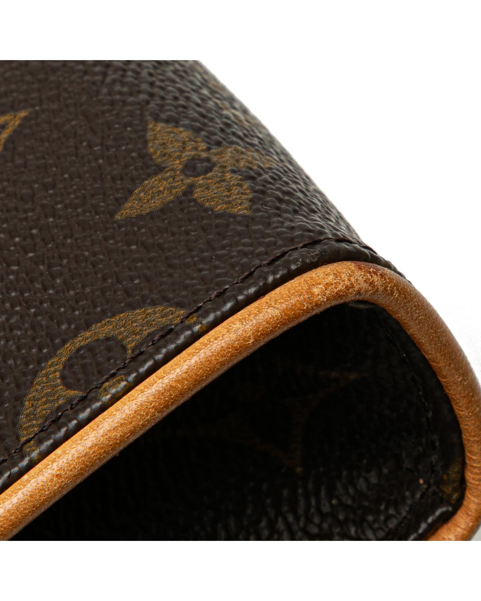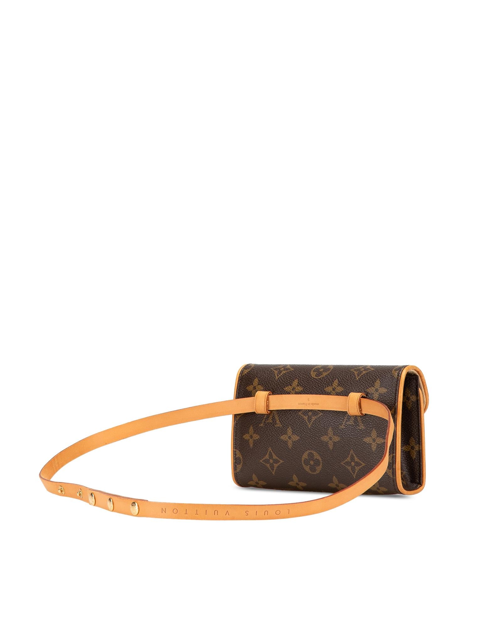 The Pochette Florentine features a monogram canvas body with vachetta leather trim an adjustable flat vachetta leather strap. and a front flap with magnetic snap closure.Brand: Louis Vuitton Vintage