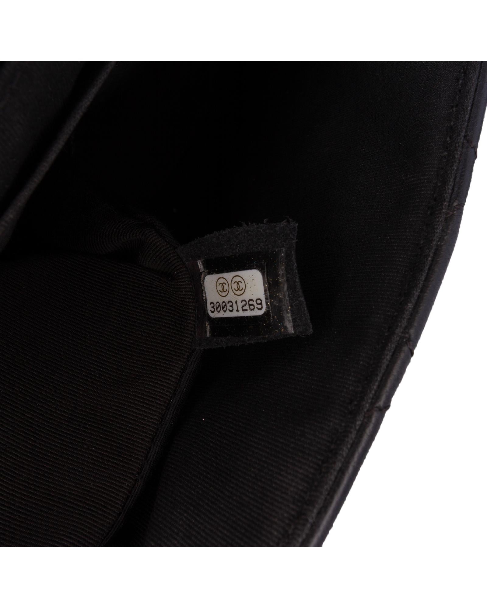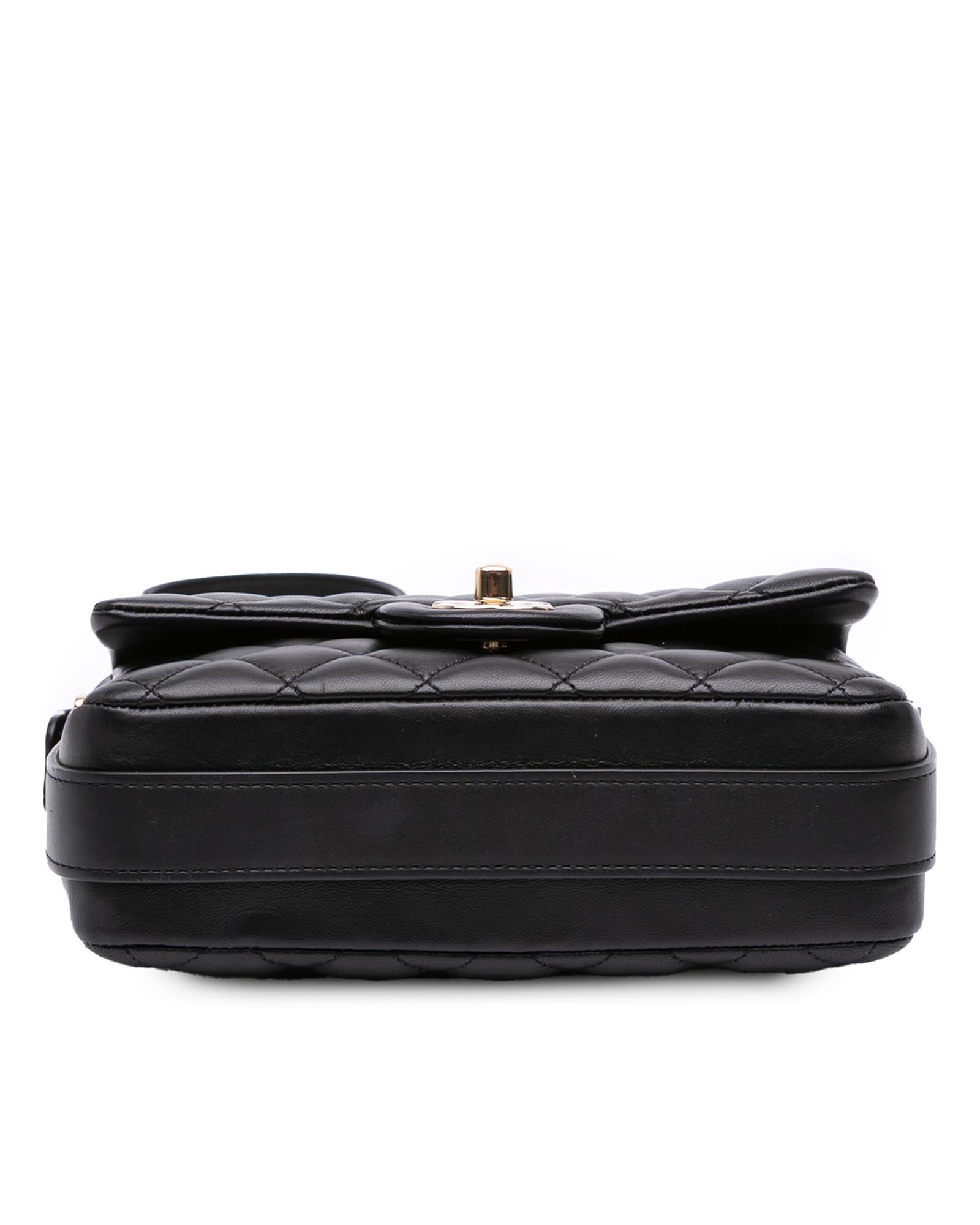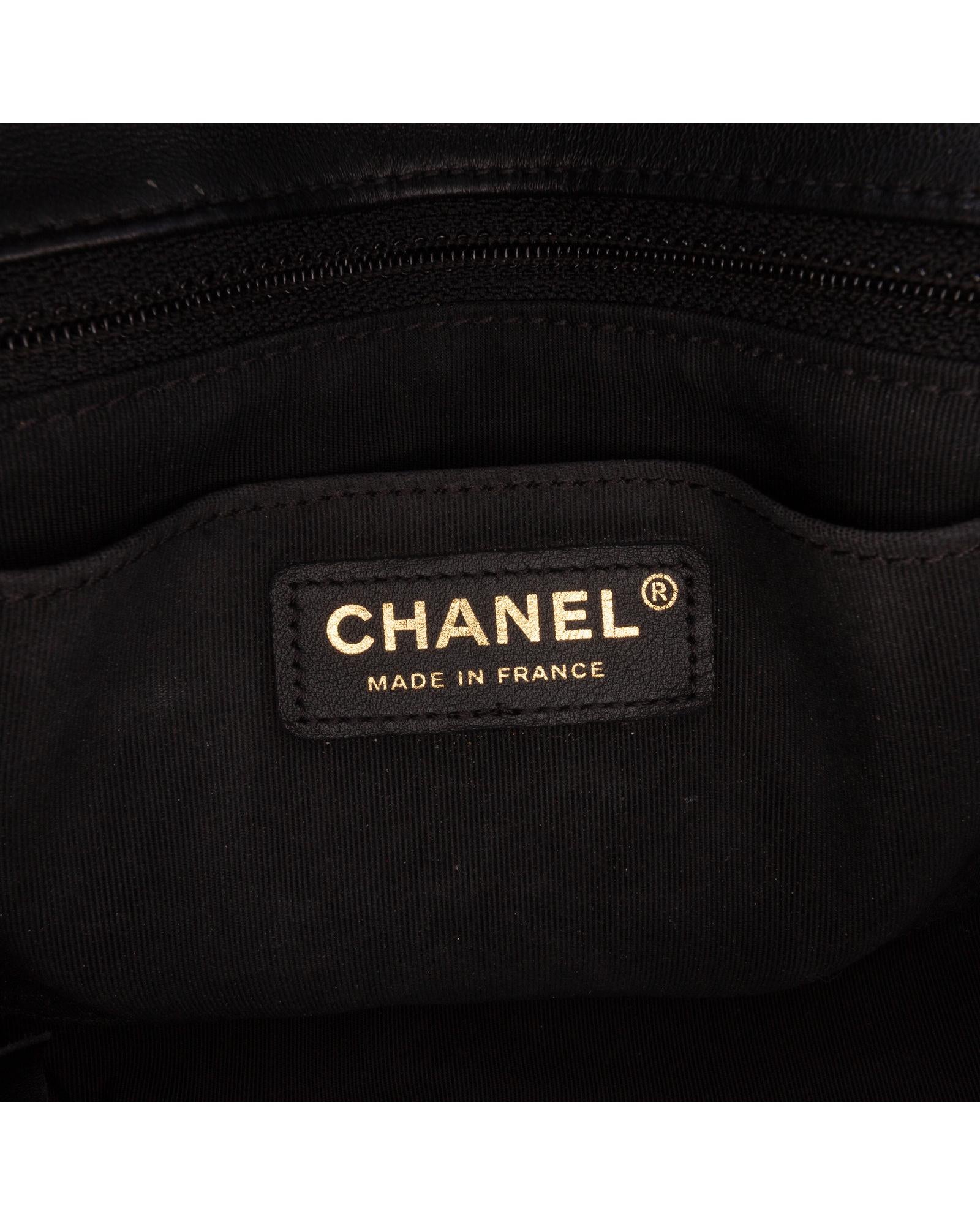 This bag features a quilted calfskin body a flat leather shoulder strap with leather ruffle detail a front flap with CC turn lock closure an exterior back slip pocket and interior zip and slip pockets.Brand: Chanel Vintage