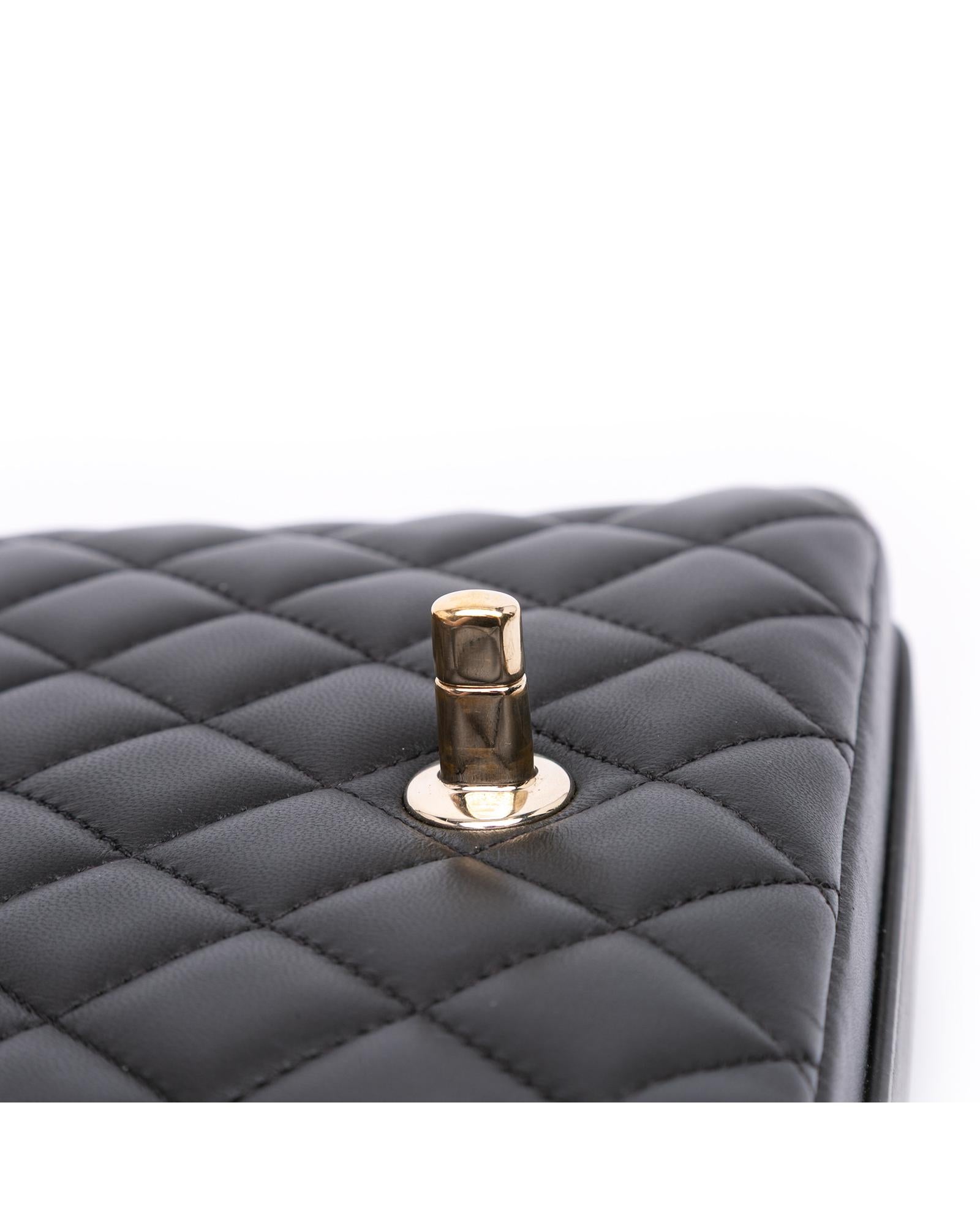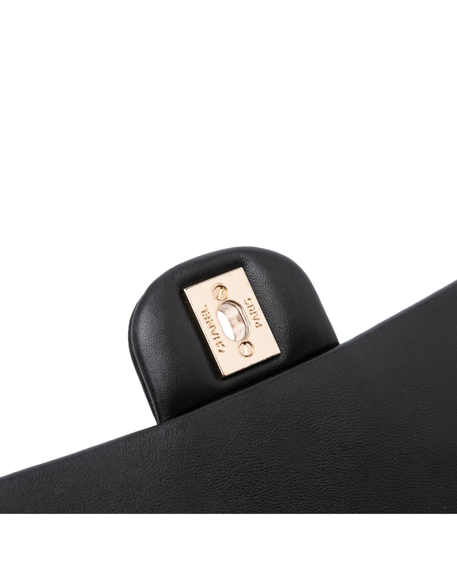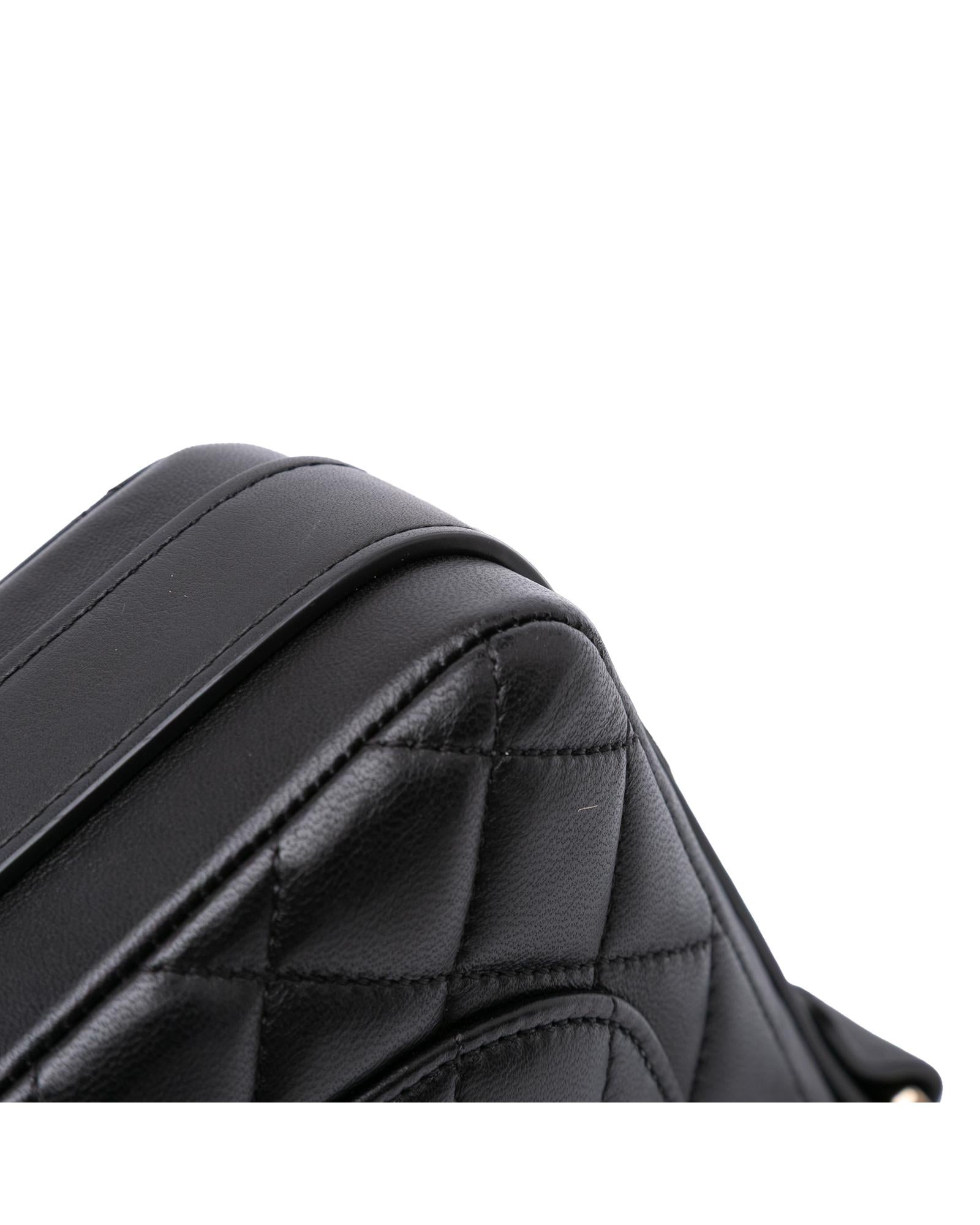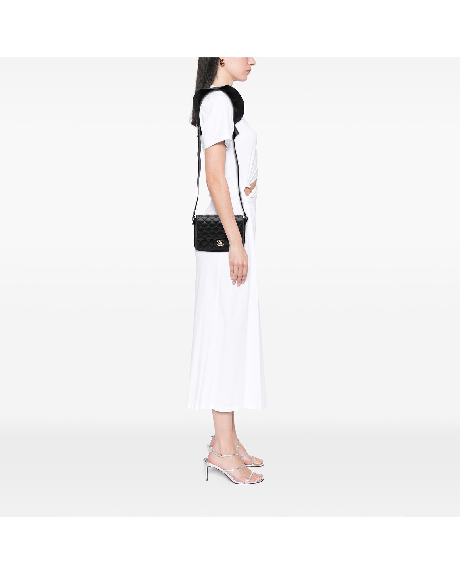 This bag features a quilted calfskin body a flat leather shoulder strap with leather ruffle detail a front flap with CC turn lock closure an exterior back slip pocket and interior zip and slip pockets.Brand: Chanel Vintage