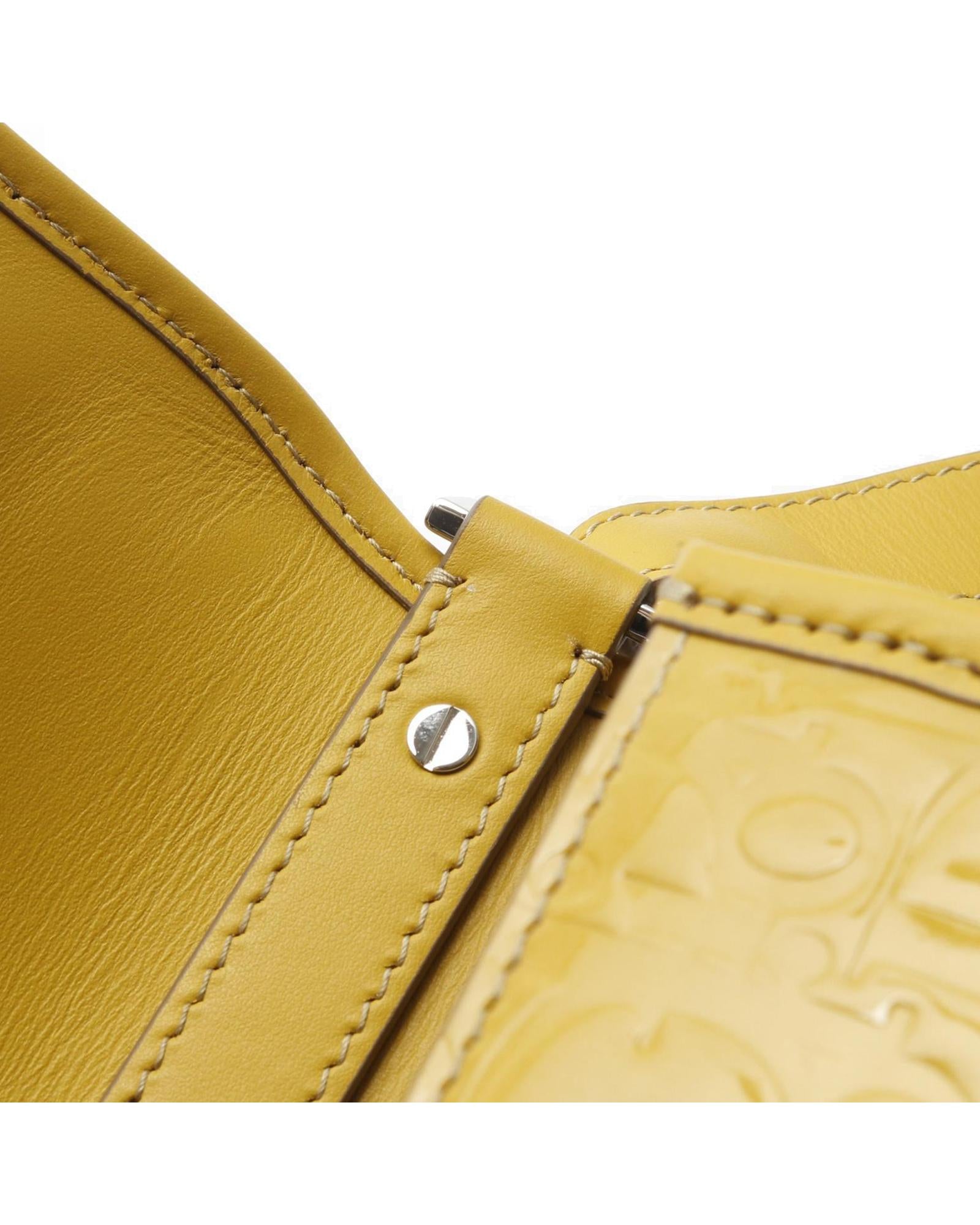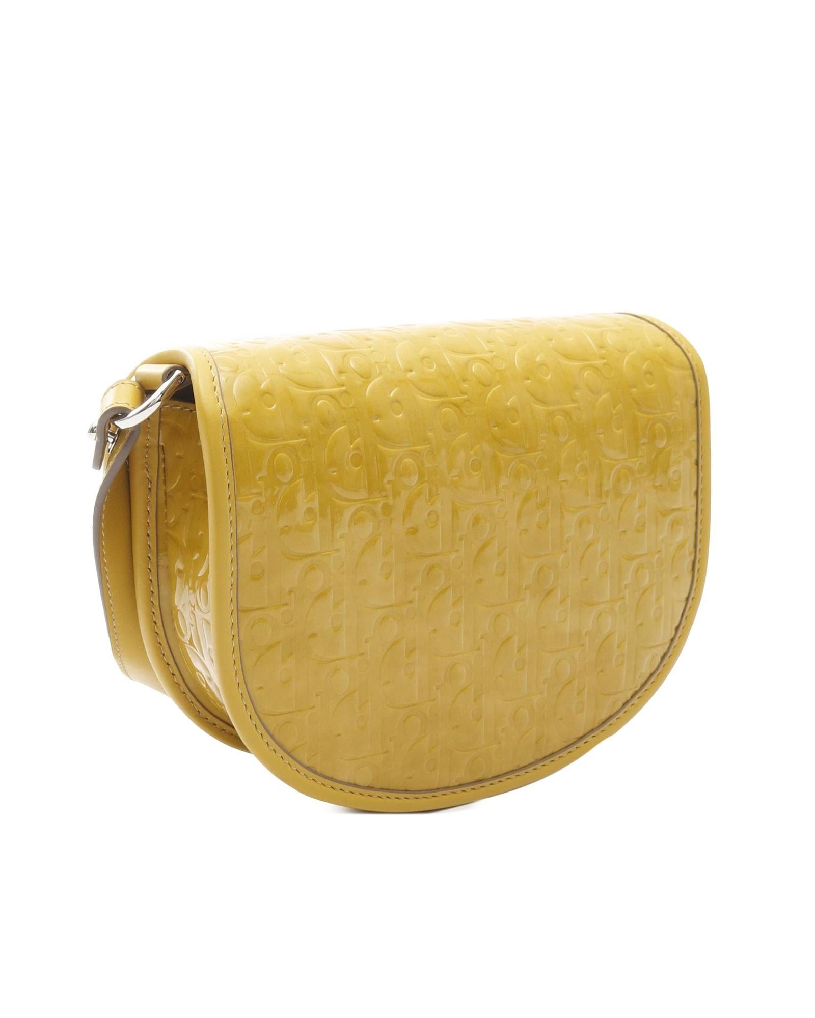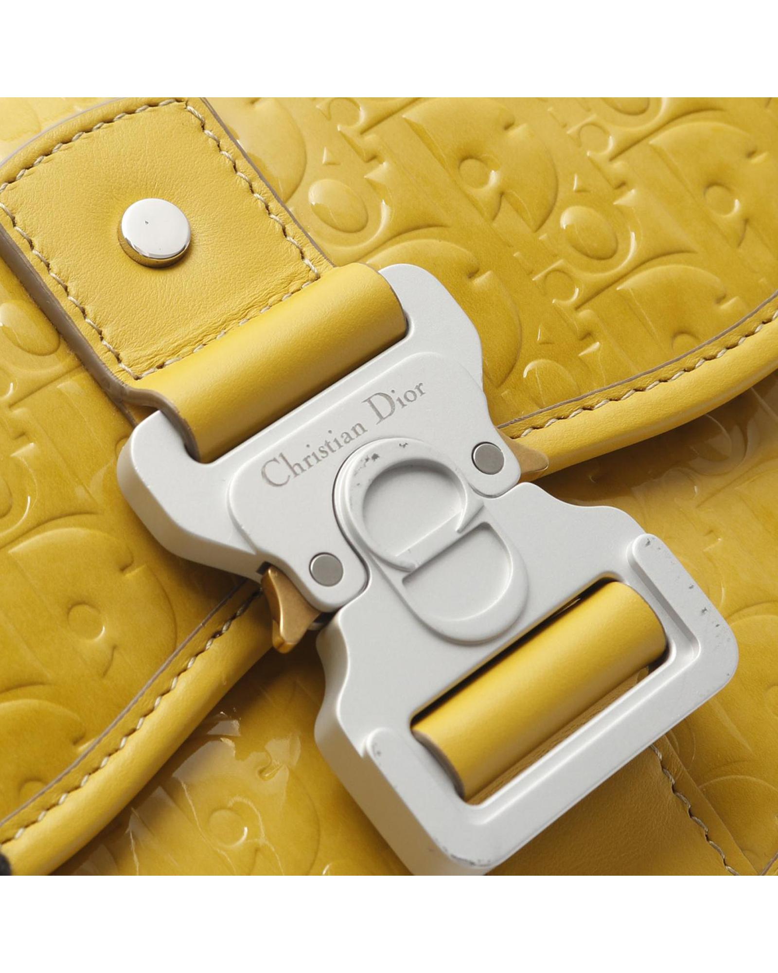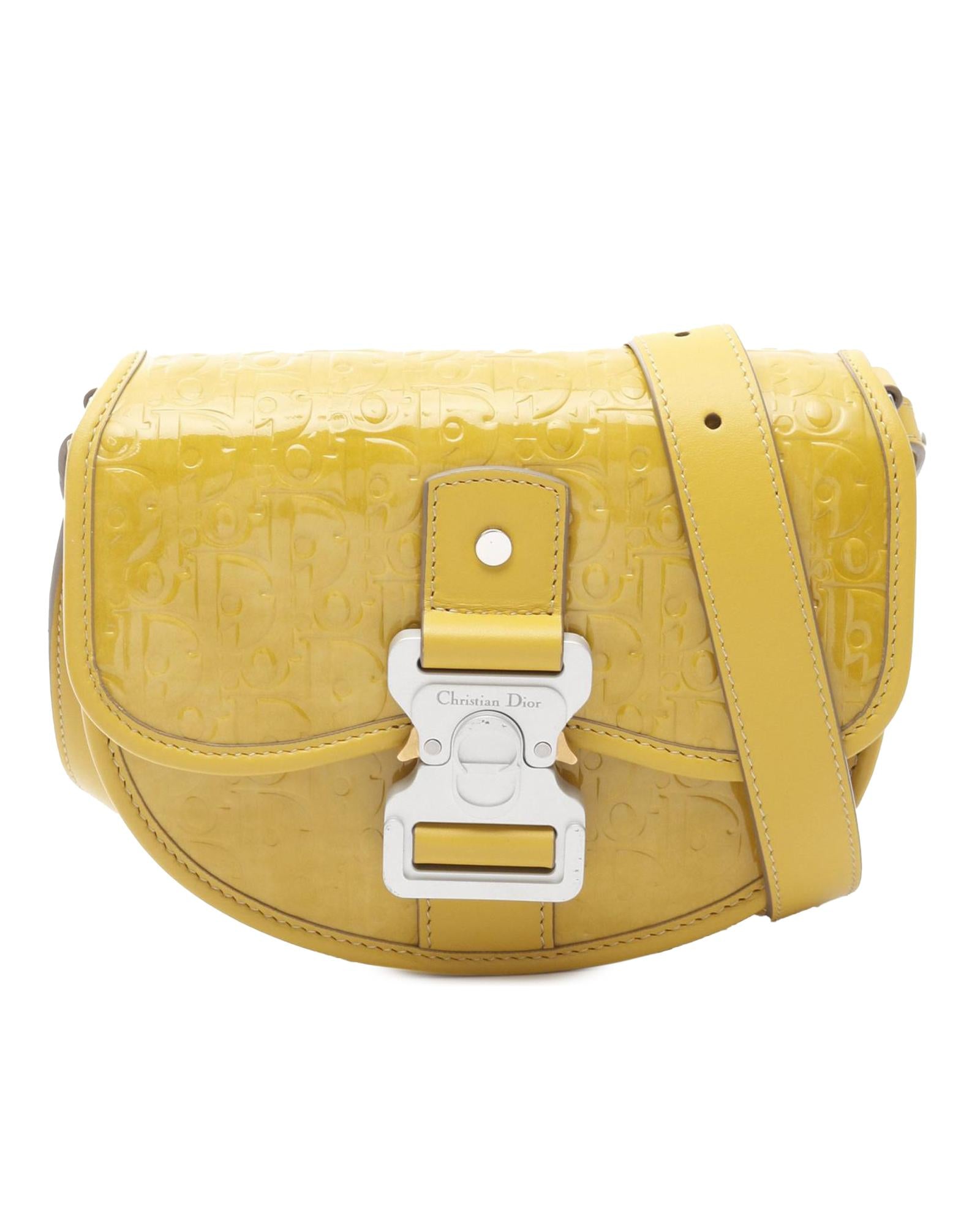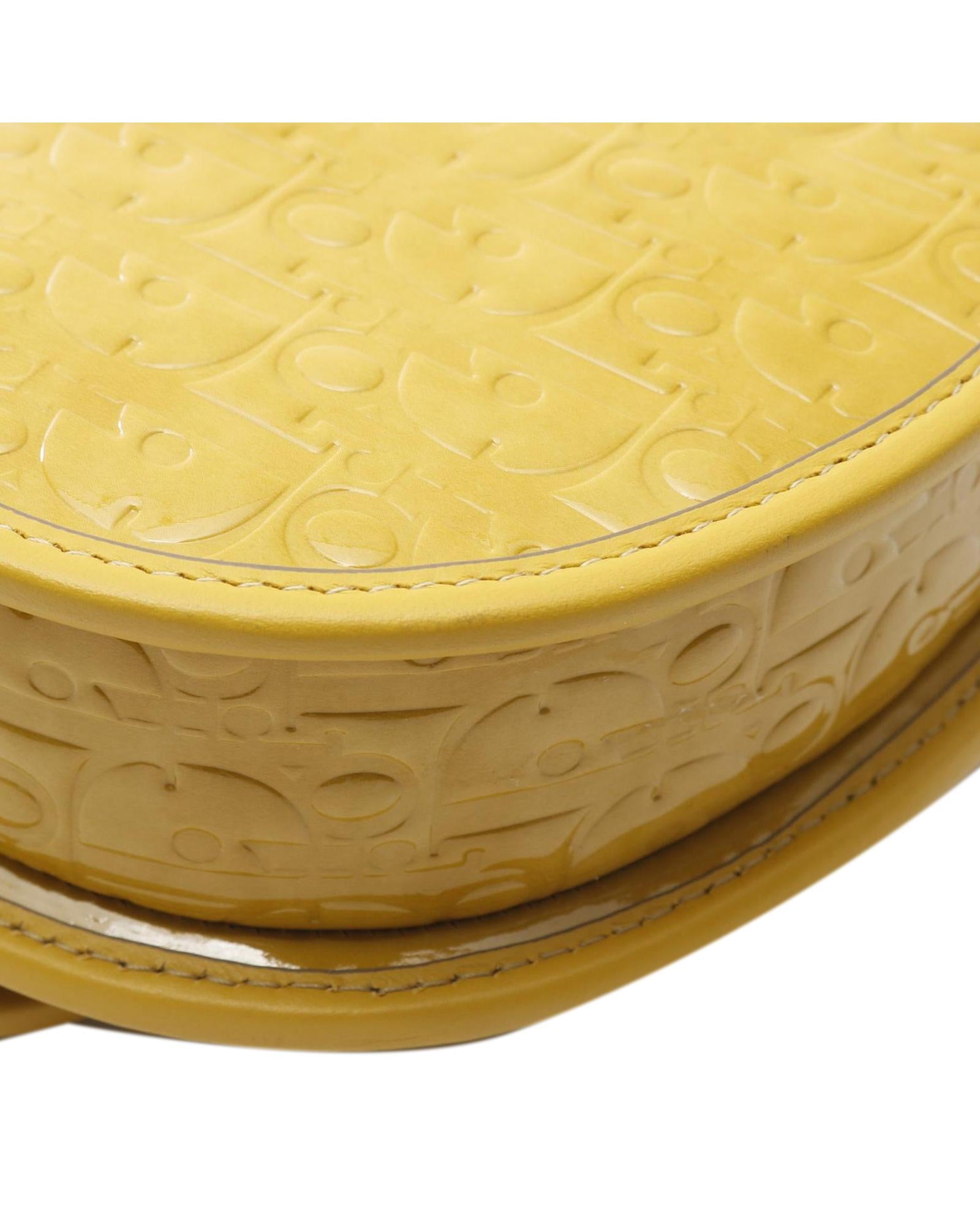 The Mini Gallop crossbody bag features an embossed patent leather body an adjustable and detachable flat leather strap and a front flap with buckle closure.