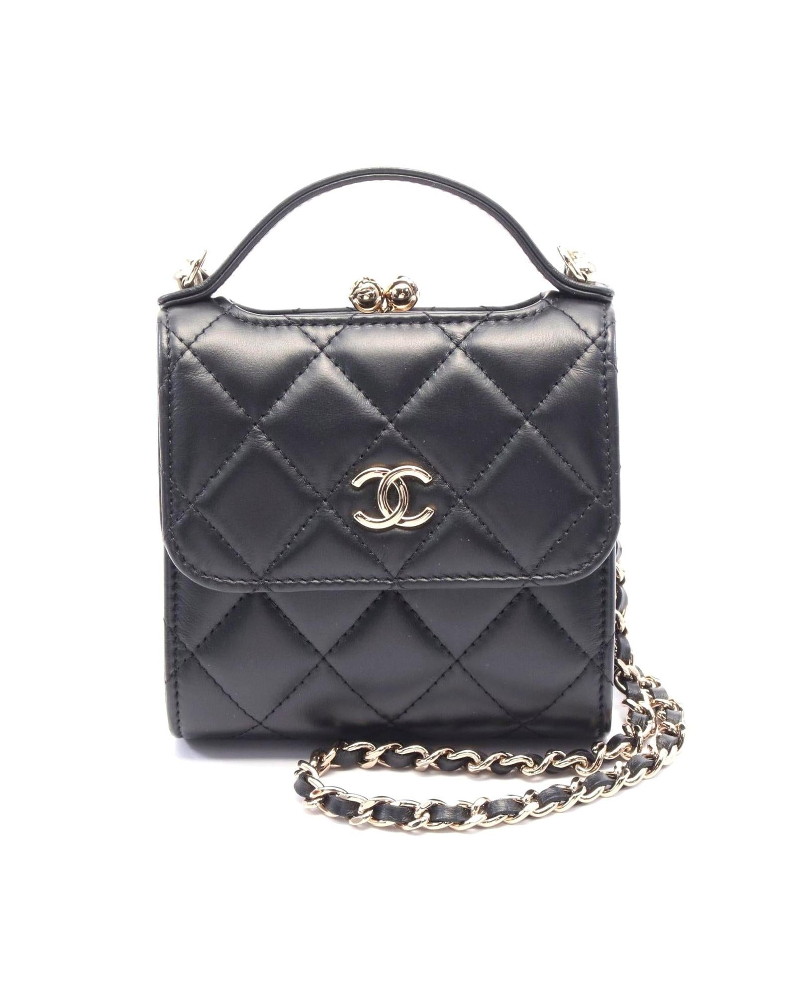 Pre-owned Structured Top Handle Quilted Flap Bag with Chain Detail