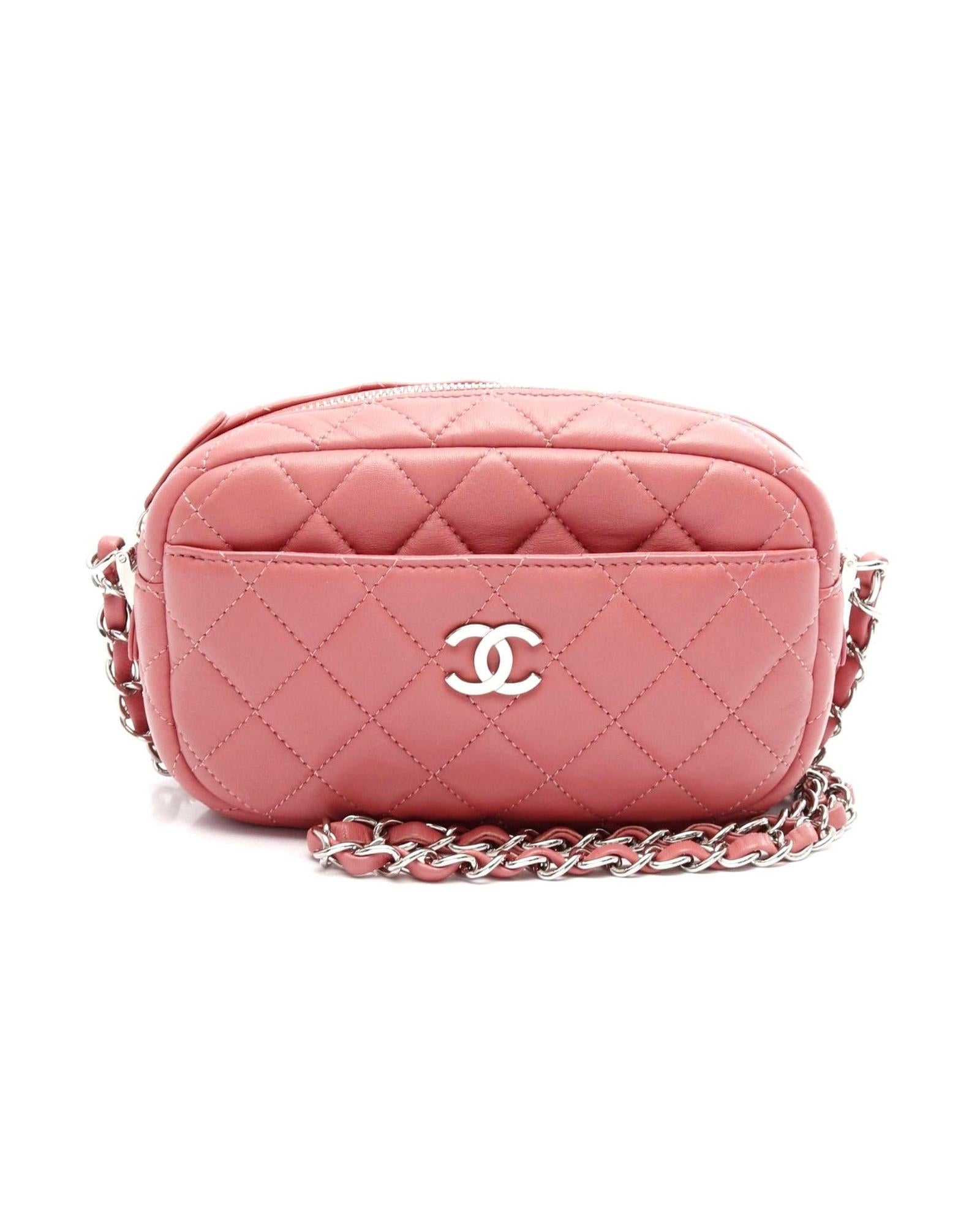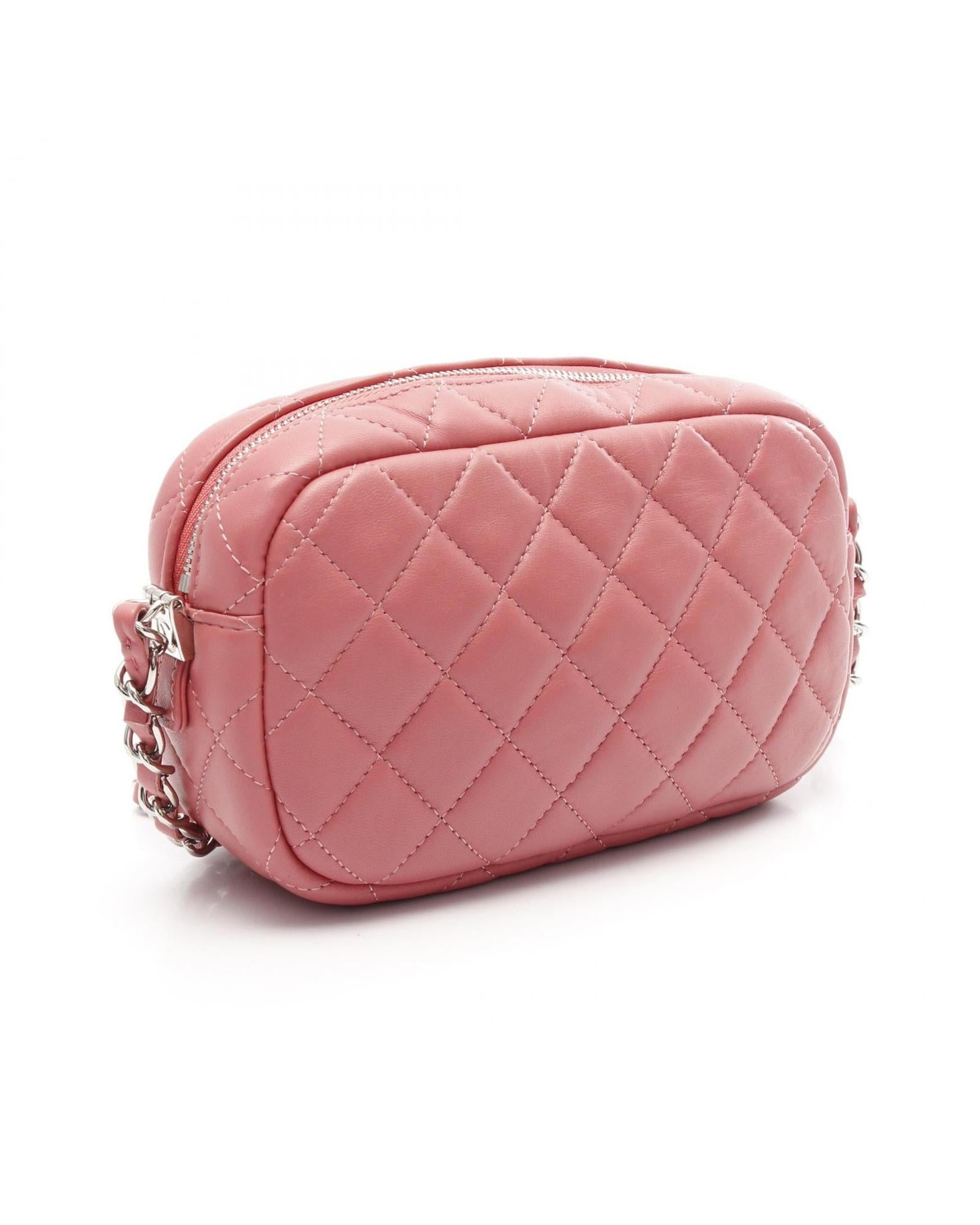 Pre-owned Quilted Leather Shoulder Bag with Chain Strap and Front Pocket