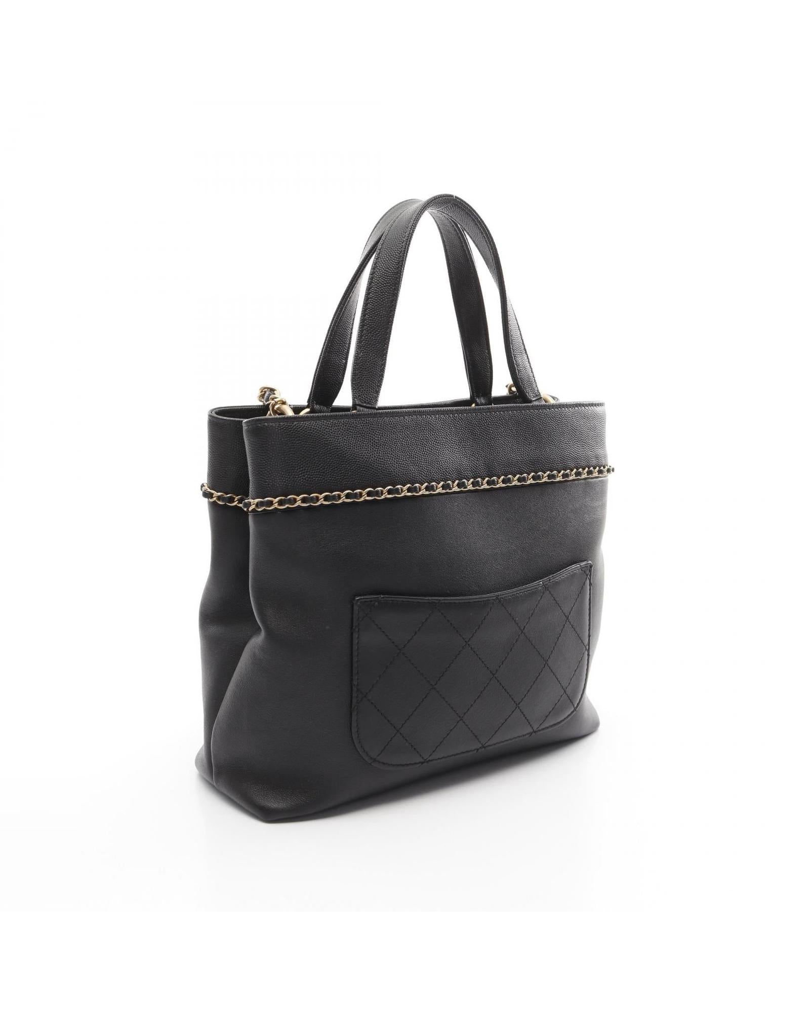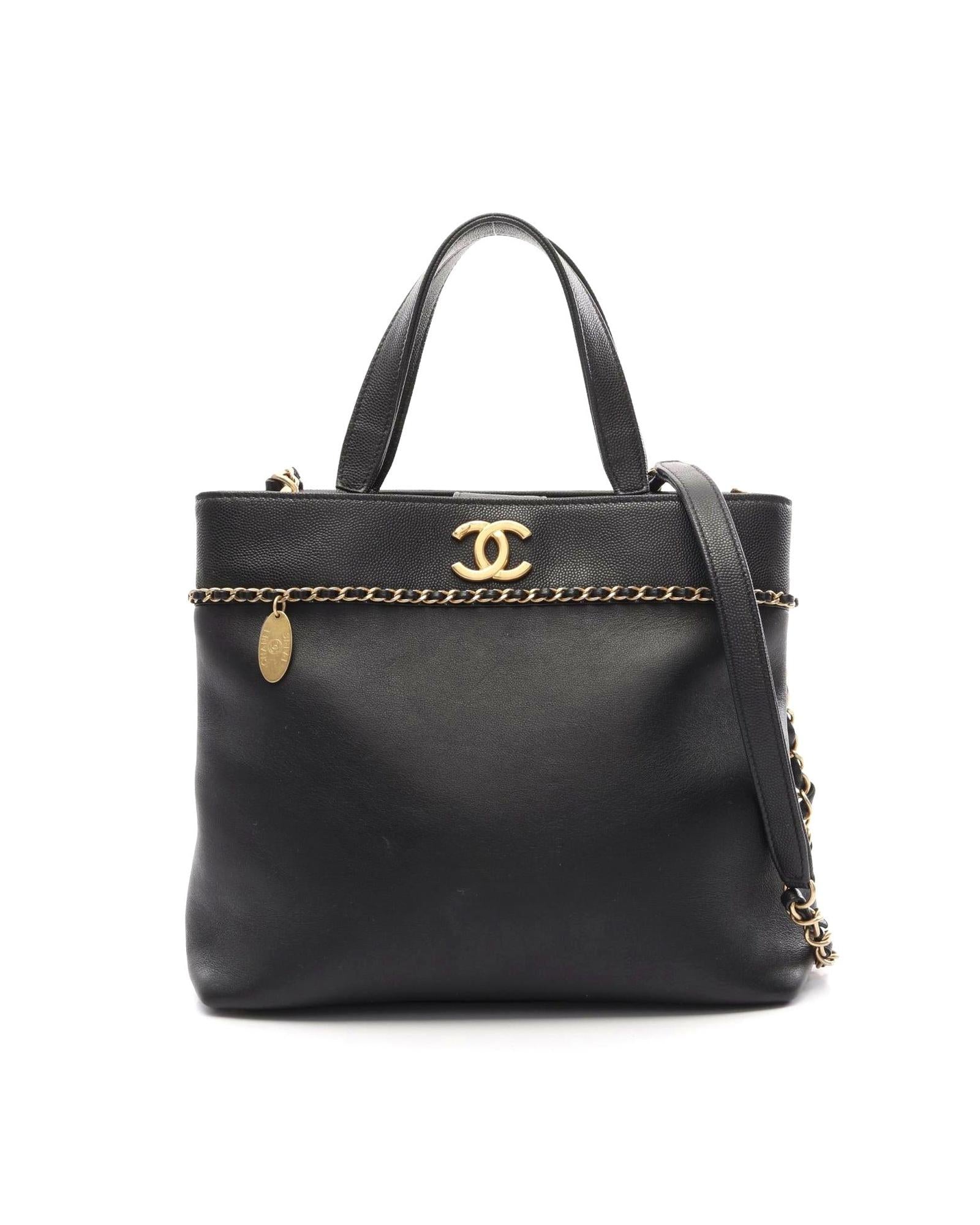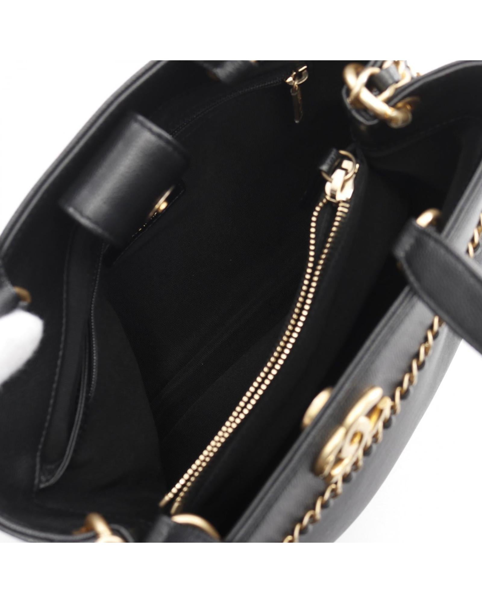 Pre-owned Tote Bag with Chain Accent Dual Top Handles and Shoulder Strap