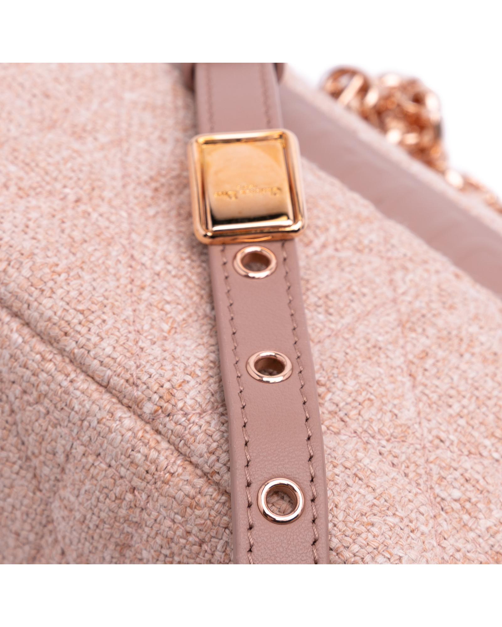 The Caro features a quilted tweed body a flat leather and chain link shoulder strap a flap with turn lock closure an exterior back slip pocket and interior zip and slip pockets.Brand: Dior Vintage