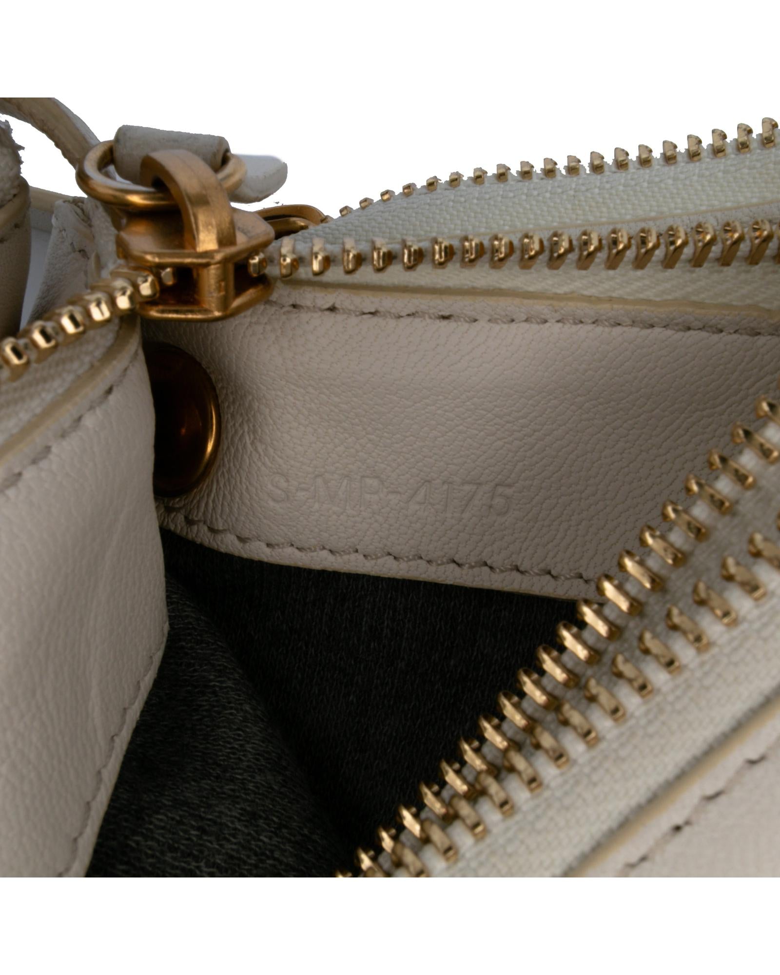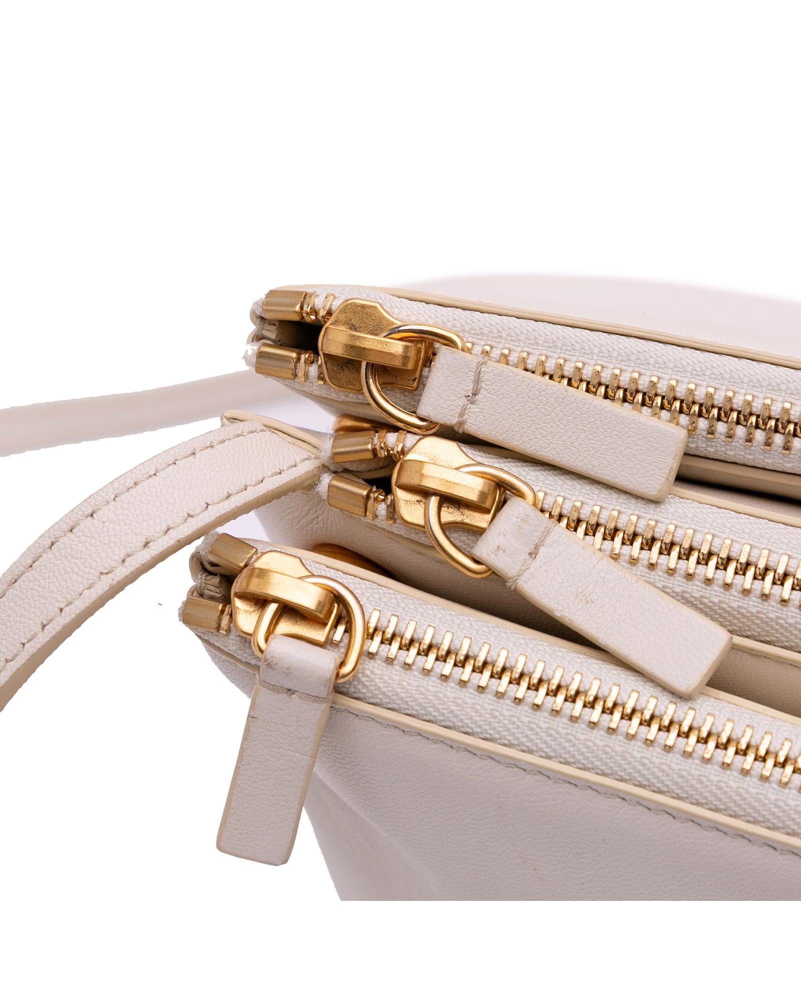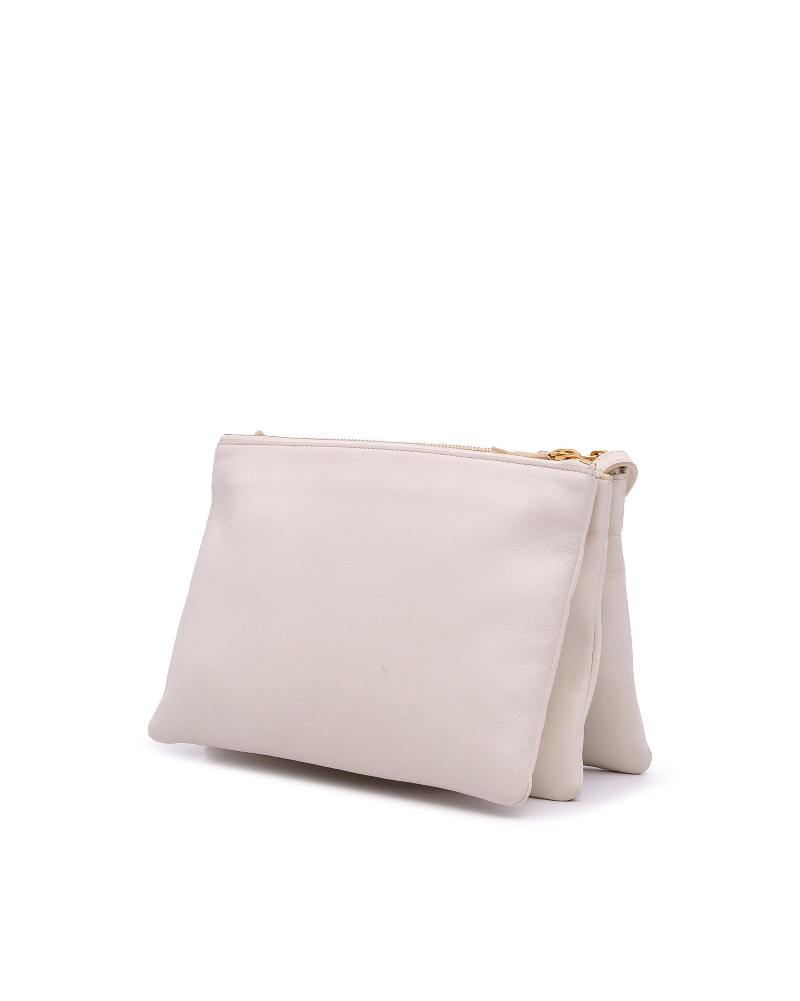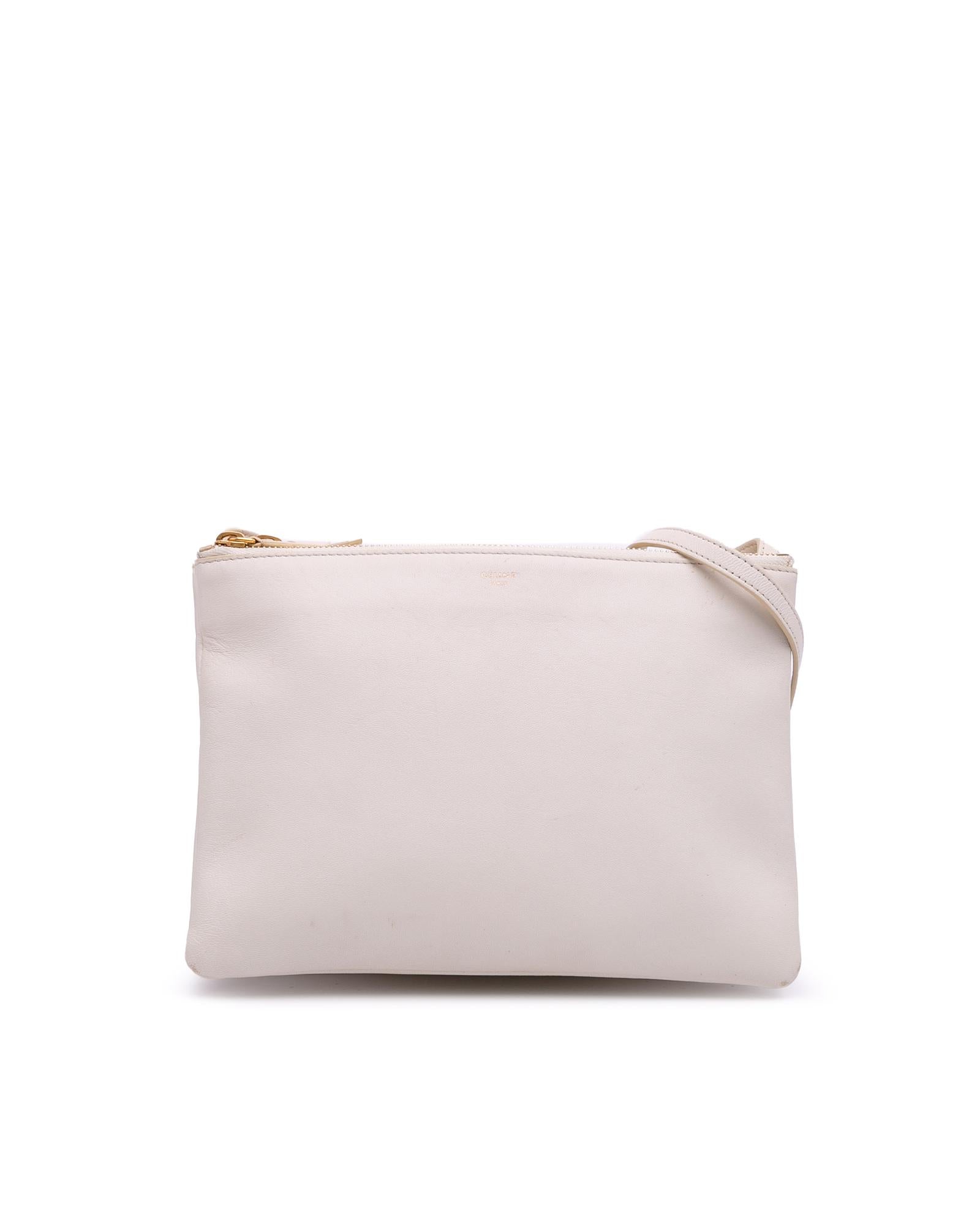 The Trio crossbody bag features a lambskin leather body a flat leather strap and three top zip closures.Brand: Celine Vintage