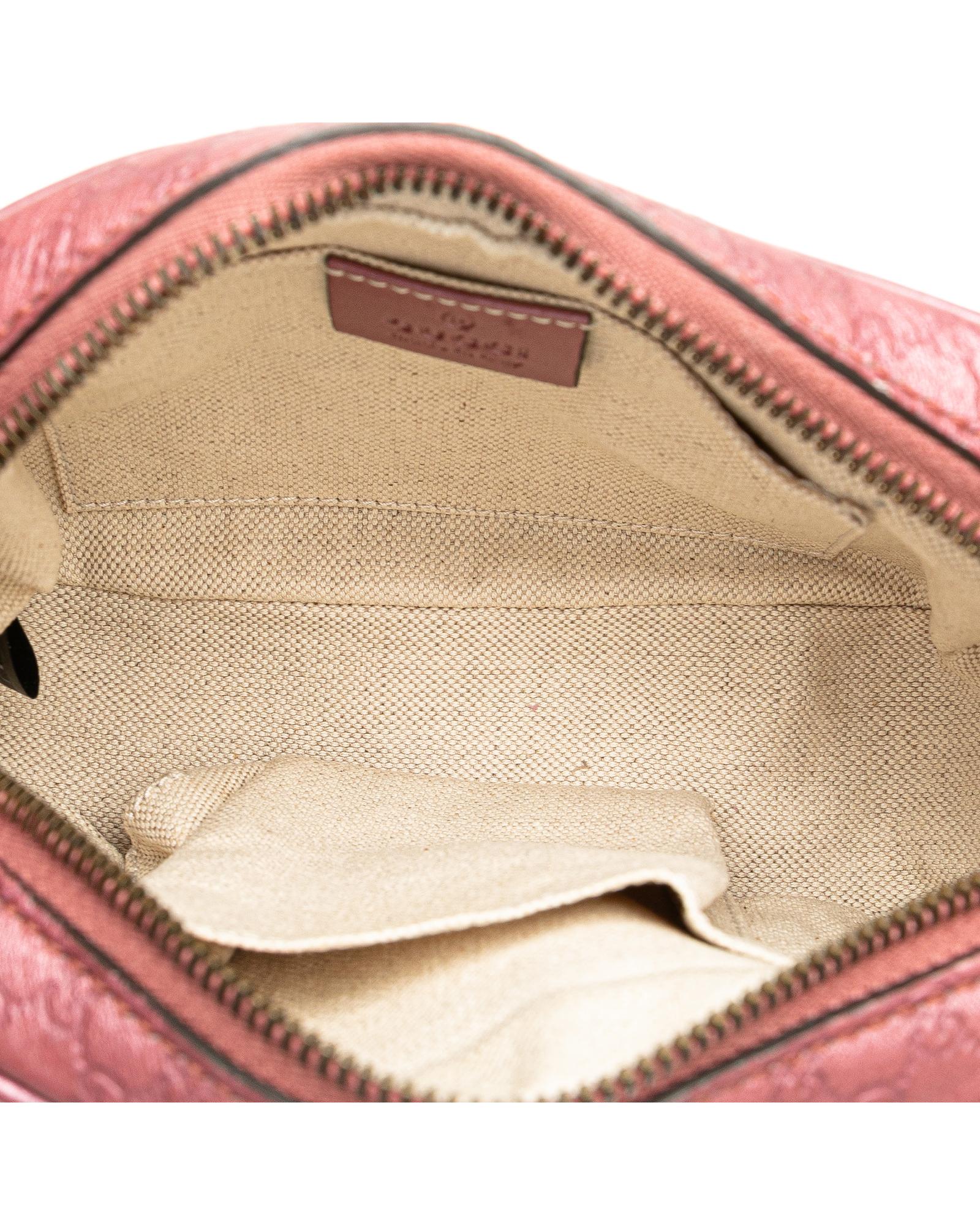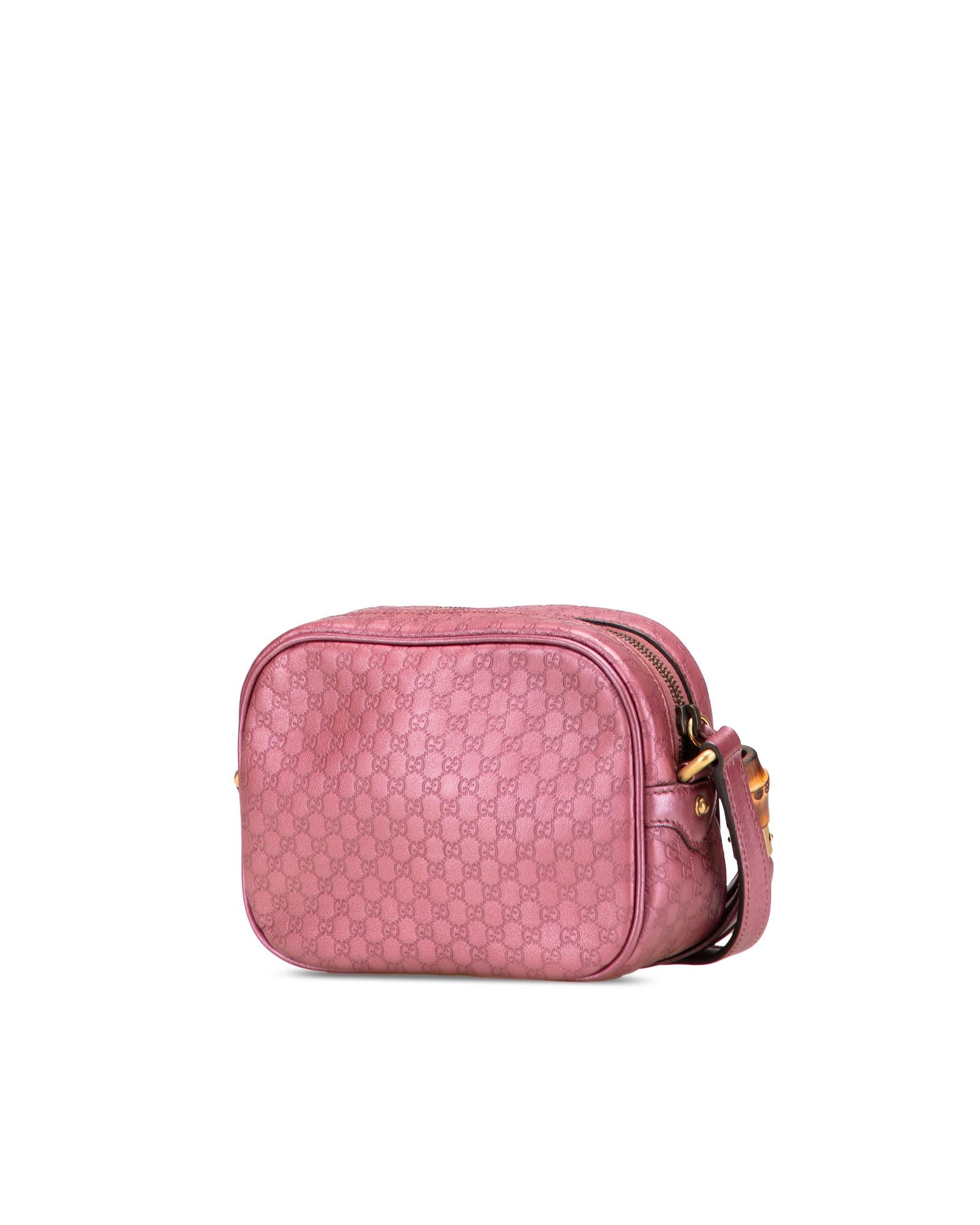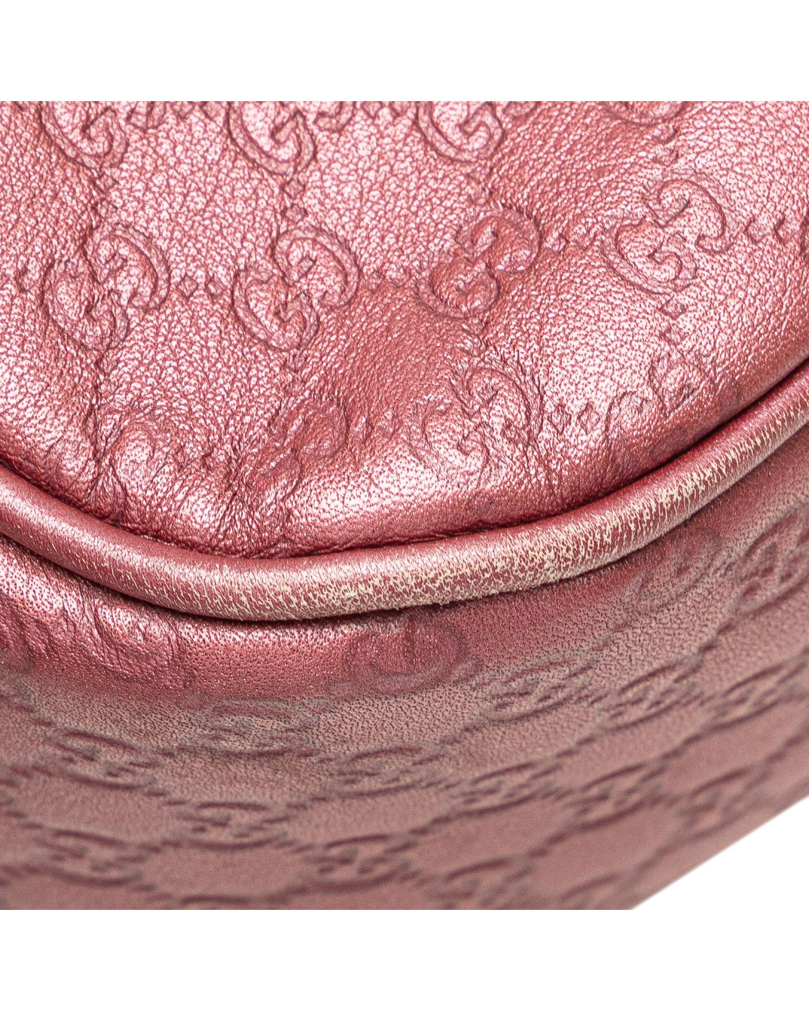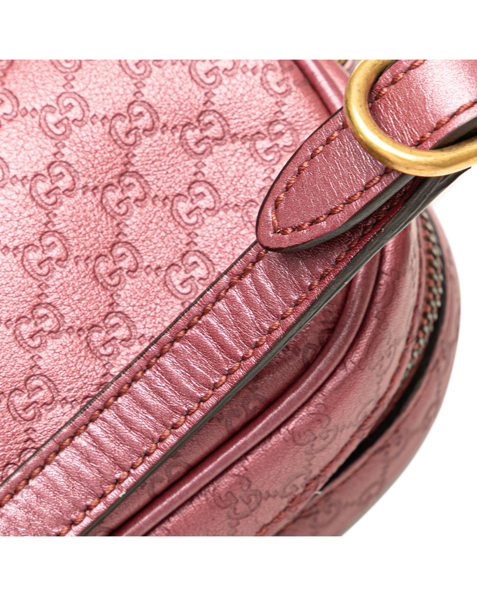 This crossbody features an embossed metallic leather body an adjustable flat strap a top zip closure tassel detail and interior slip pockets.