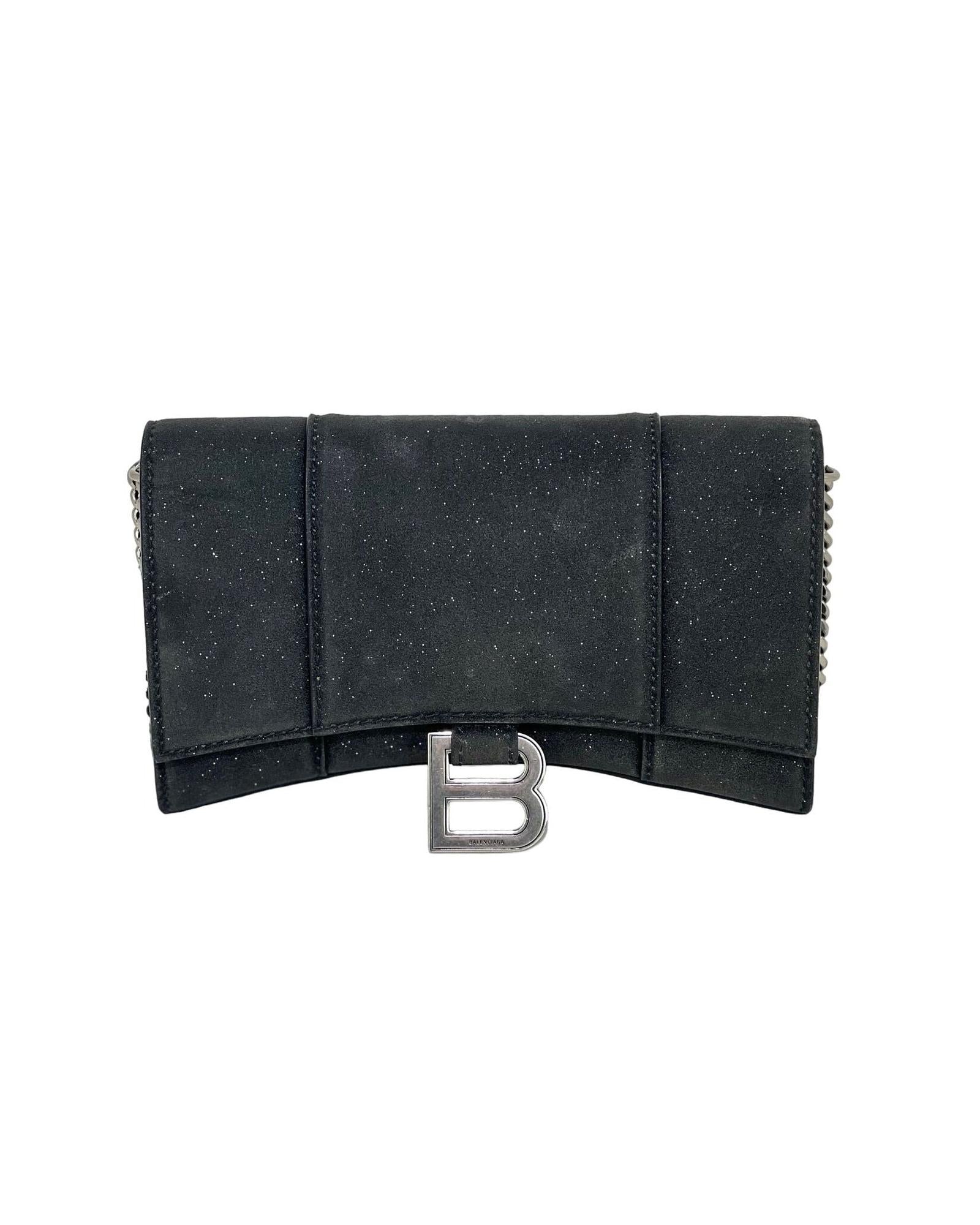• Owned 100% Authentic BALENCIAGA Hourglass Wallet On Chain Black Glitter