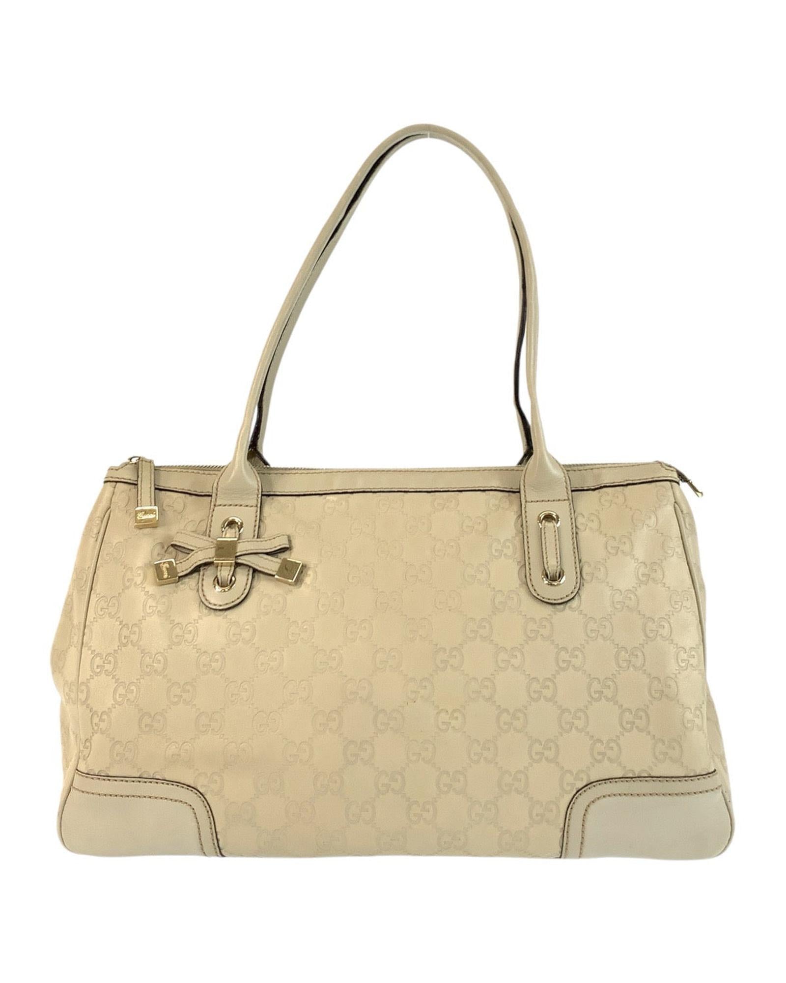 Pre-owned Designer Tote Handbag with Top Zip Closure and Bow Detail