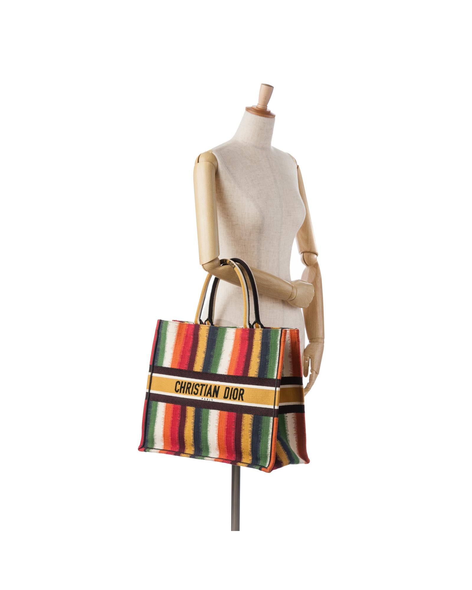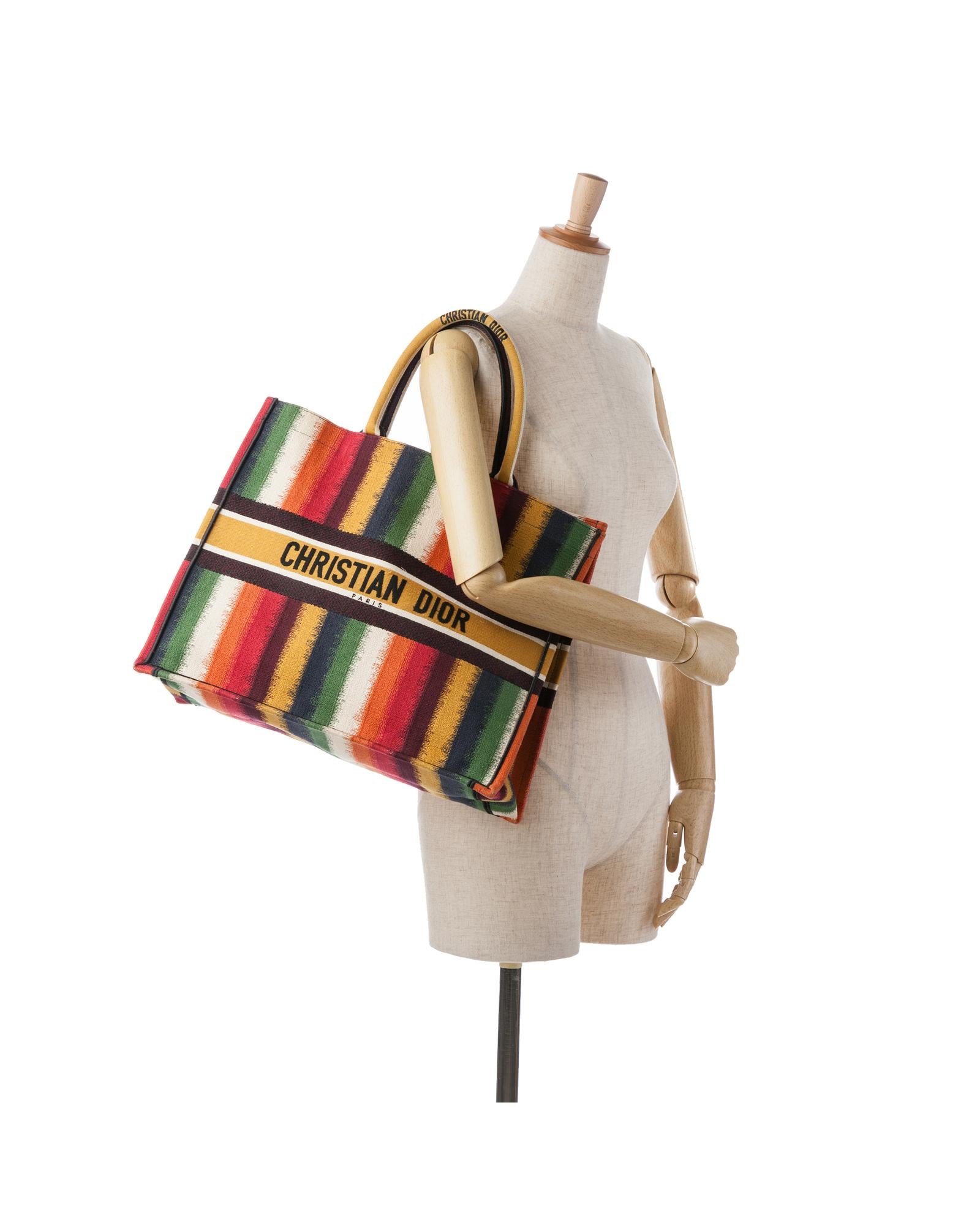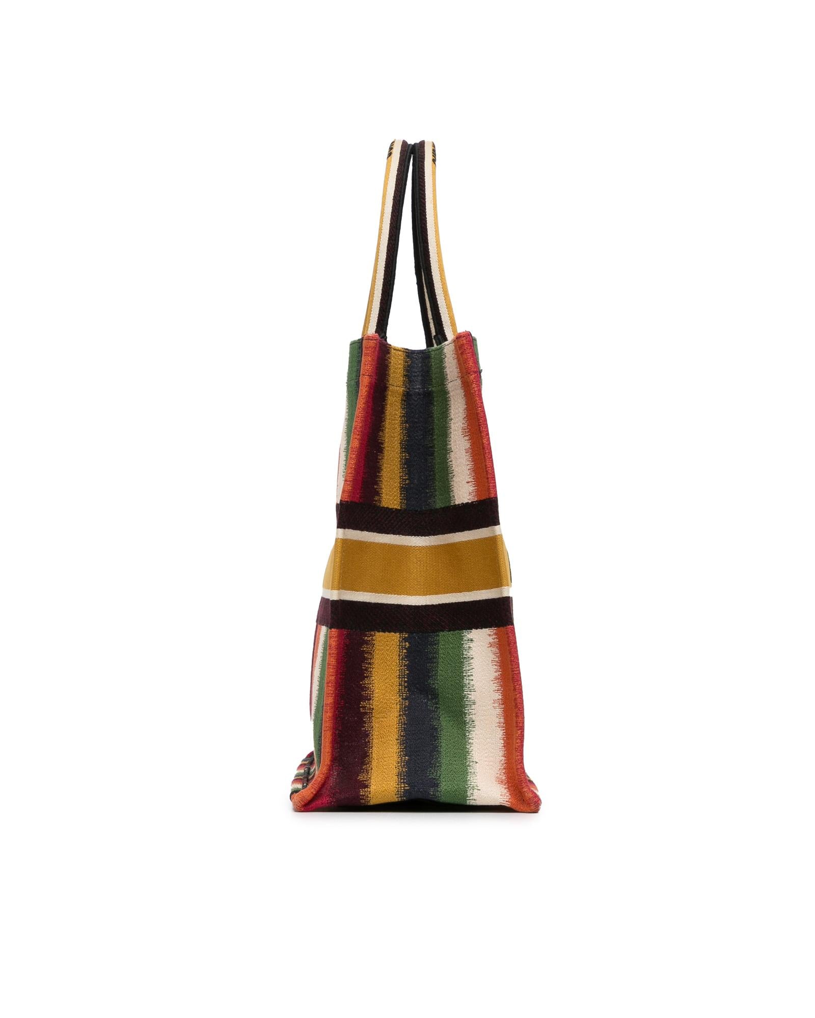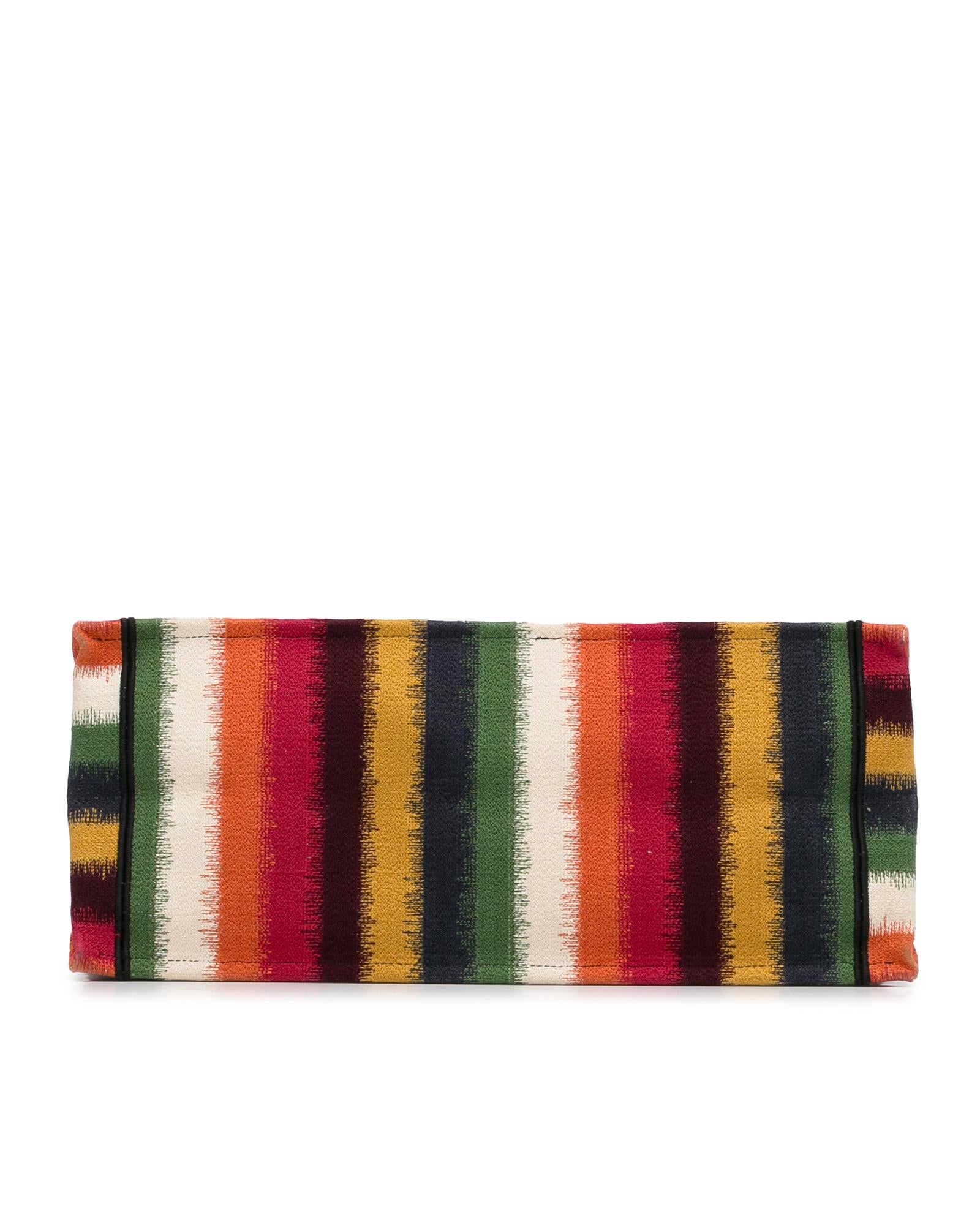 Pre-owned Striped Canvas Tote Bag with Dual Top Handles and Interior Compartment