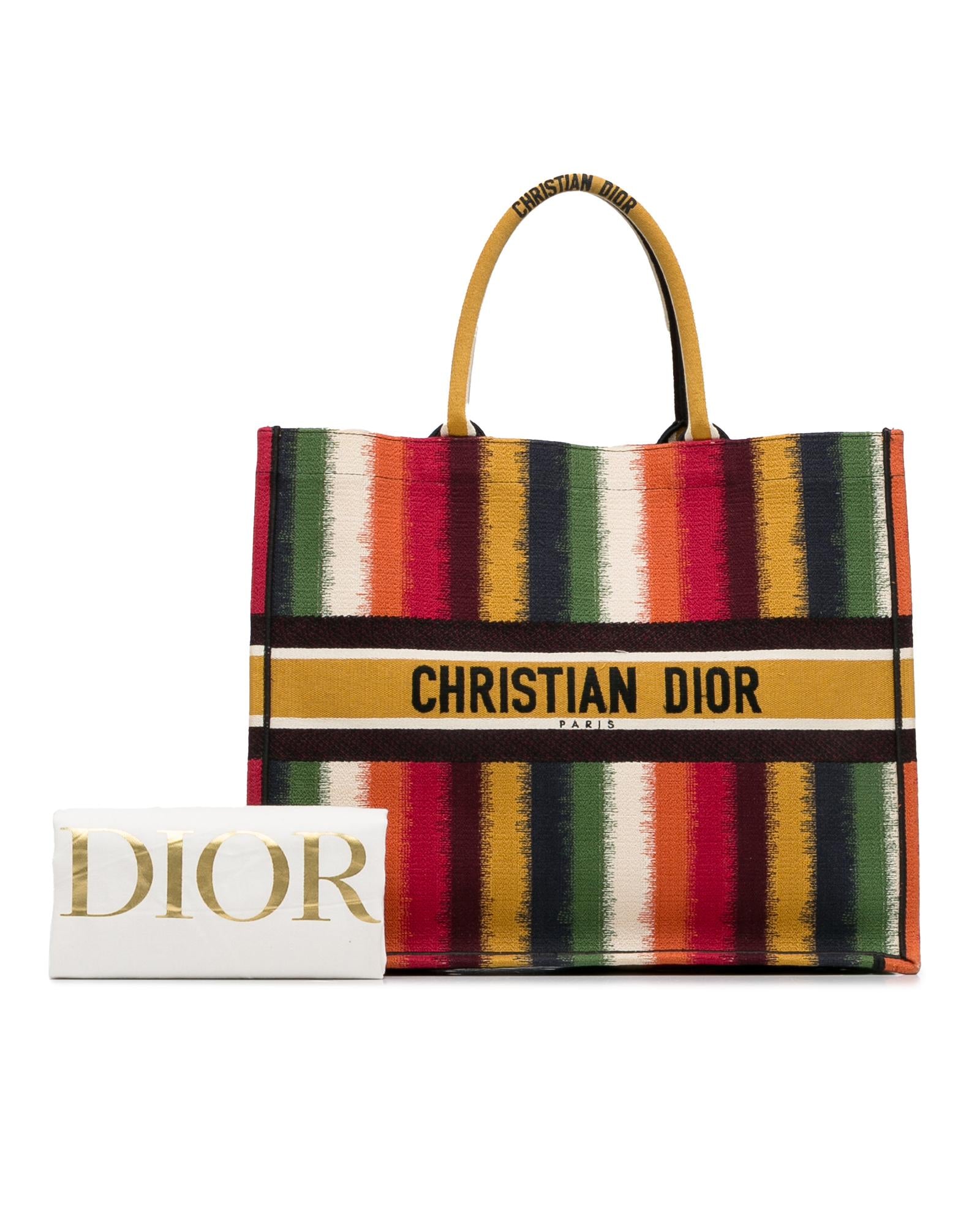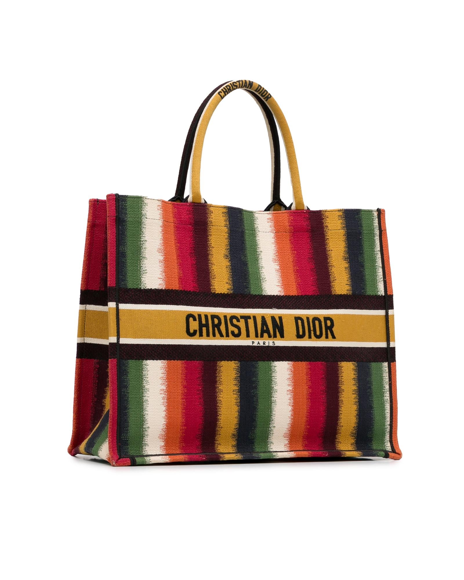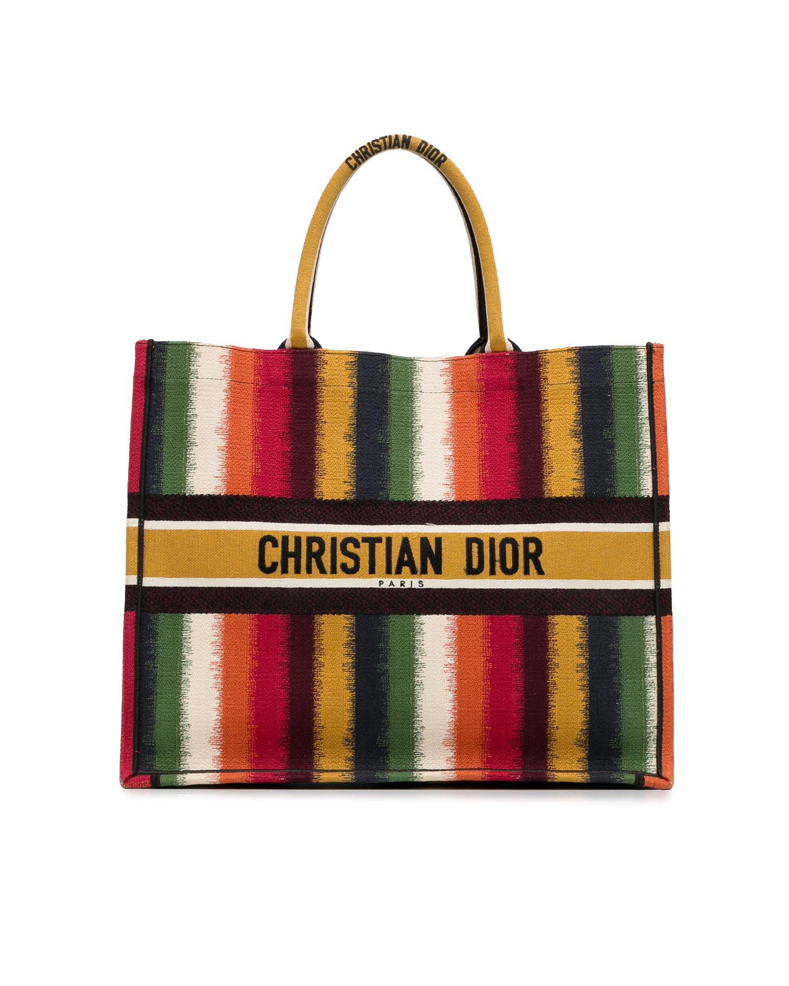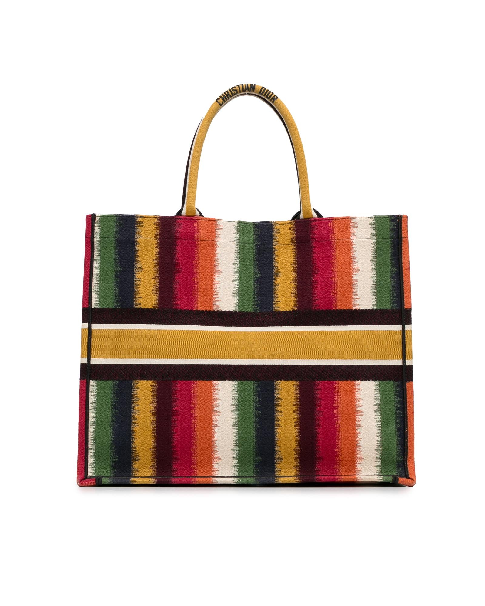 Pre-owned Striped Canvas Tote Bag with Dual Top Handles and Interior Compartment