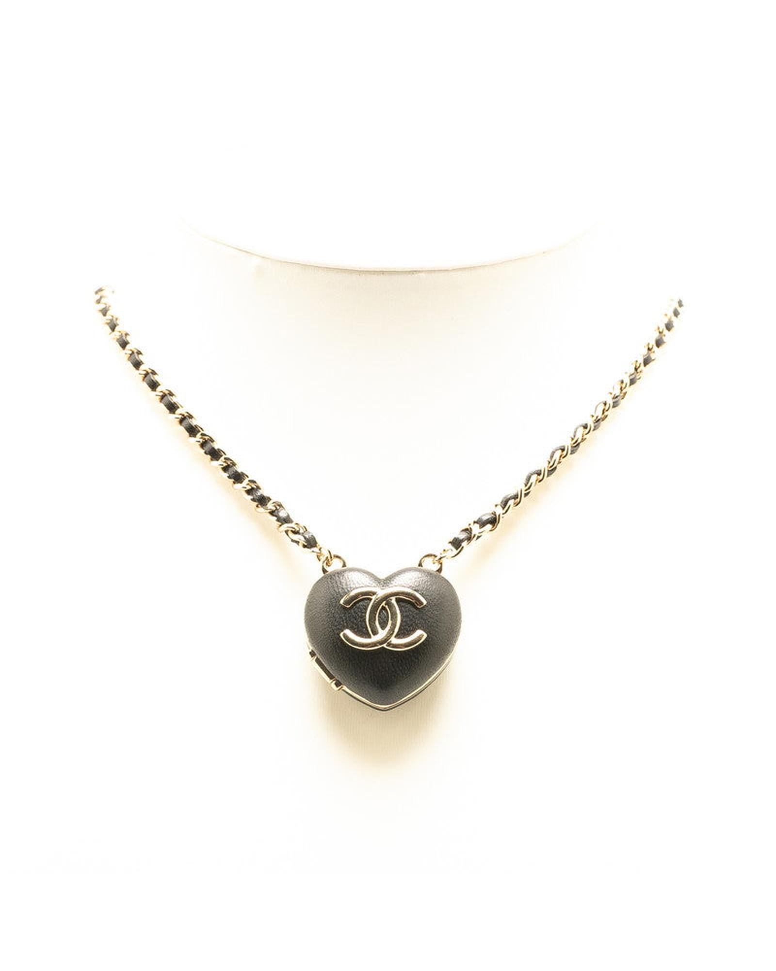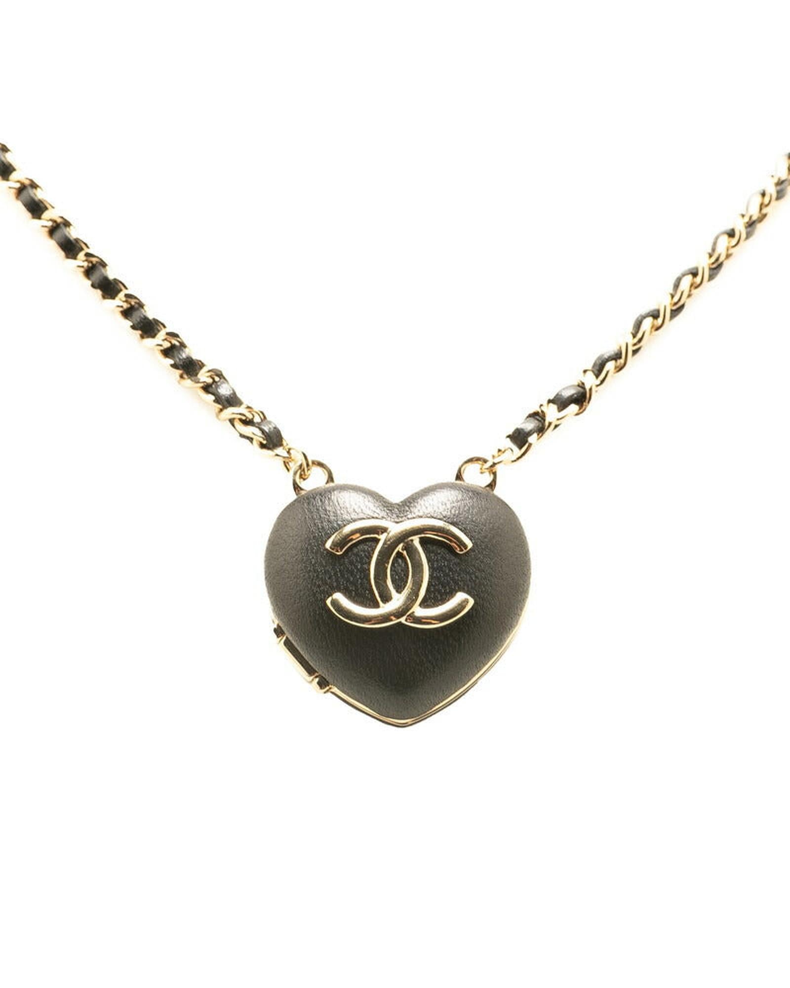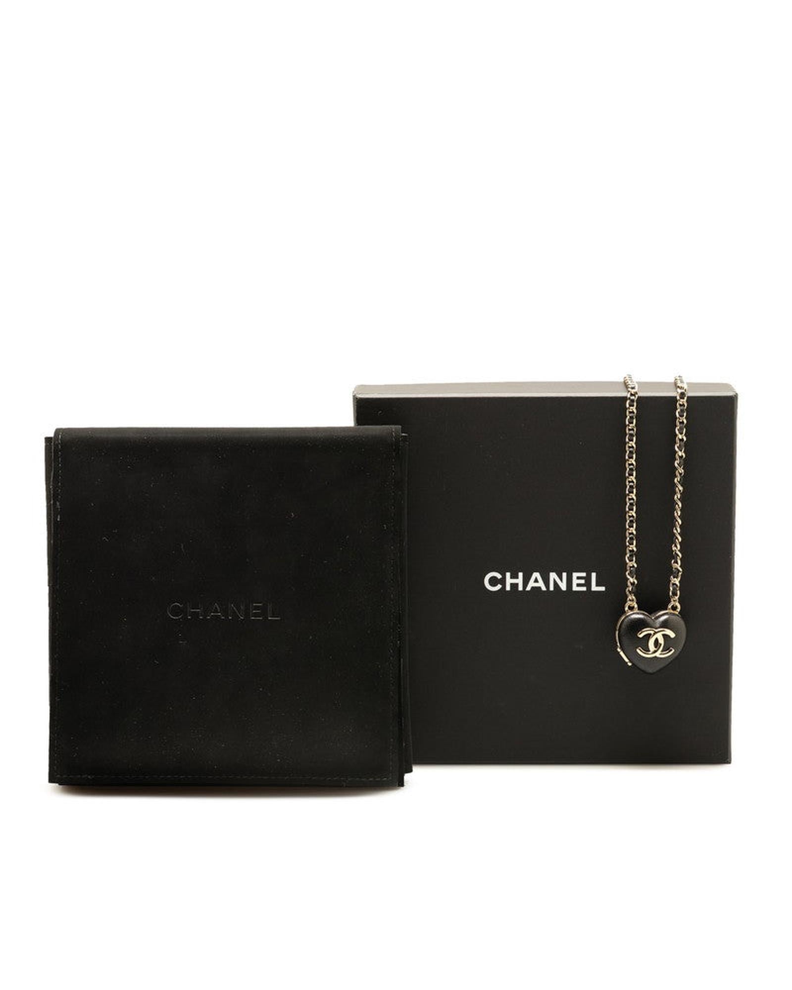 • Item name: CHANEL Lambskin Coco Mark Heart Mirror Pendant Necklace Black Gold B22K