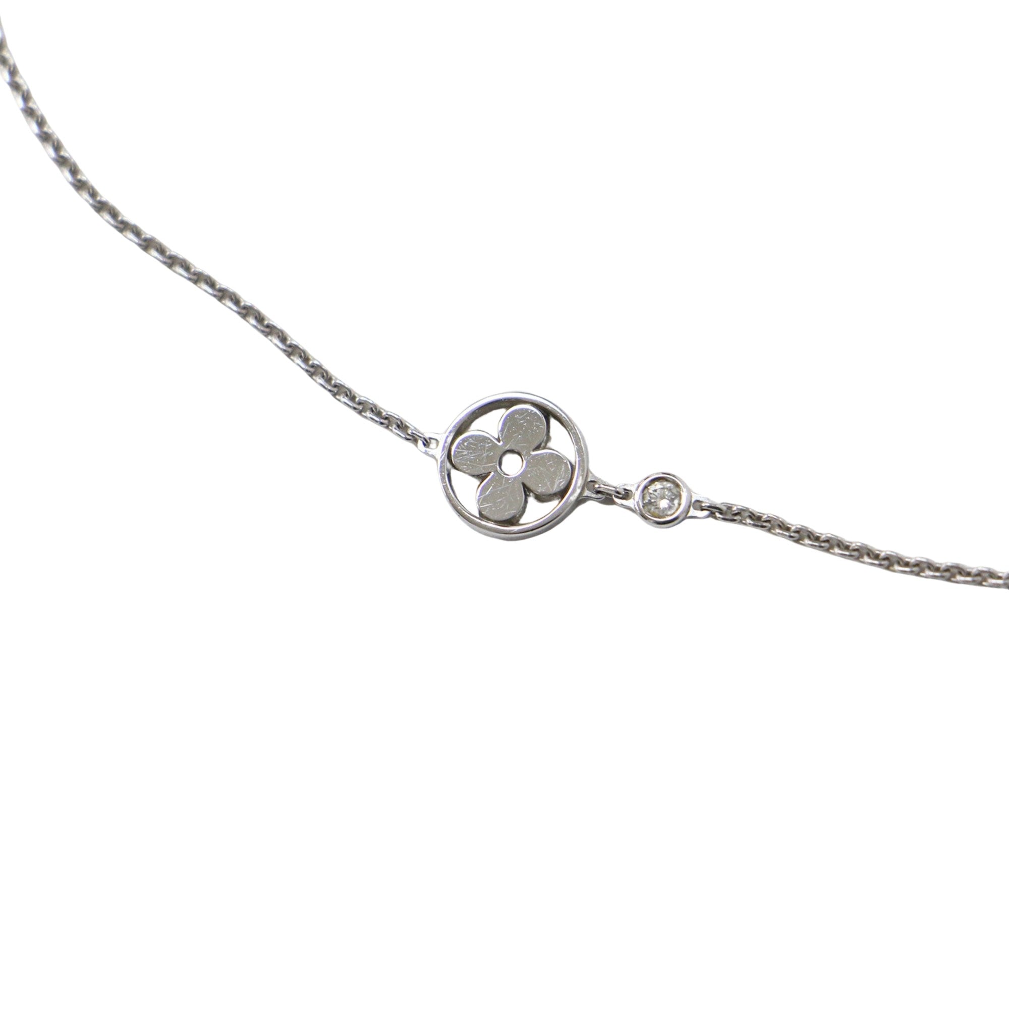 Introducing the Louis Vuitton Blossom Women's Necklace an exquisite piece that epitomizes luxury and sophistication. Crafted from shimmering 18K white gold this necklace radiates elegance and glamour making it the perfect accessory for any occasion. Adorned with sparkling diamonds it adds a touch of brilliance to your ensemble elevating your style to new heights.