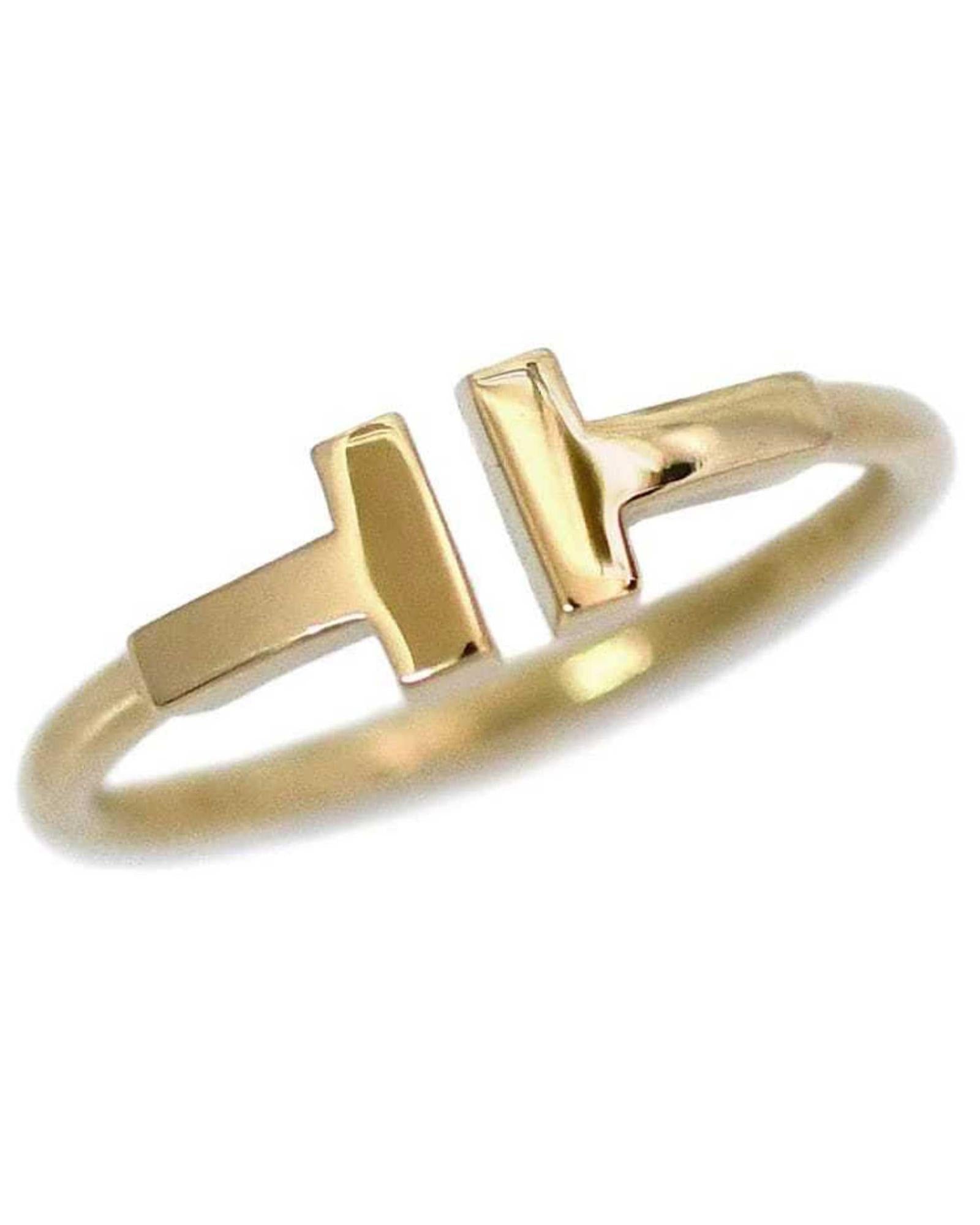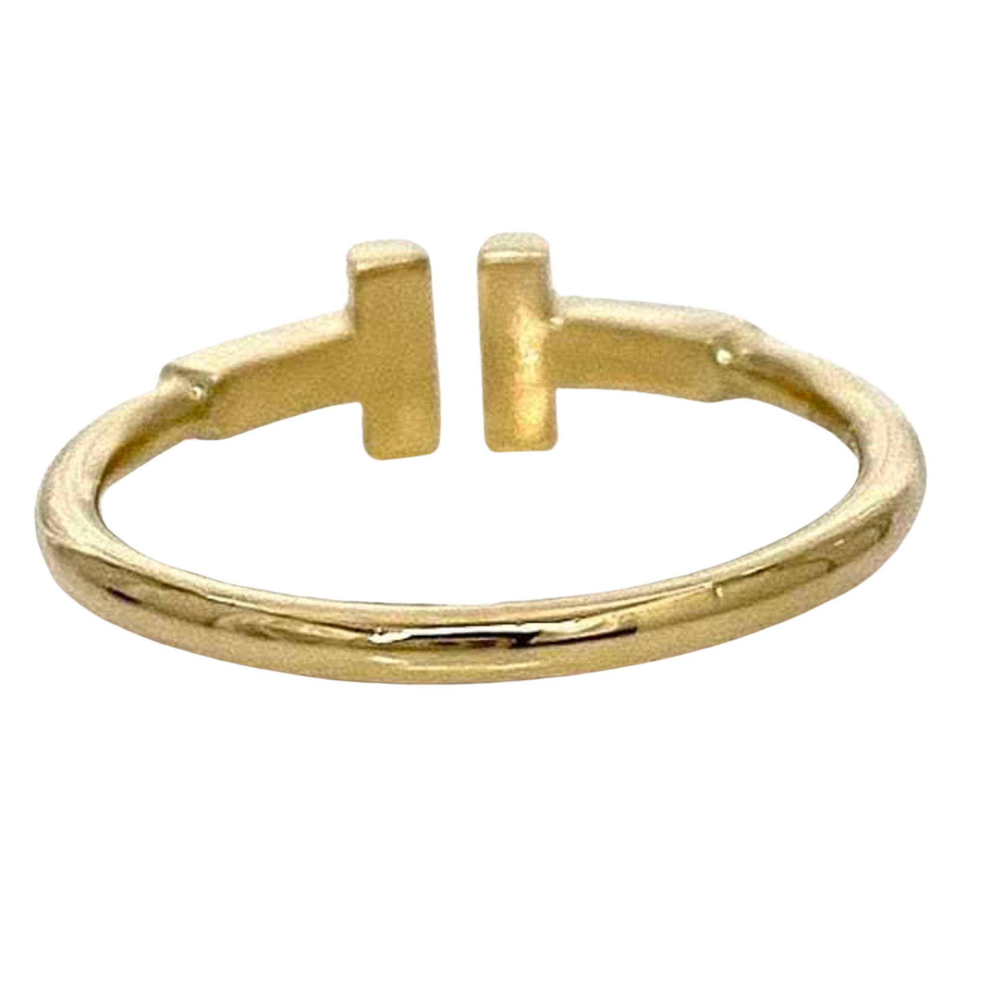 The Tiffany "T" band ring is crafted from 18K yellow gold and designed specifically for women. Its condition is noted as having insignificant overall traces of use and being maintained with regular polishing to preserve its pristine appearance.