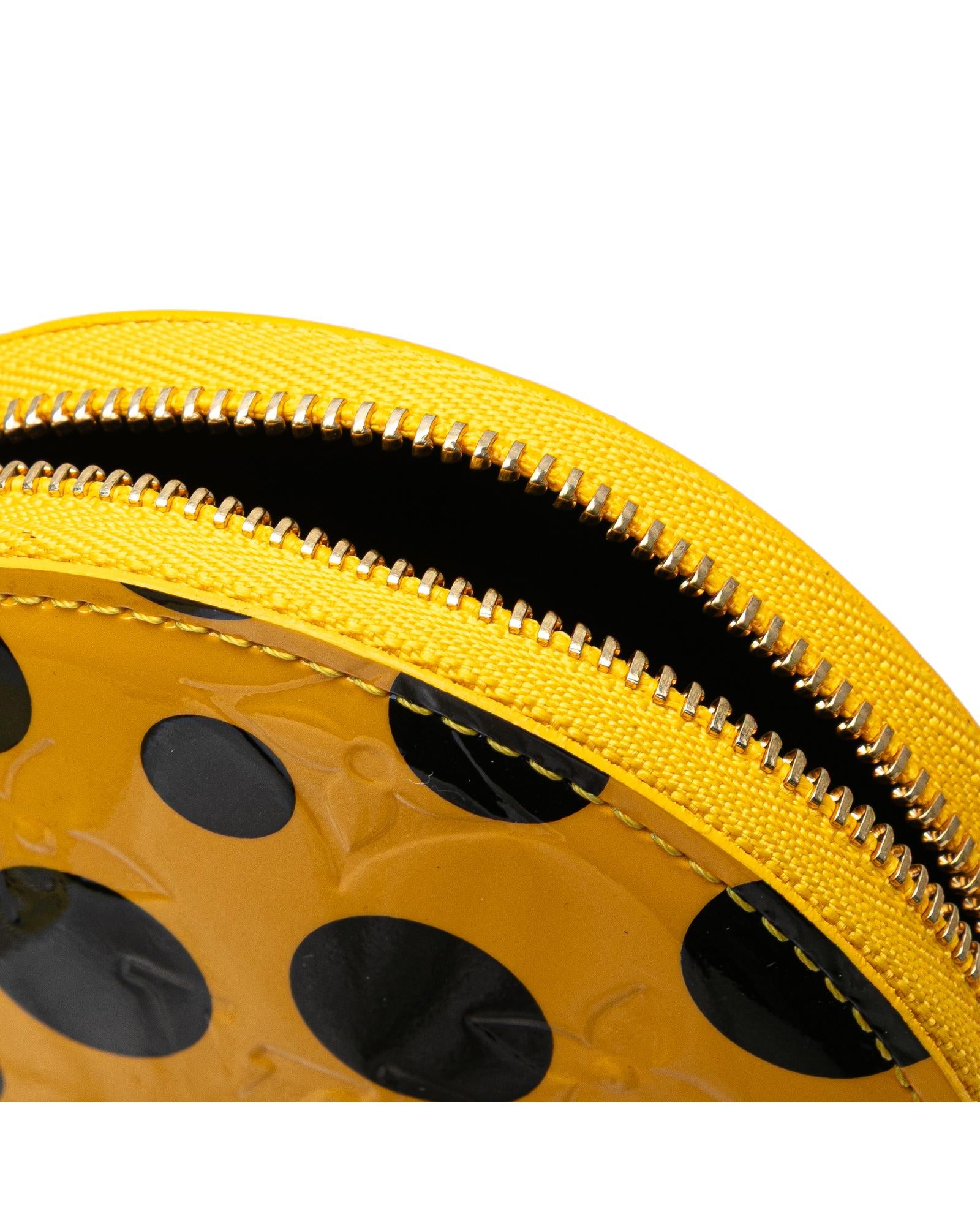 This coin pouch features a monogram vernis leather body and a top zip closure.