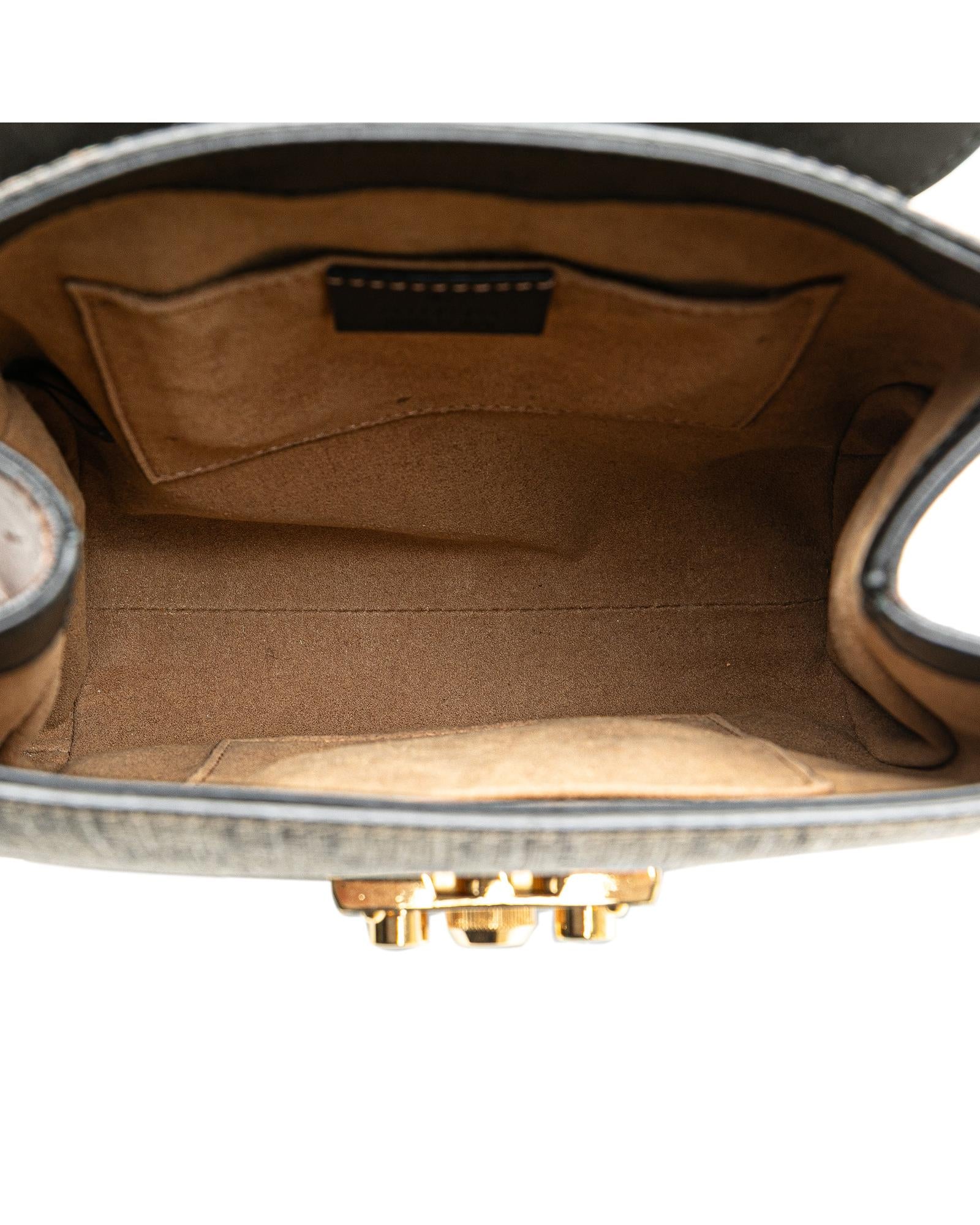 Exterior Back stained with Other. Exterior Bottom stained with Other. Lock Scratched. Exterior Corners Worn. Embellishment Scratched. Exterior Front stained with Other. Exterior Handle Creased Worn. Exterior Handle stained with Other. Interior Pocket stained with Other. Key Scratched. Interior Lining Creased. Interior Lining stained with Other. Practical Attachment Scratched. Exterior Side Worn. Exterior Top Scratched.