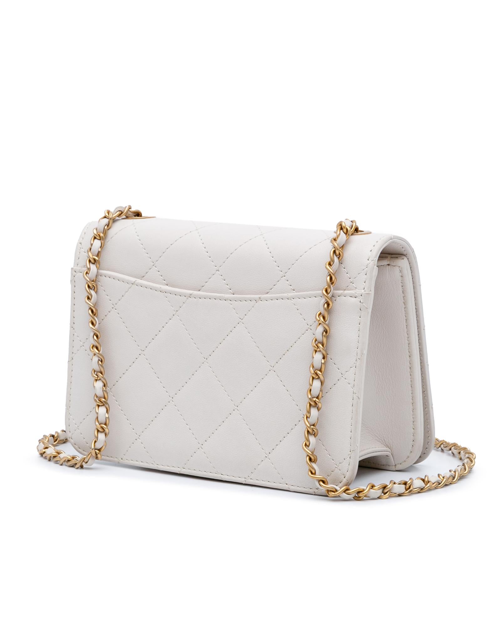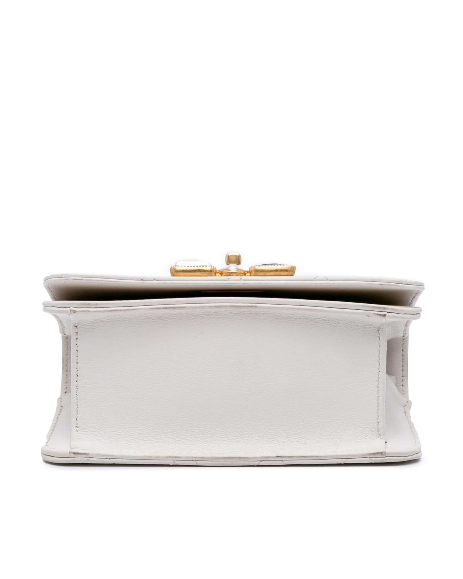 Quilted Calfskin Flap Bag with Crystal Pearl Embellishments