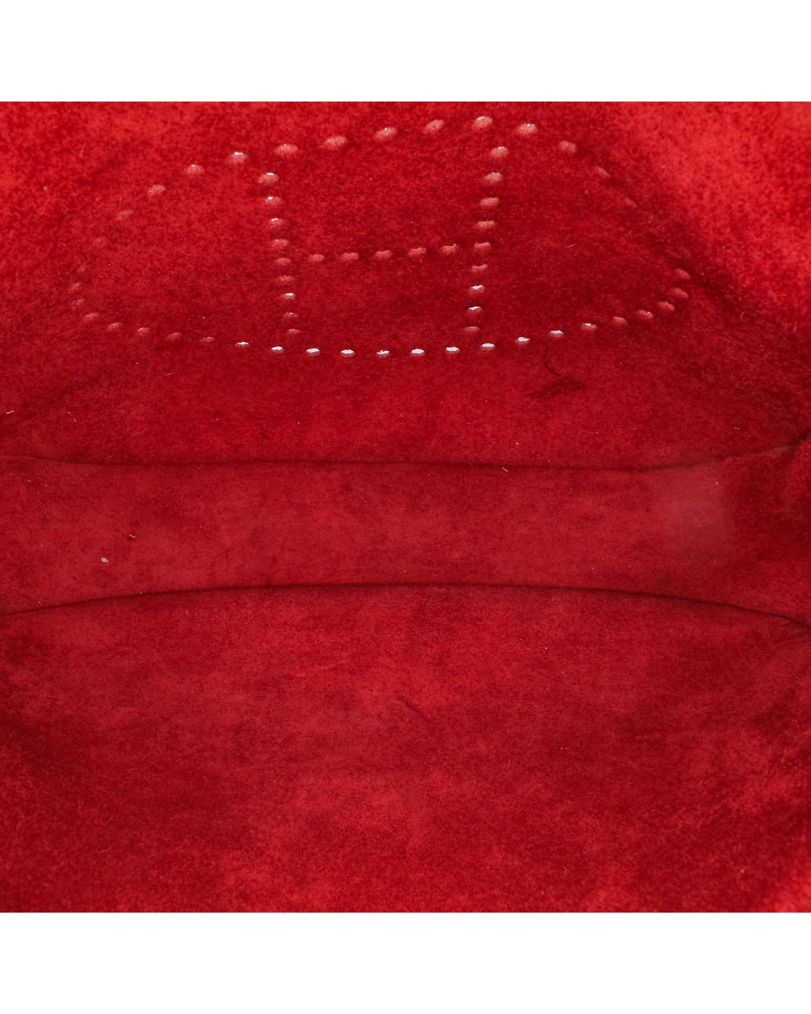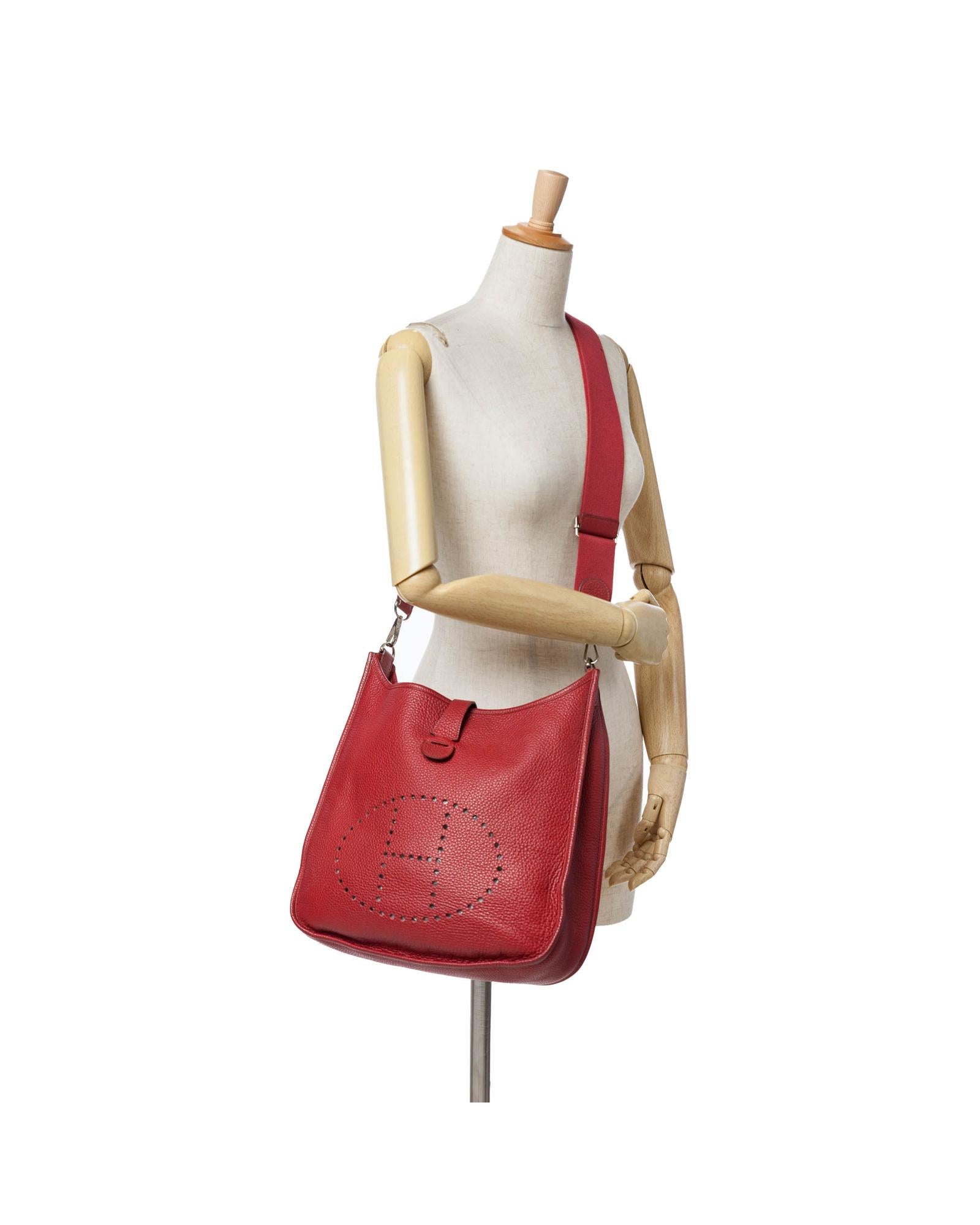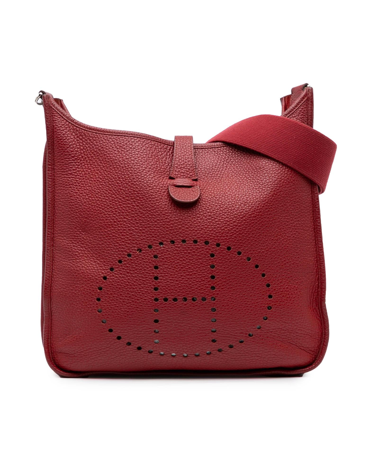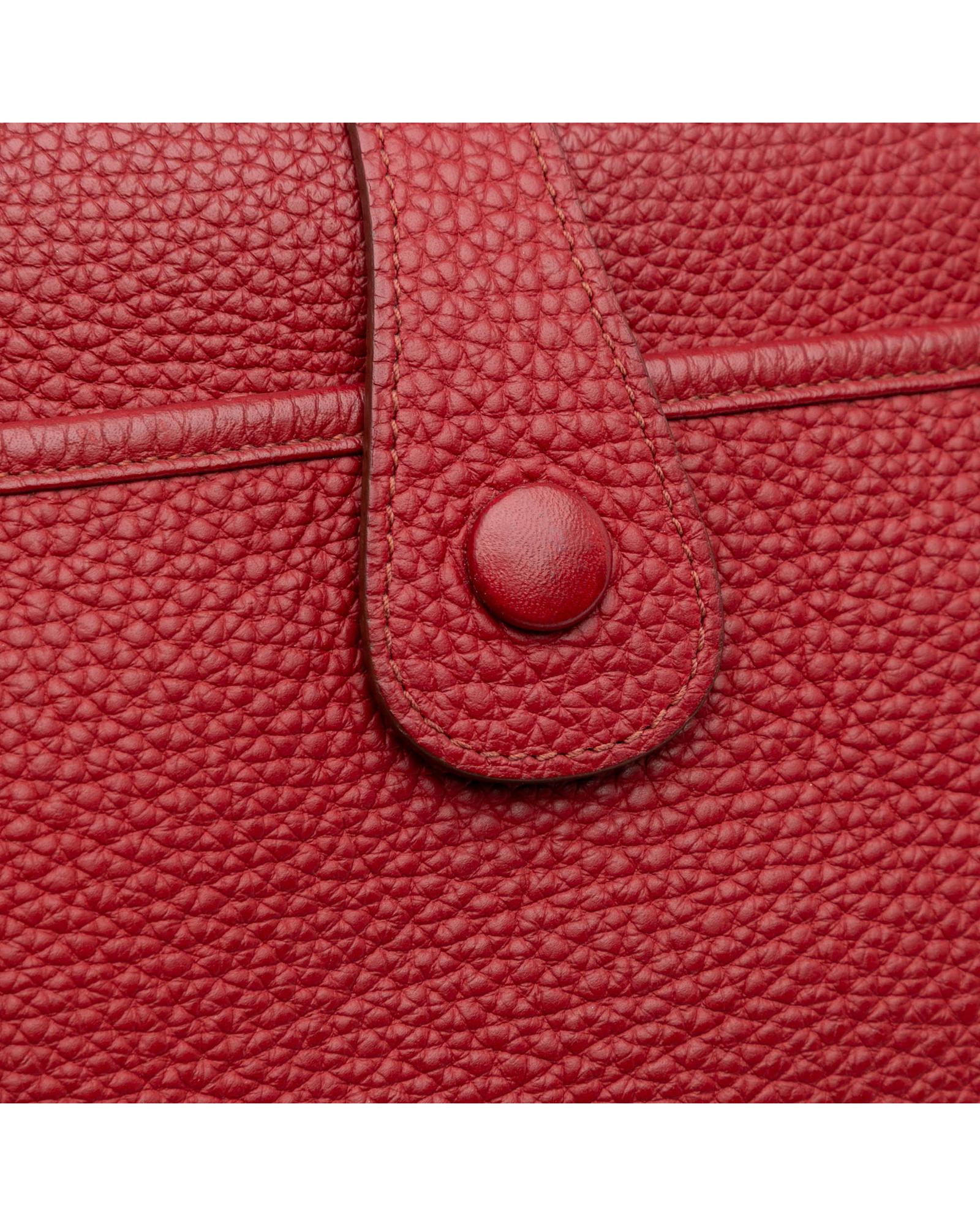 This Evelyne III PM features a Clemence leather body in Rouge Grenat color a removable and adjustable flat leather strap a top strap closure and an exterior slip pocket.Brand: Hermes
