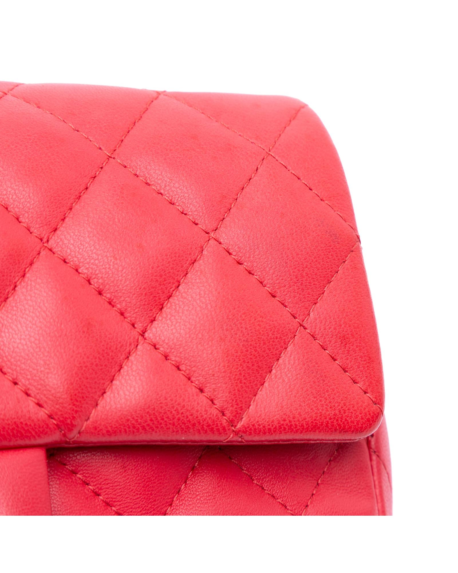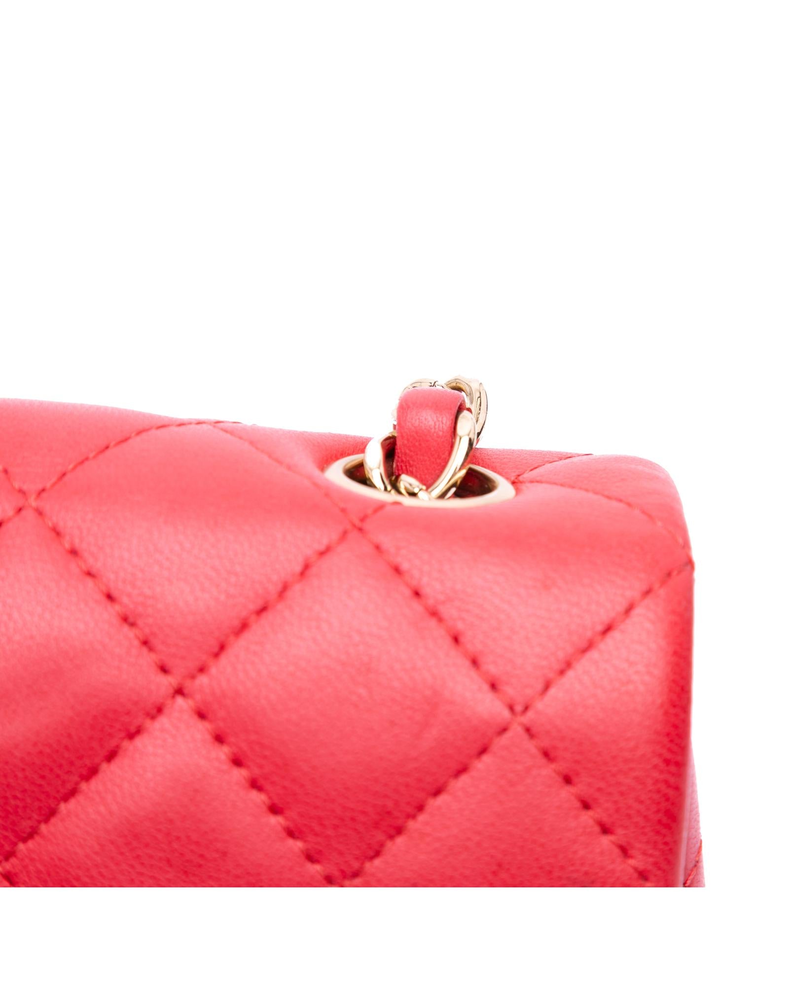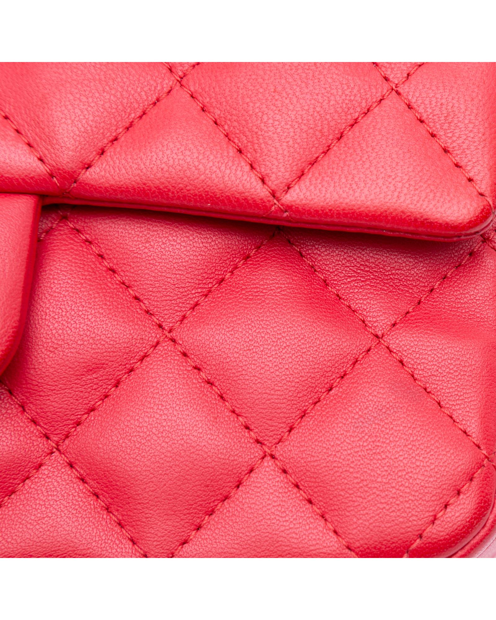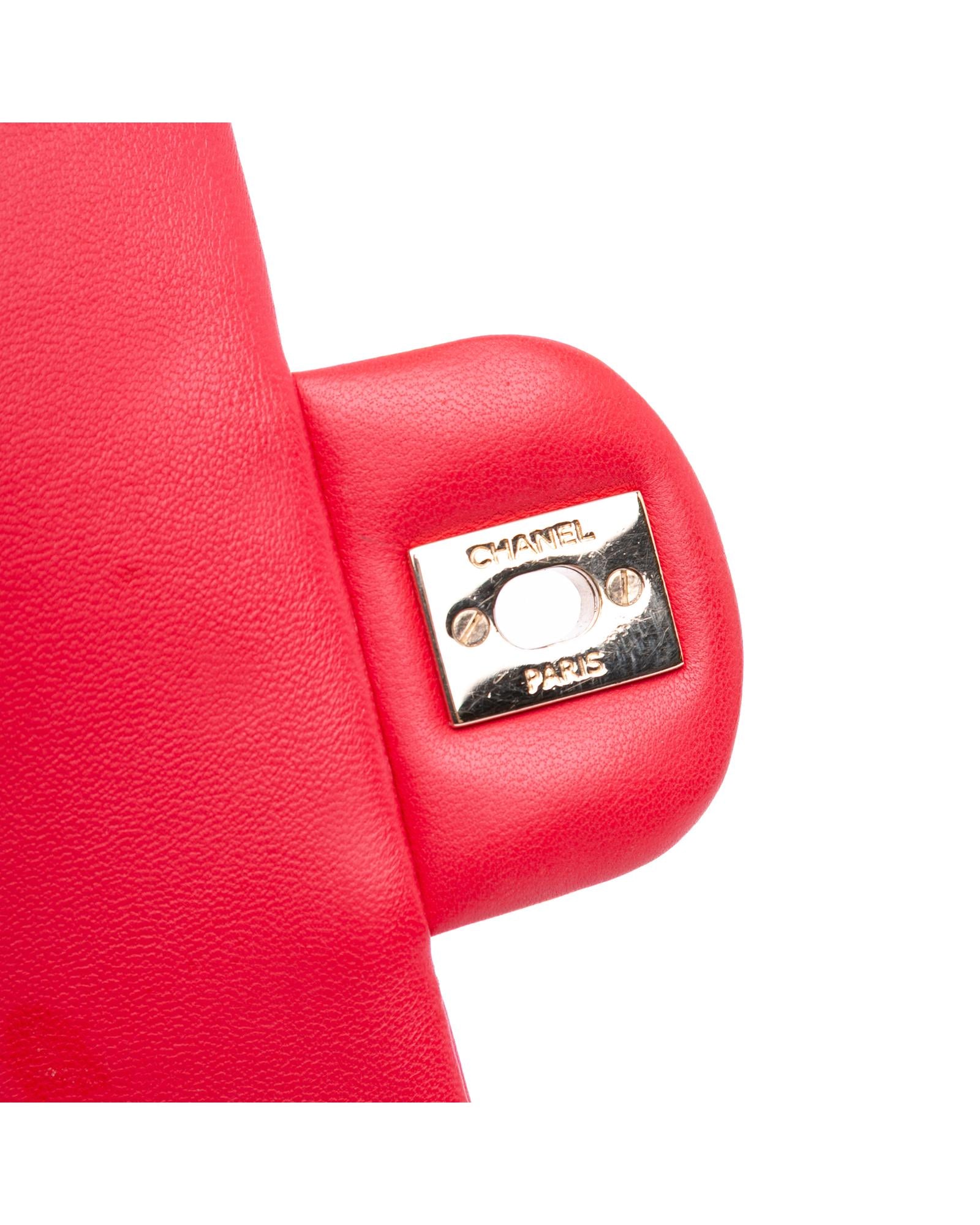 This flap bag features a lambskin leather body a leather woven chain link shoulder strap a front flap with CC turn lock closure and interior zip and slip pockets.Brand: Chanel