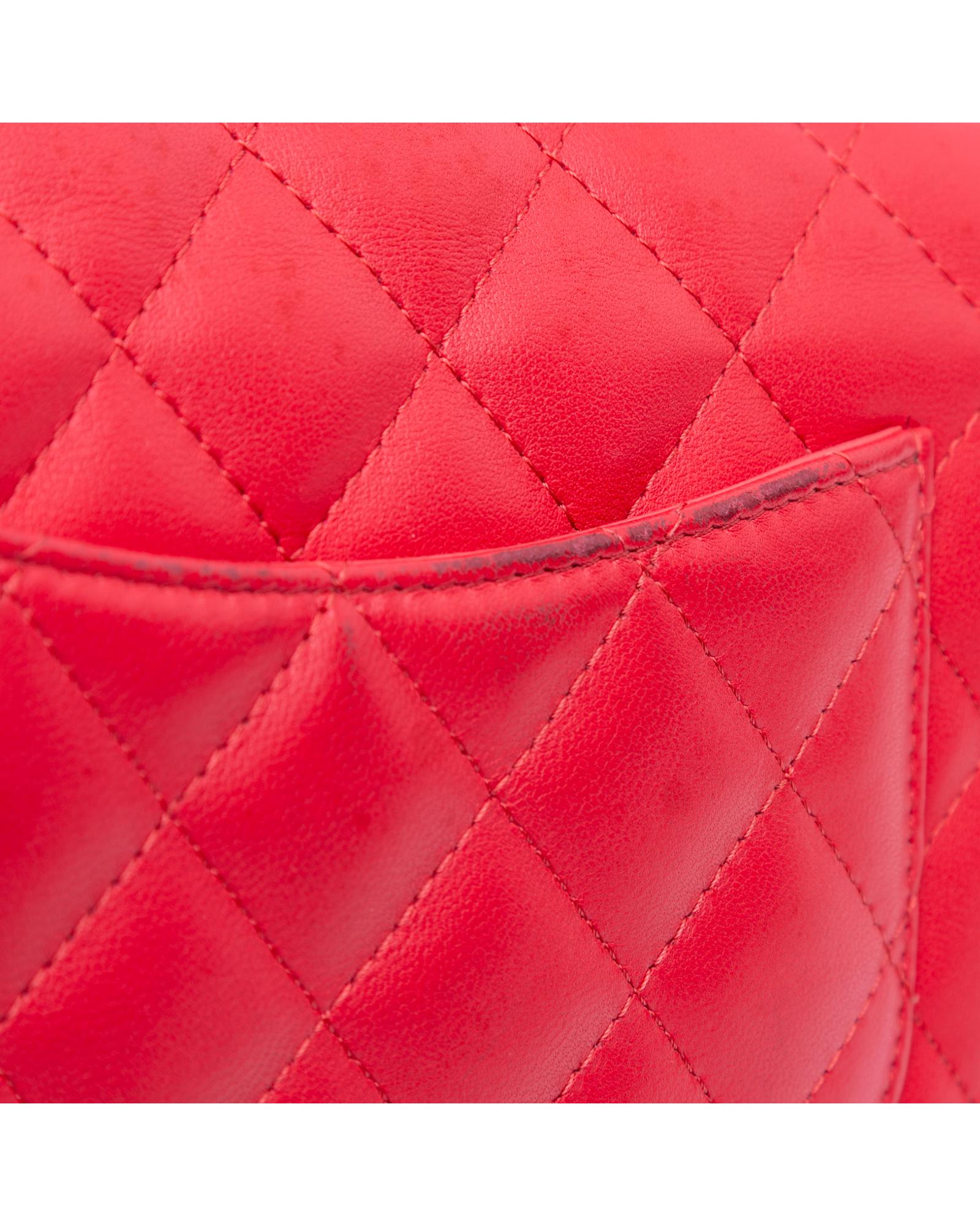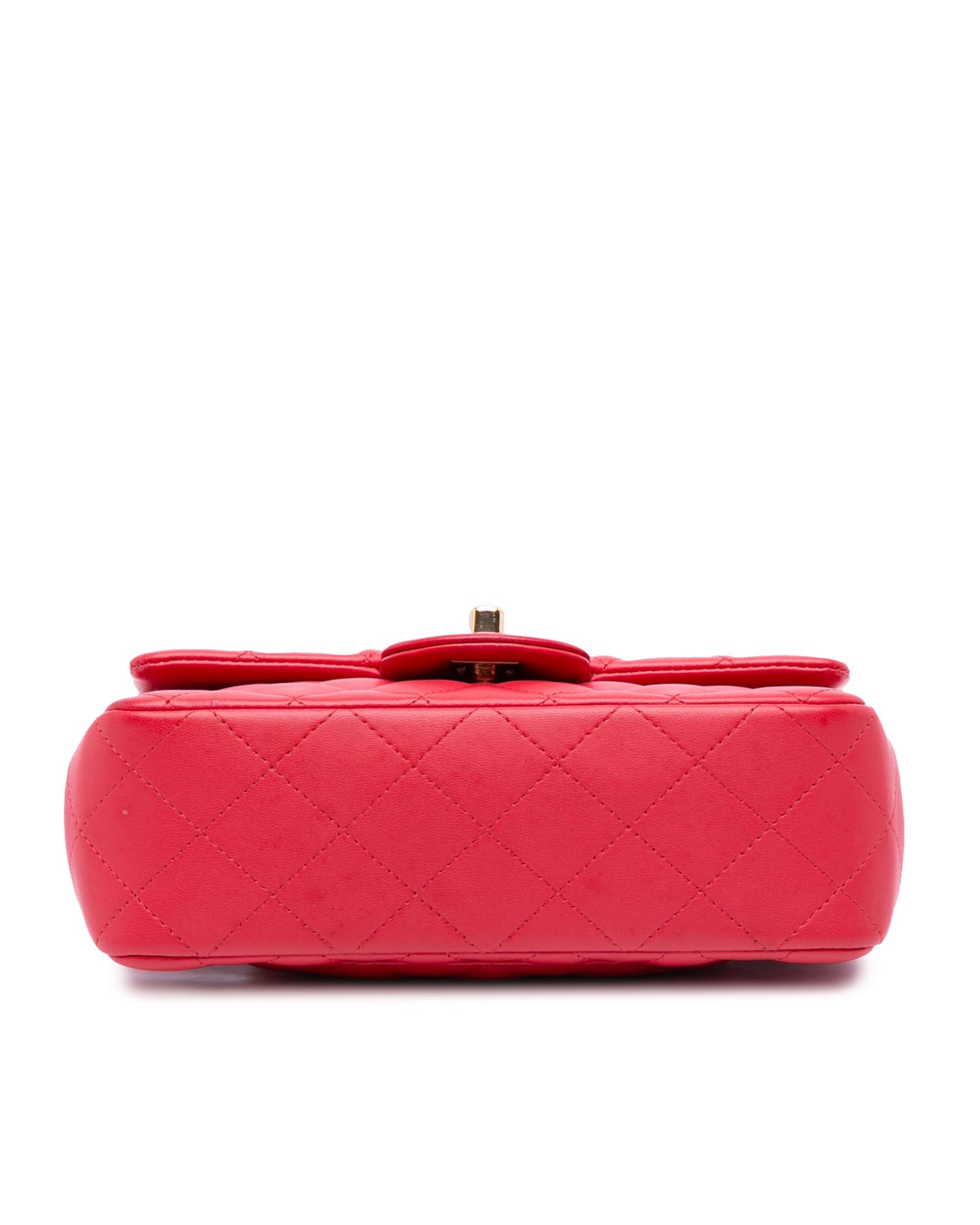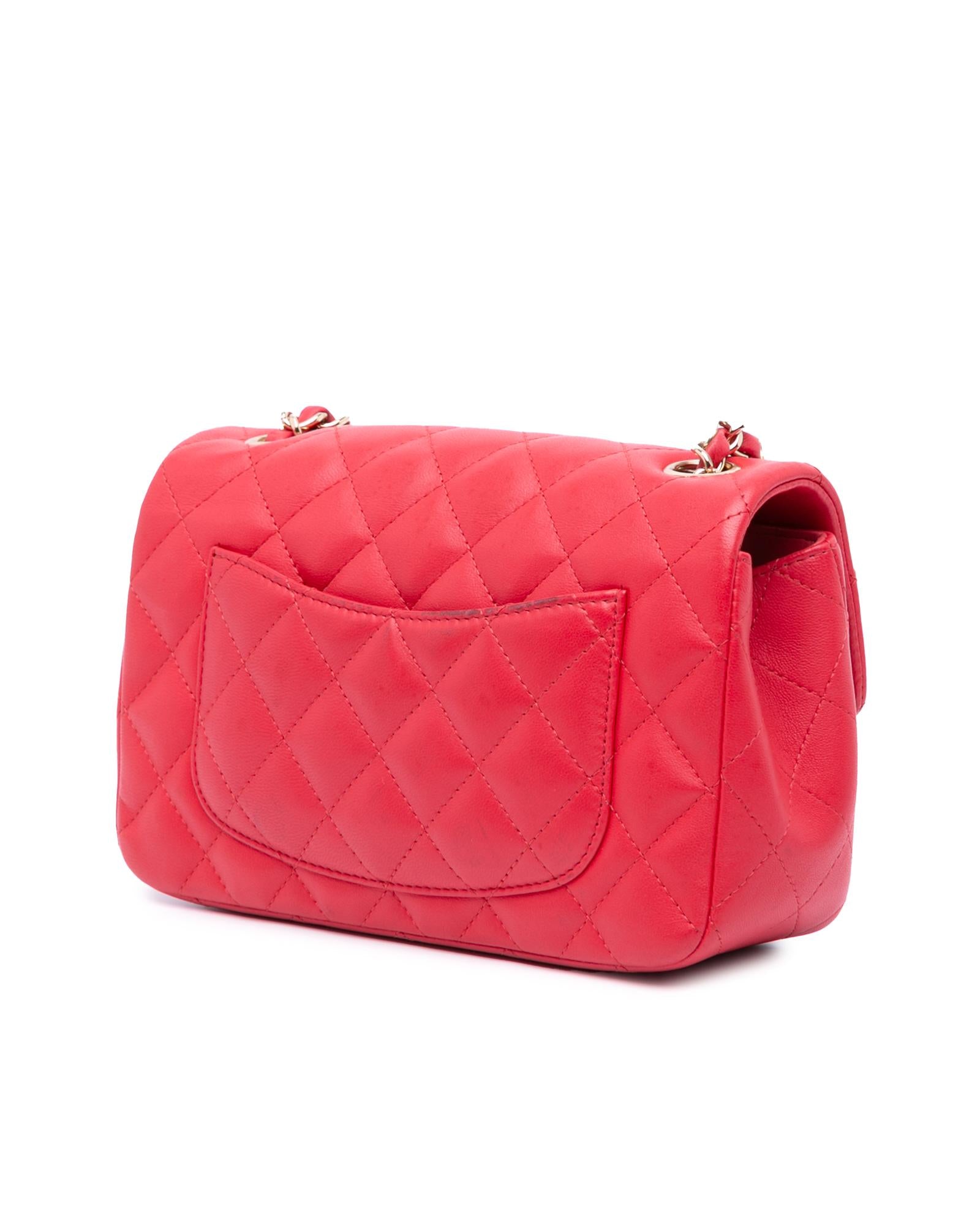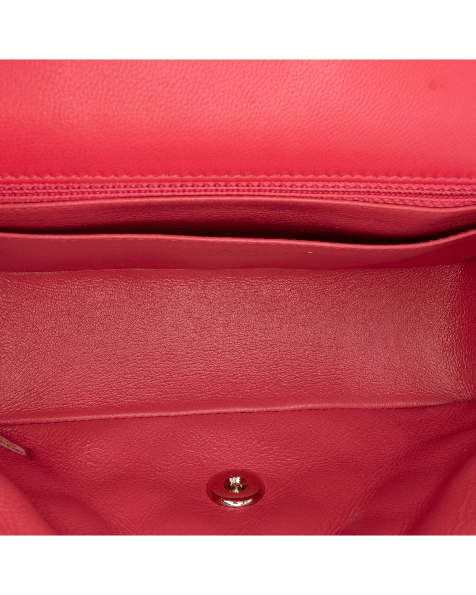 This flap bag features a lambskin leather body a leather woven chain link shoulder strap a front flap with CC turn lock closure and interior zip and slip pockets.Brand: Chanel