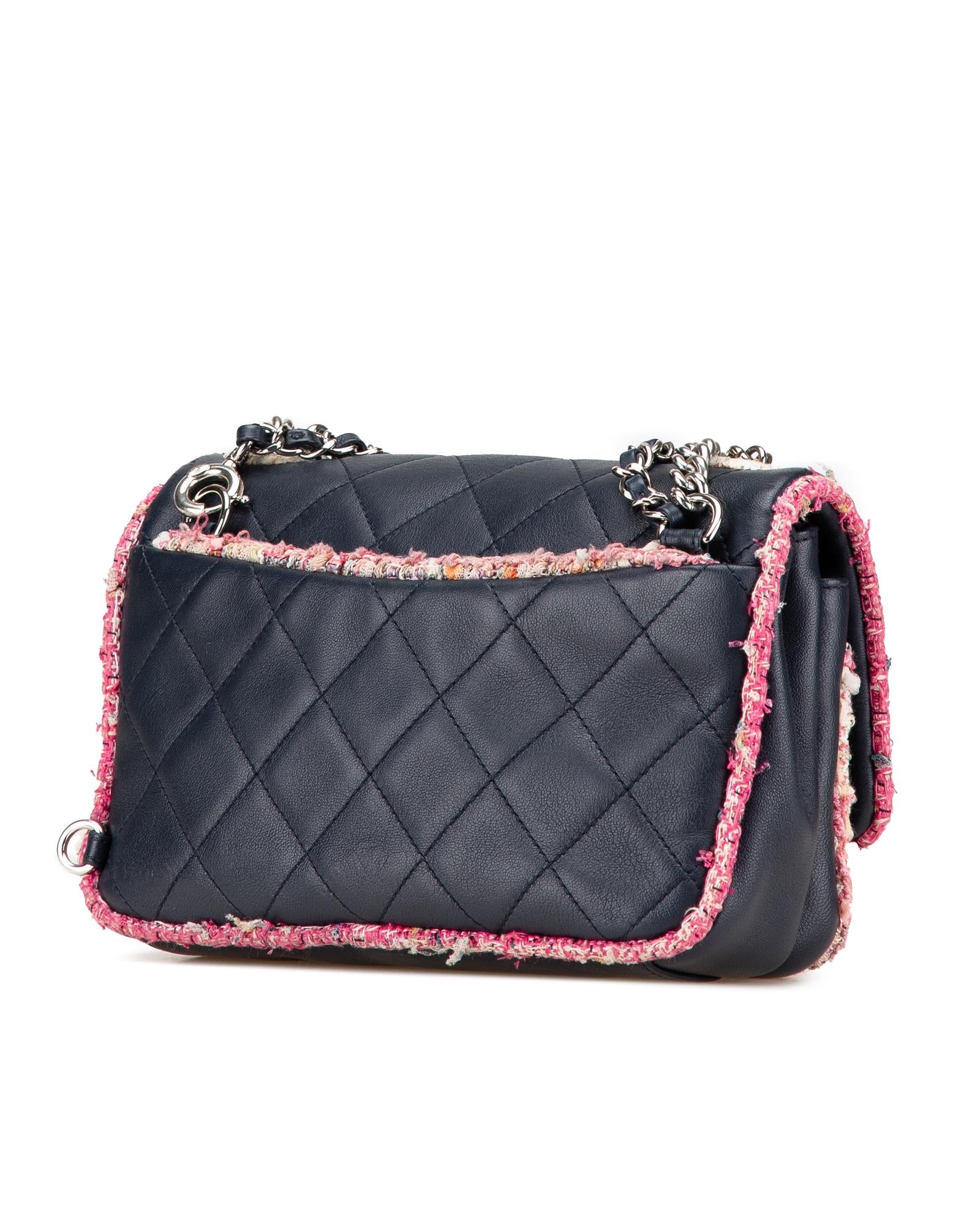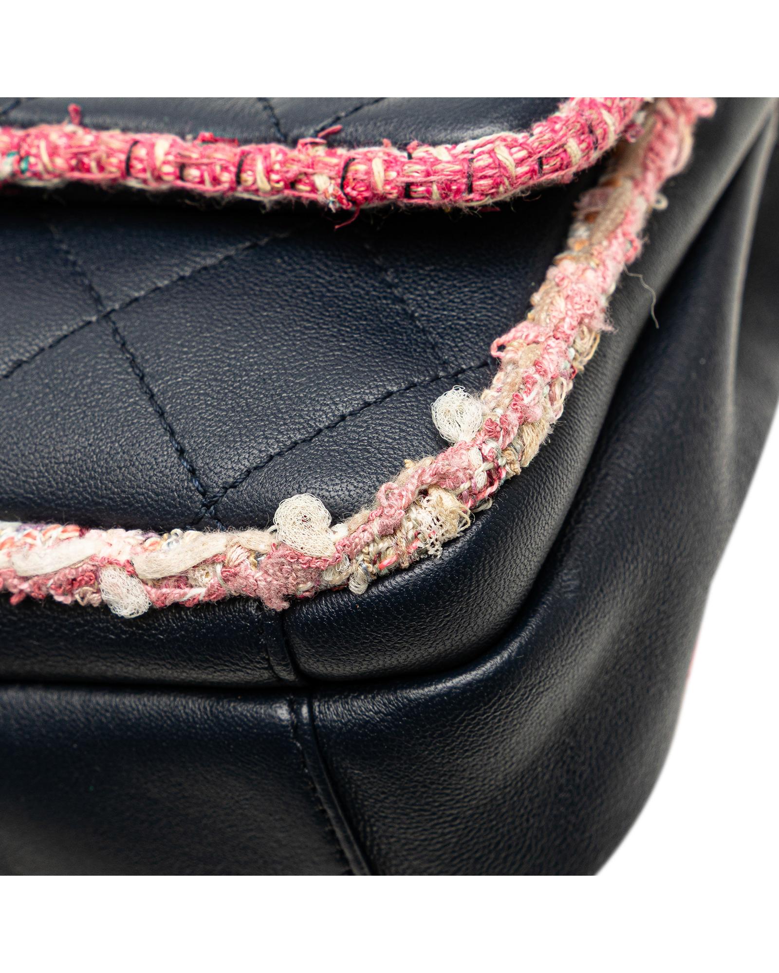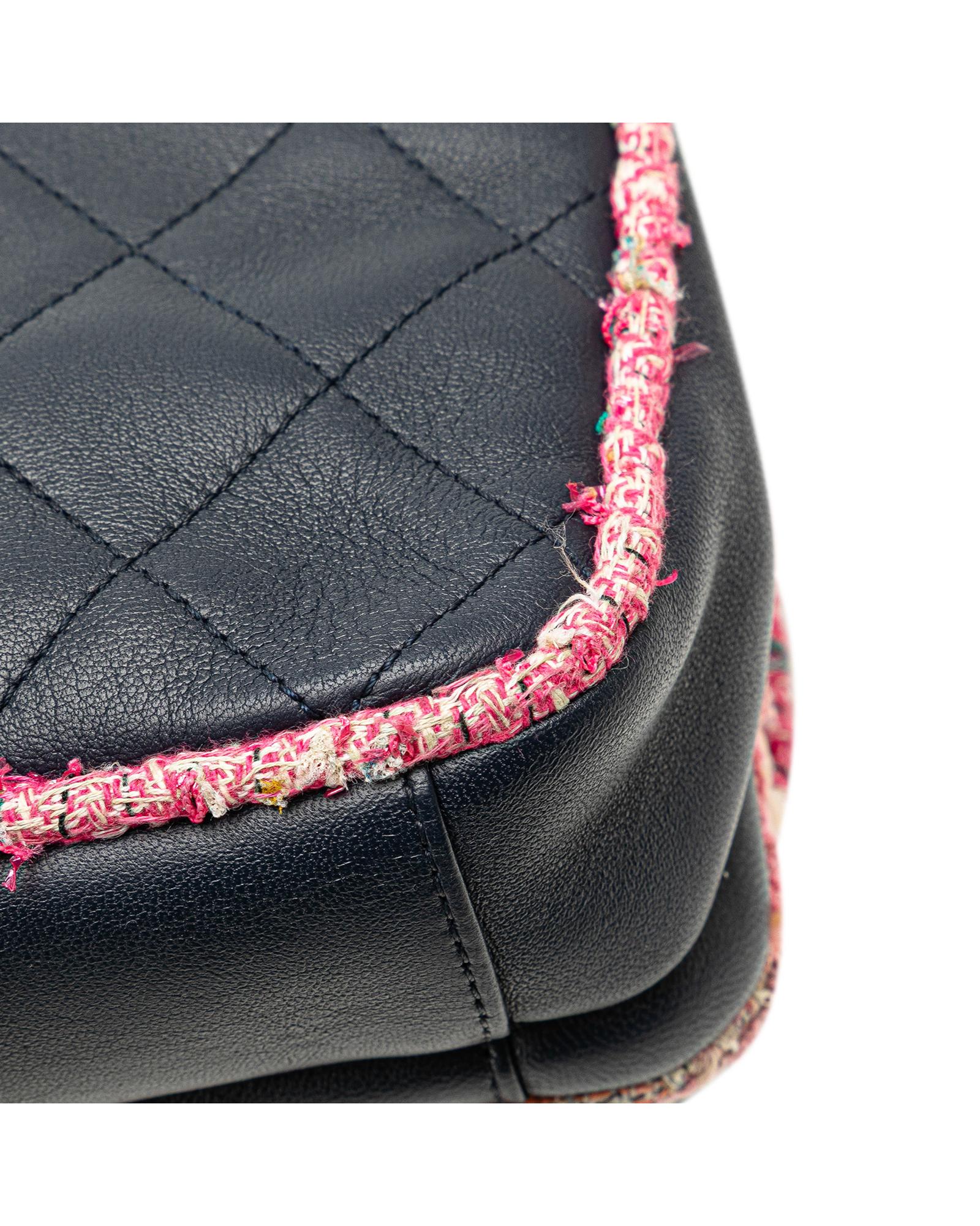Quilted Lambskin and Tweed Trim Chain Flap Satchel