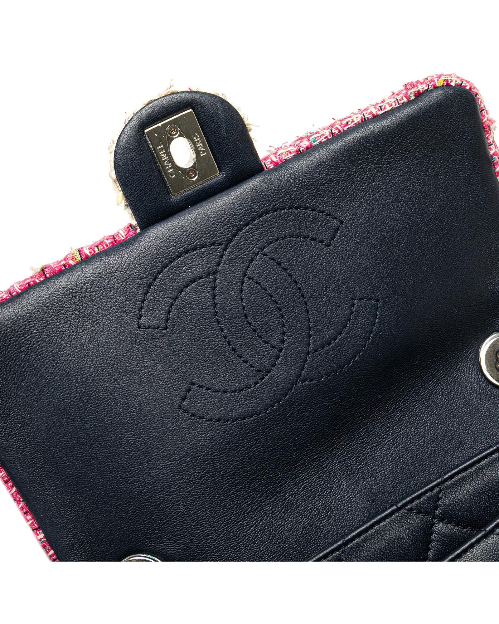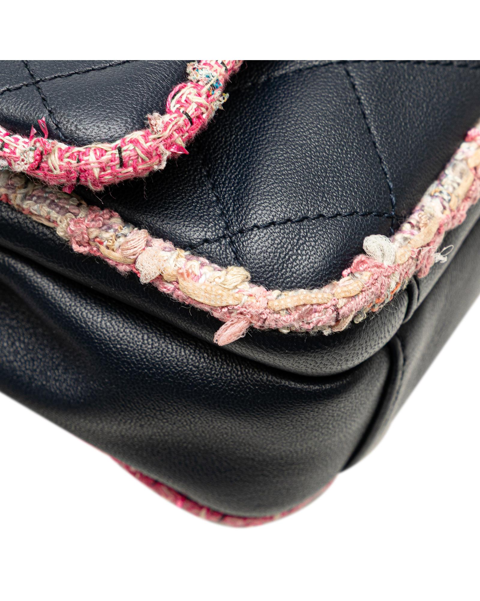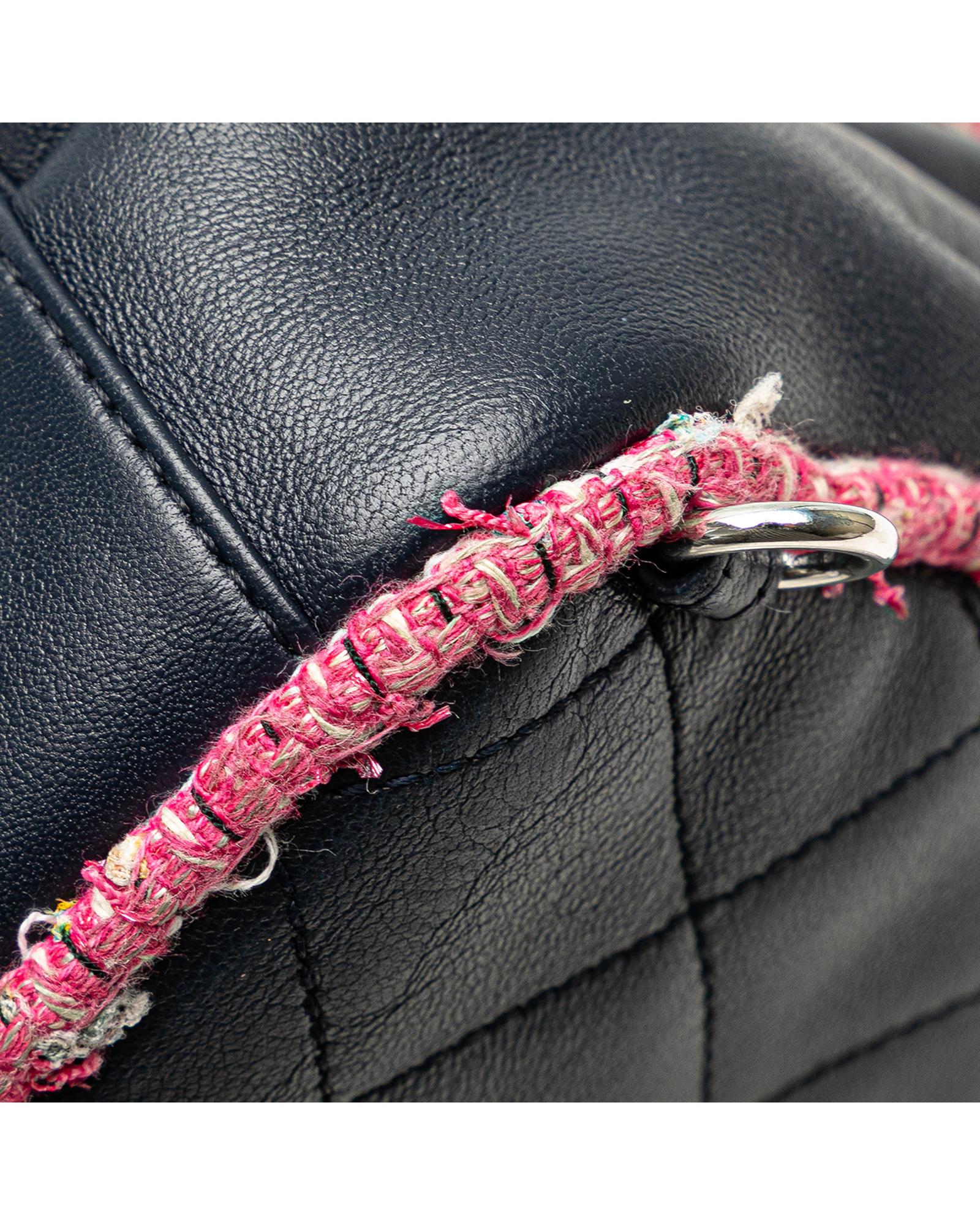 Quilted Lambskin and Tweed Trim Chain Flap Satchel