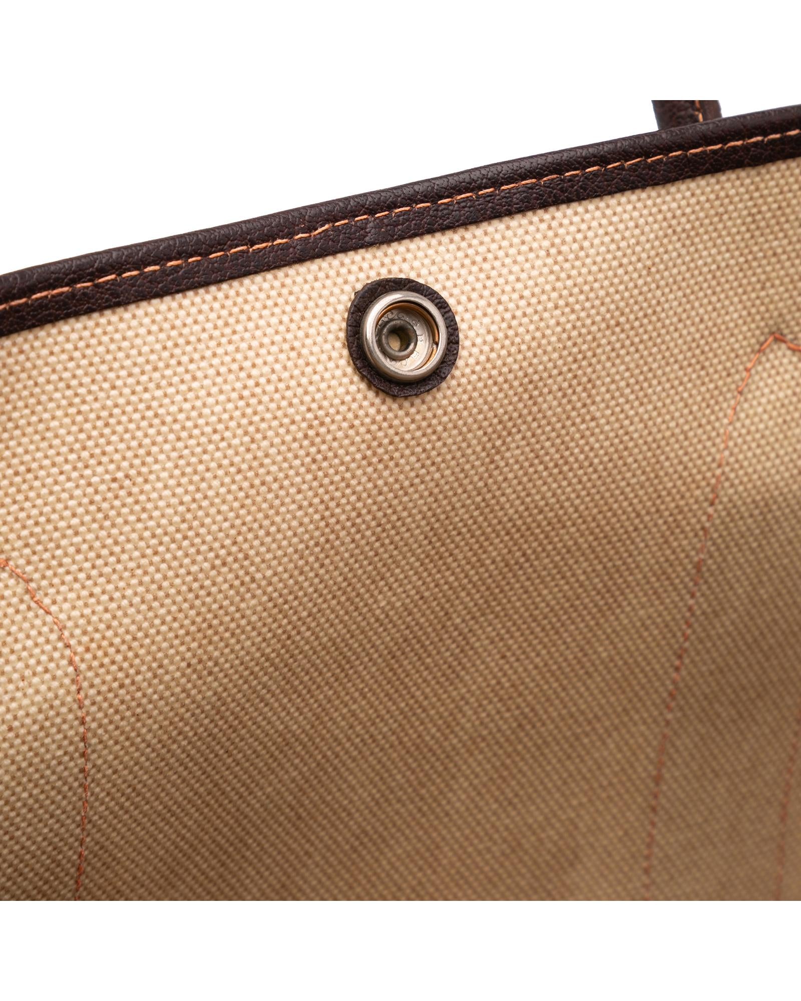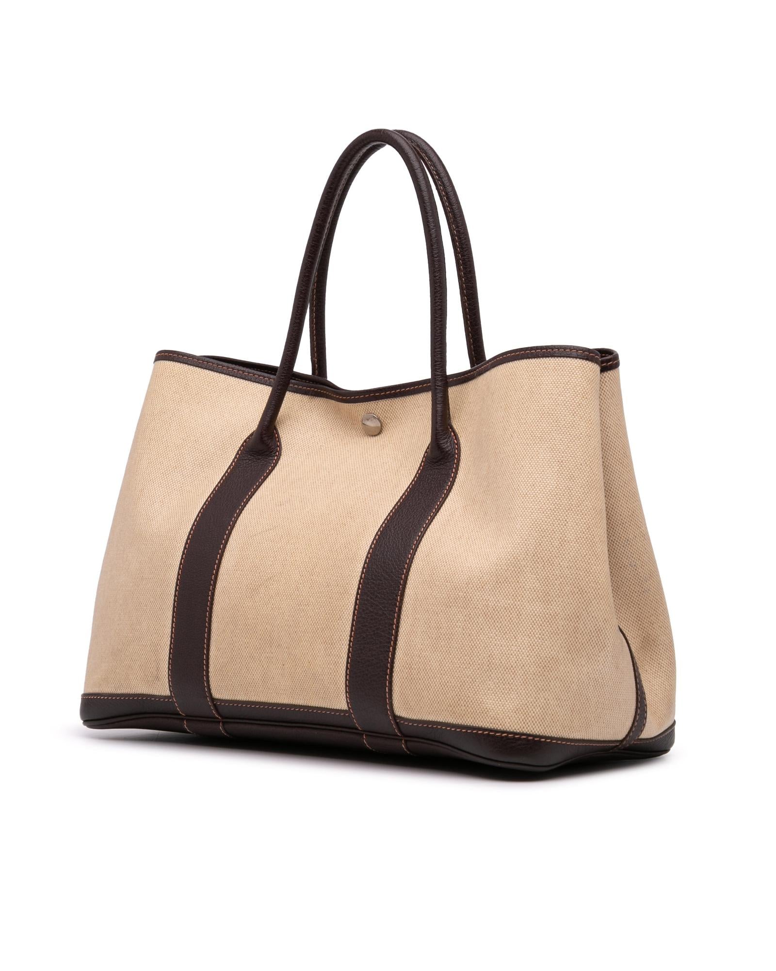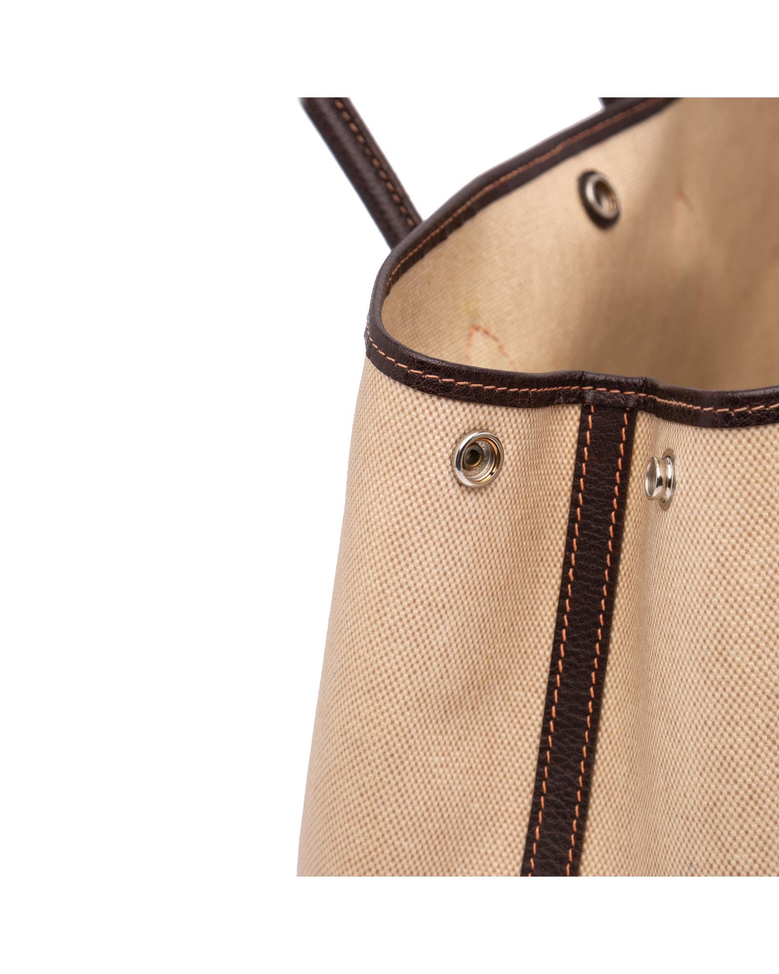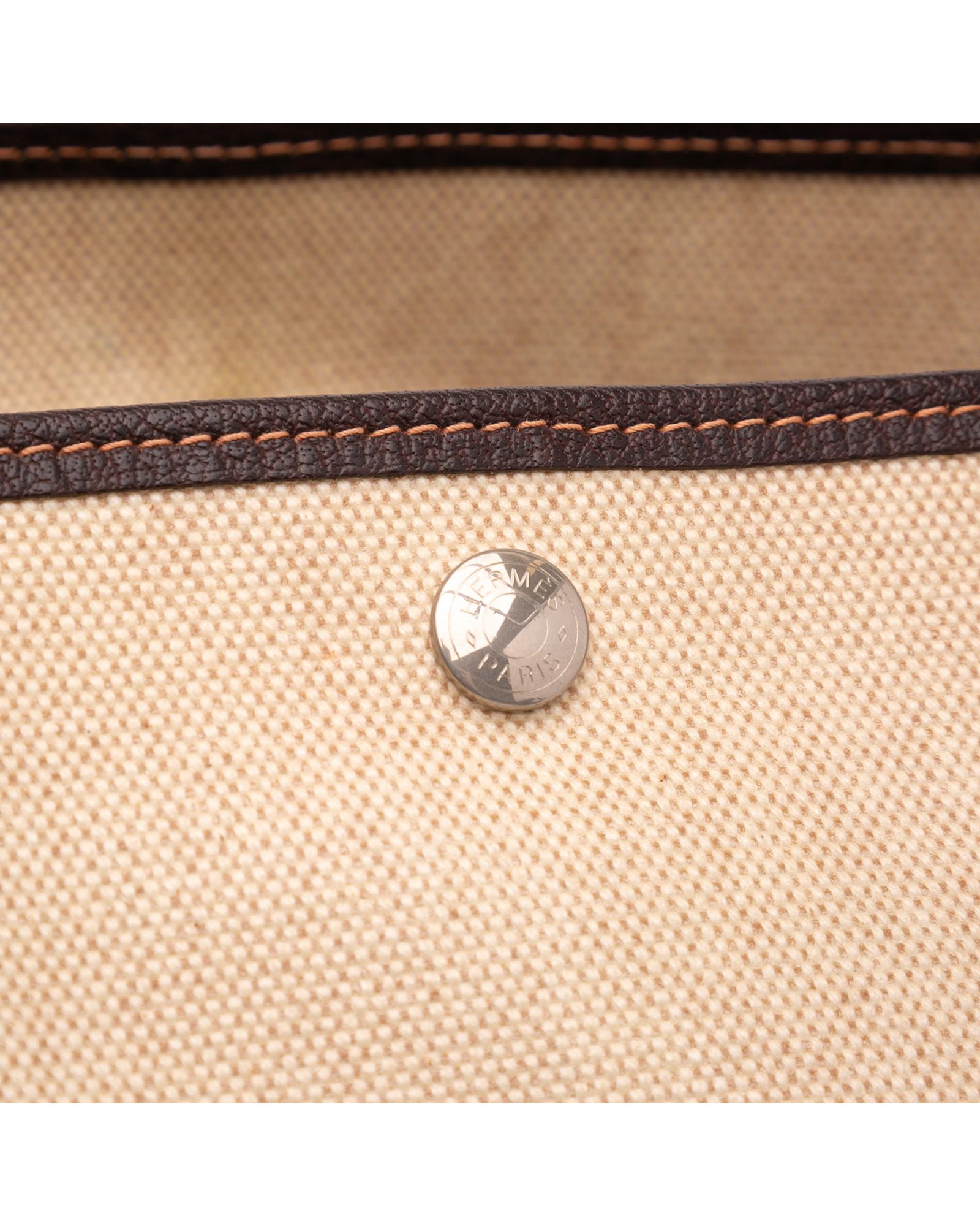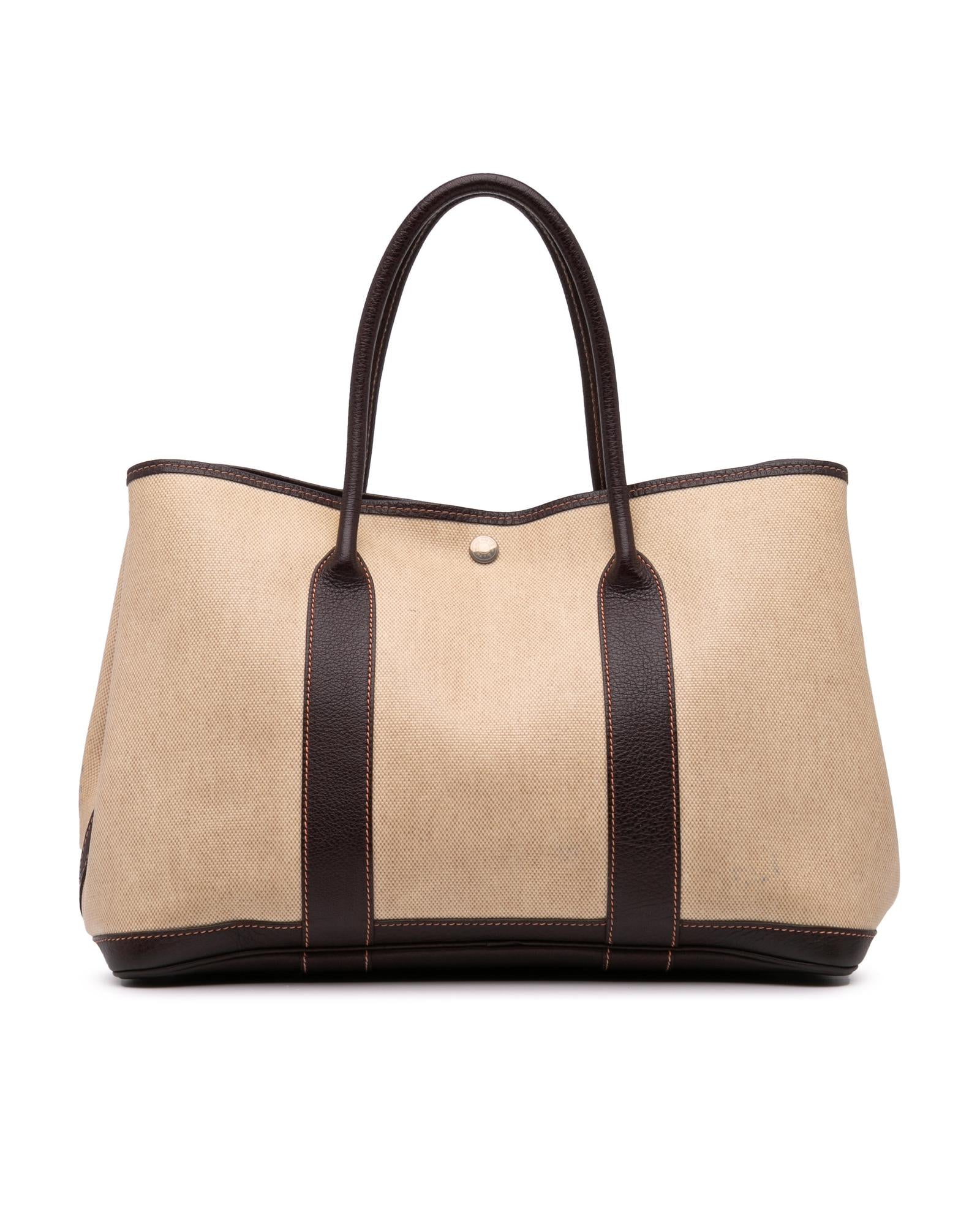 The Garden Party 36 features a canvas body with Negonda leather trim rolled leather handles and an open top with snap button closure.Brand: Hermes