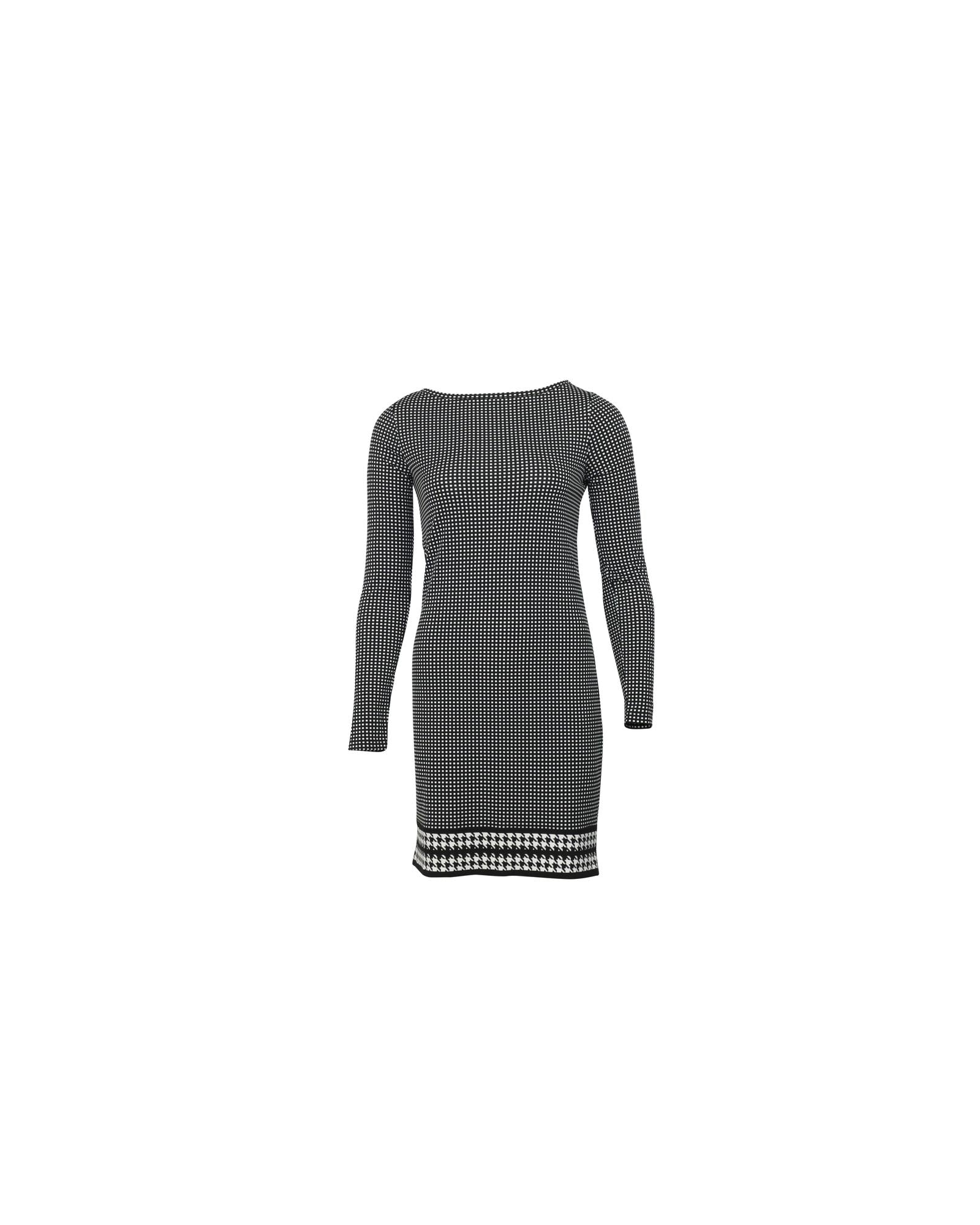 • Michael Kors Checked Mini Dress with Houndstooth Hem in Black Polyester
