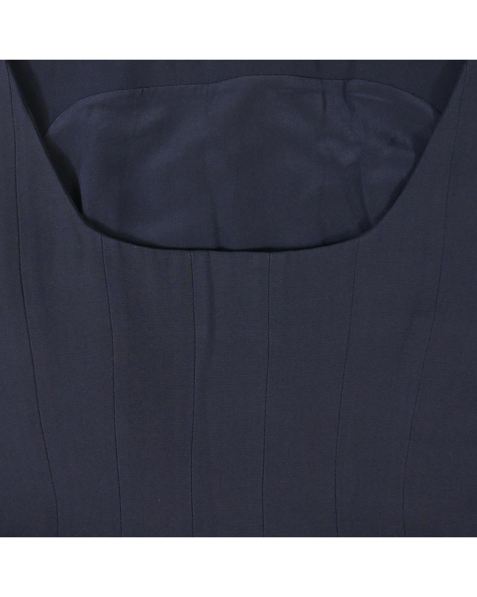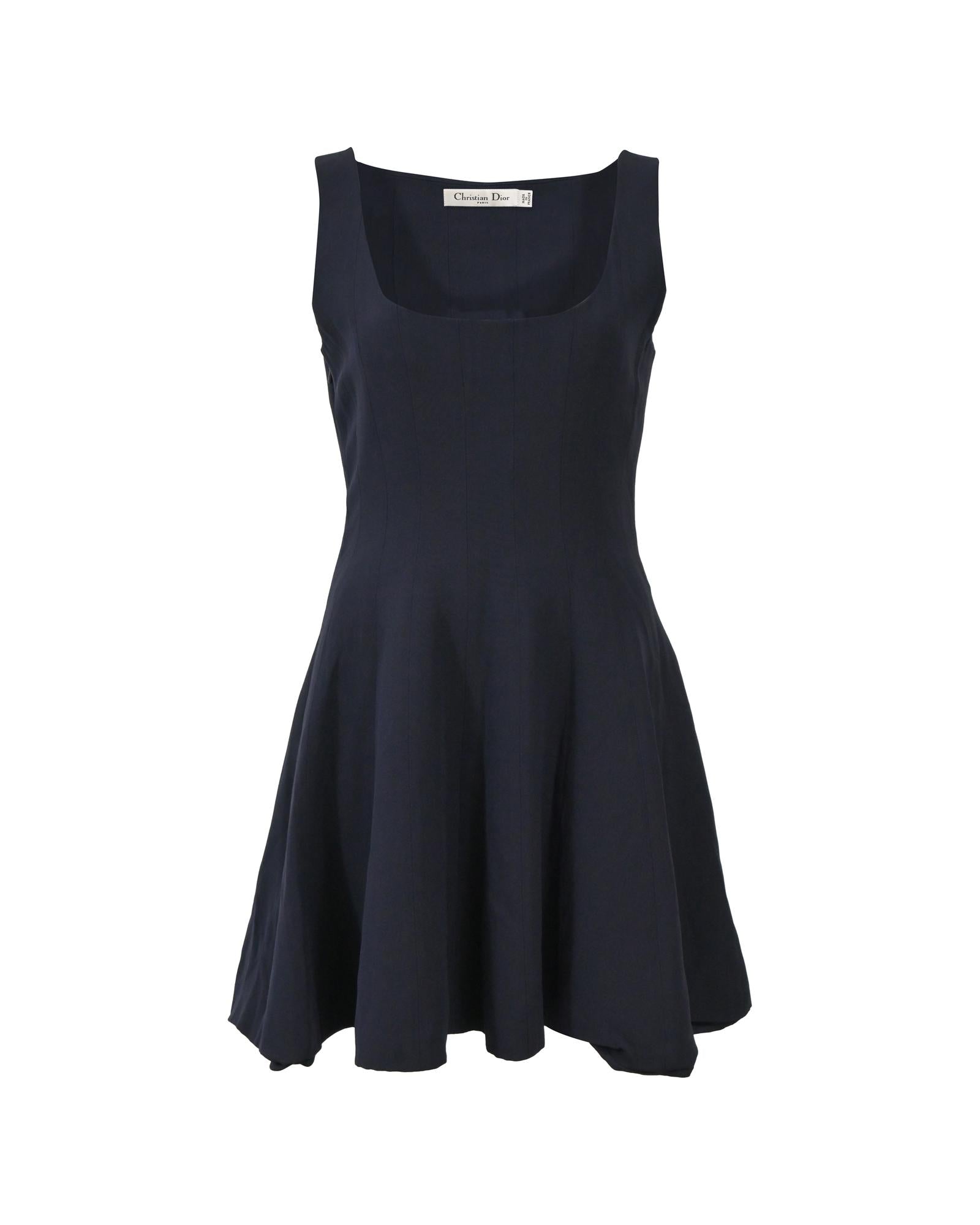 - Neck Mini Sleeveless Flare Dress in Navy Blue Viscose