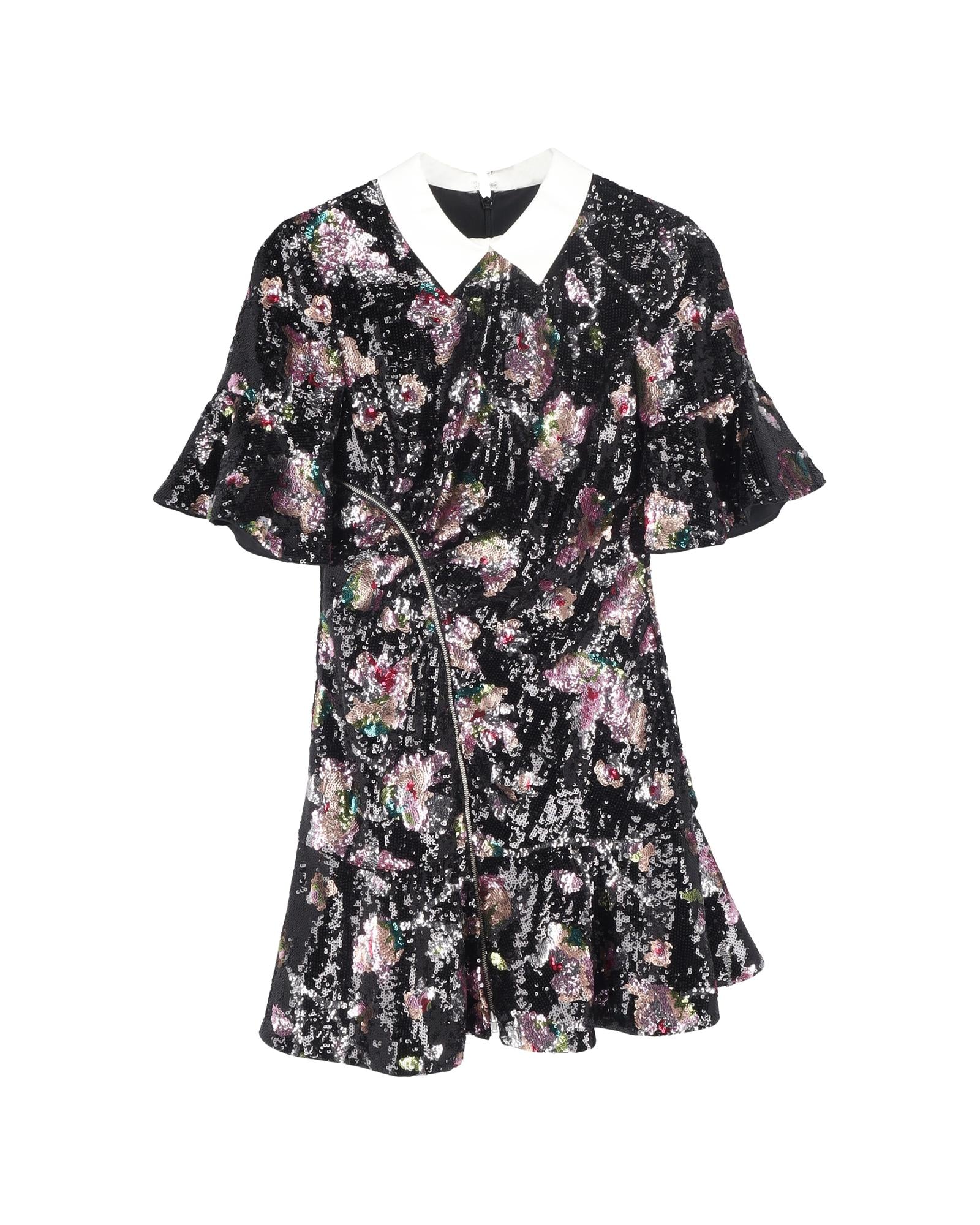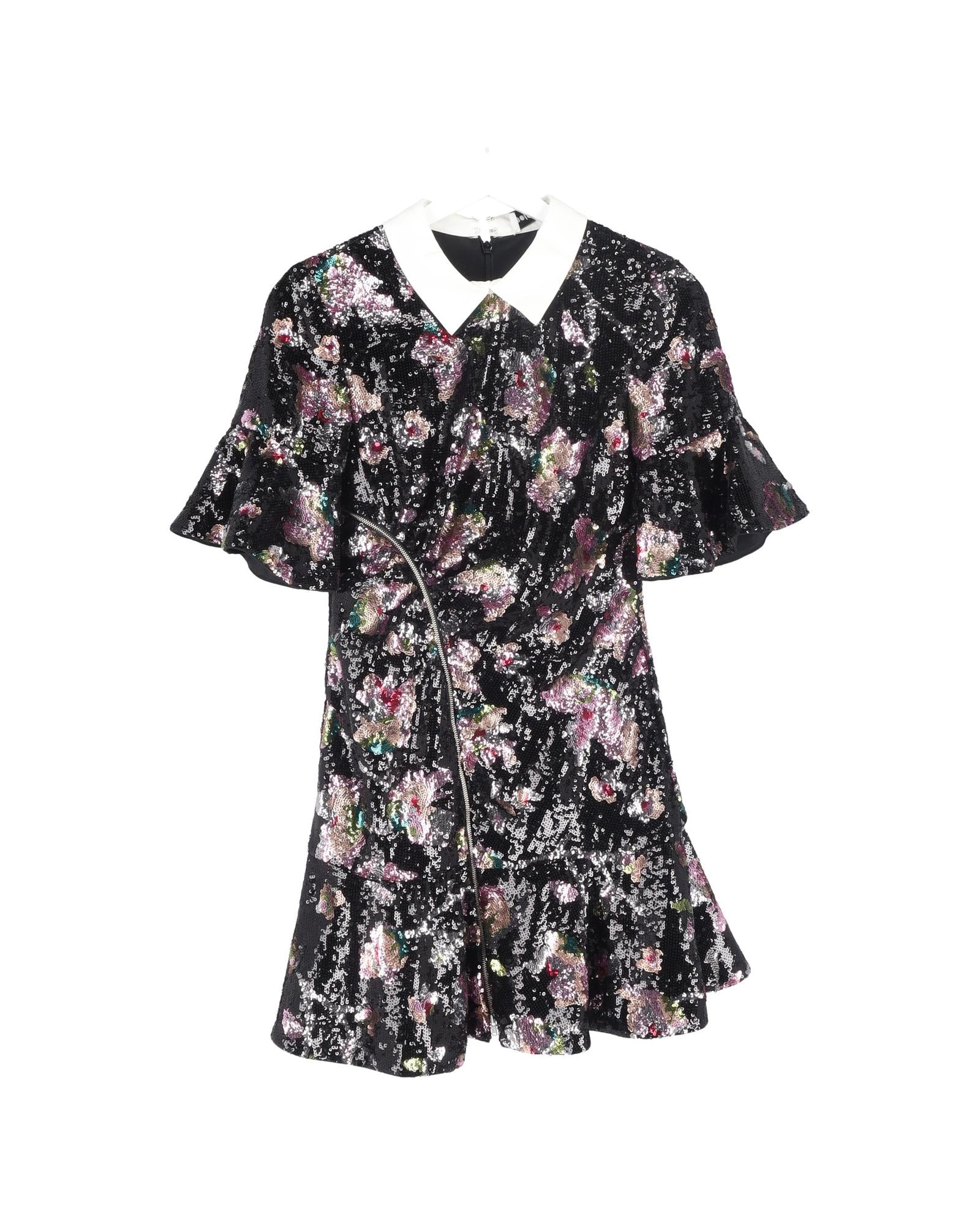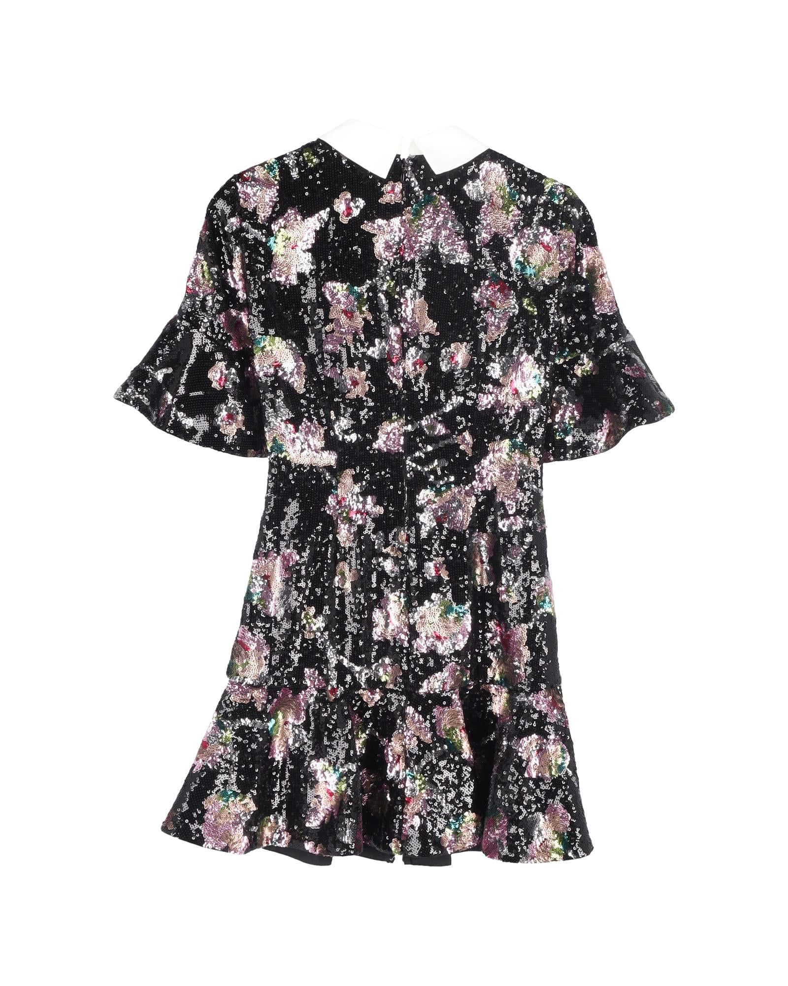 - Portrait Floral Sequined Mini Dress in Multicolor Polyester