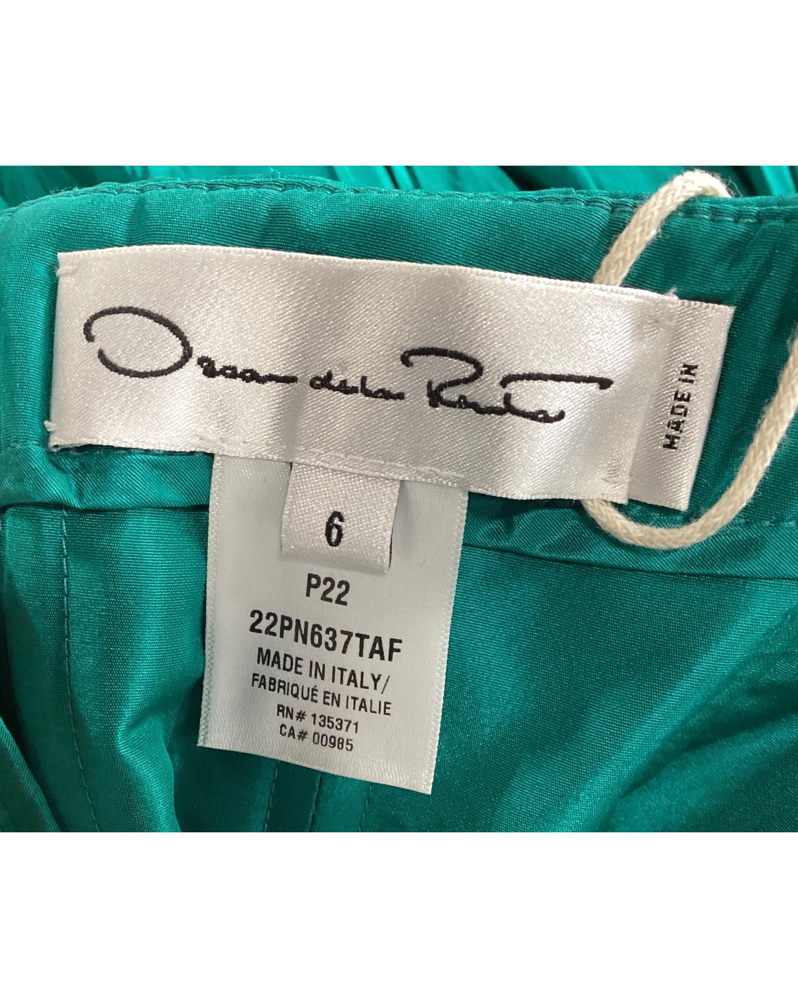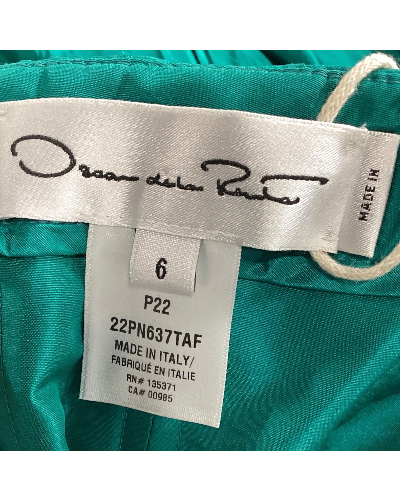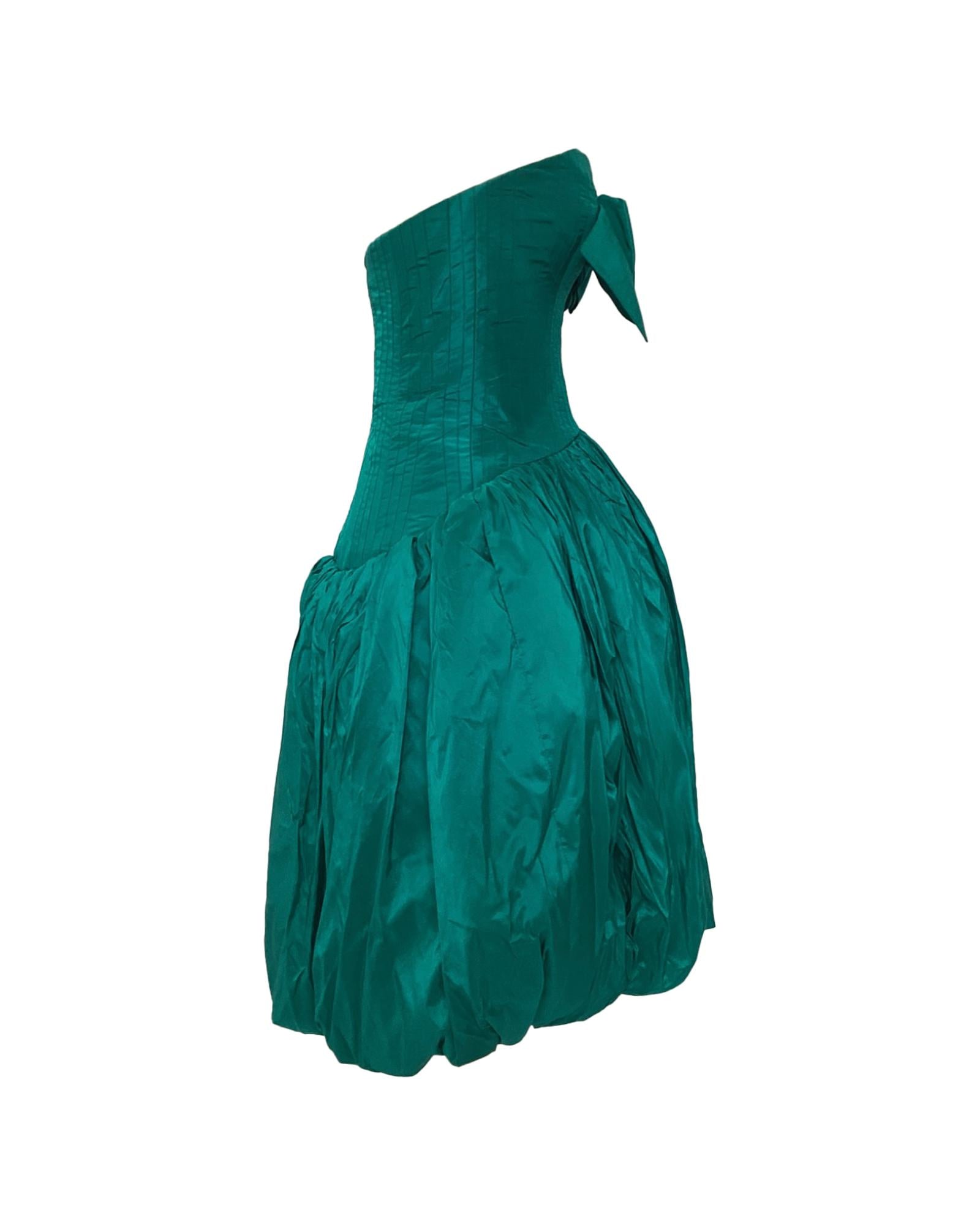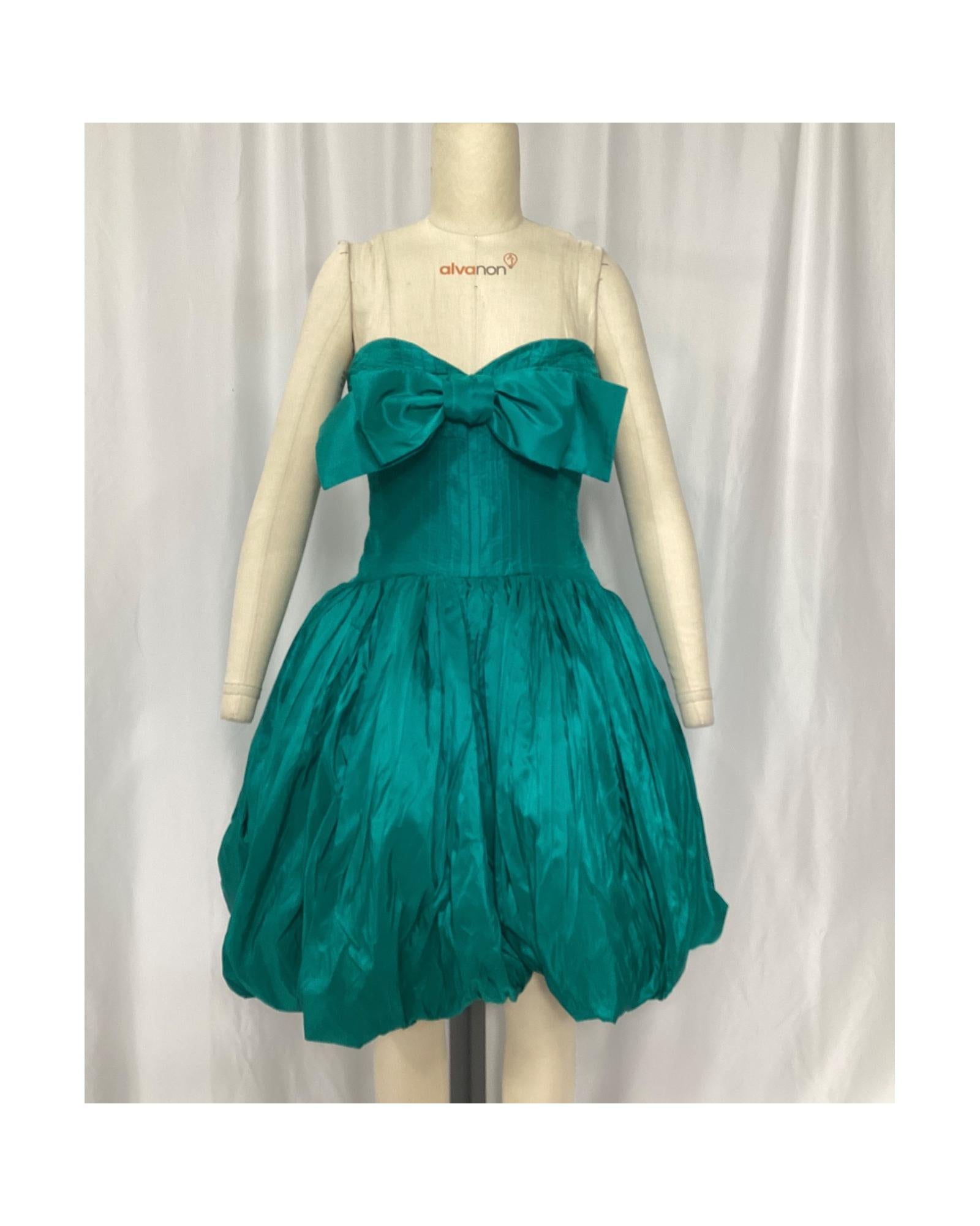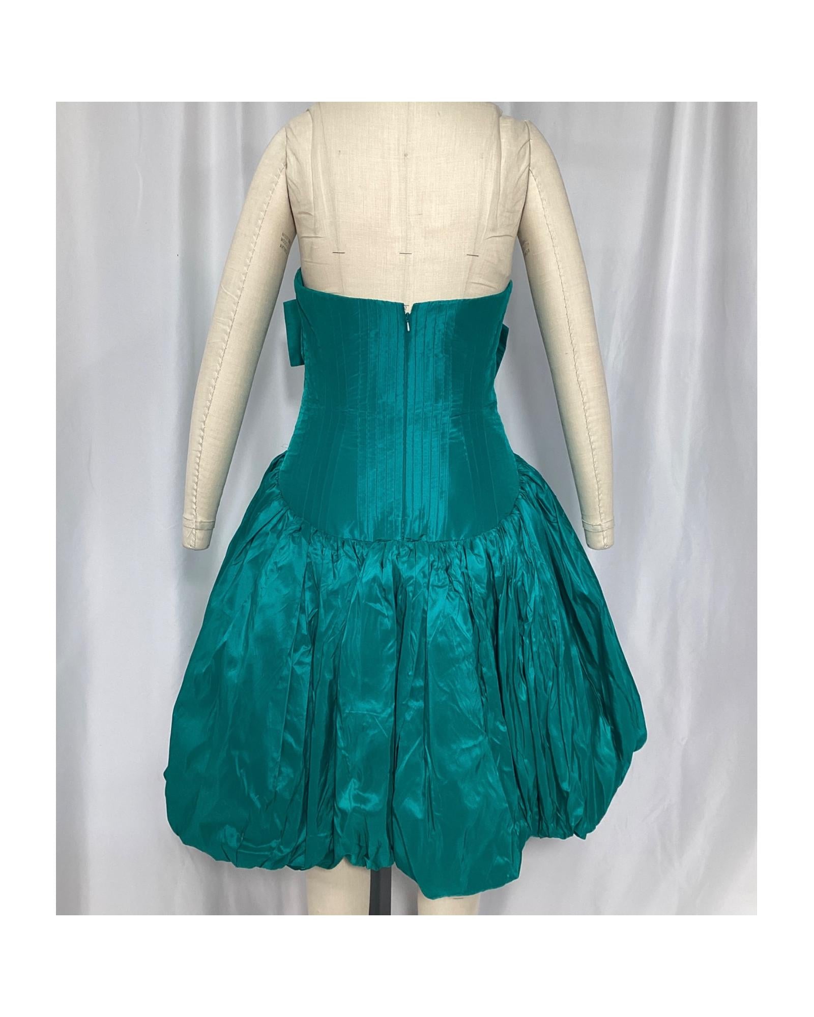 • Oscar de la Renta Strapless Bow Embellished Taffeta Mini Dress in Turquoise Silk