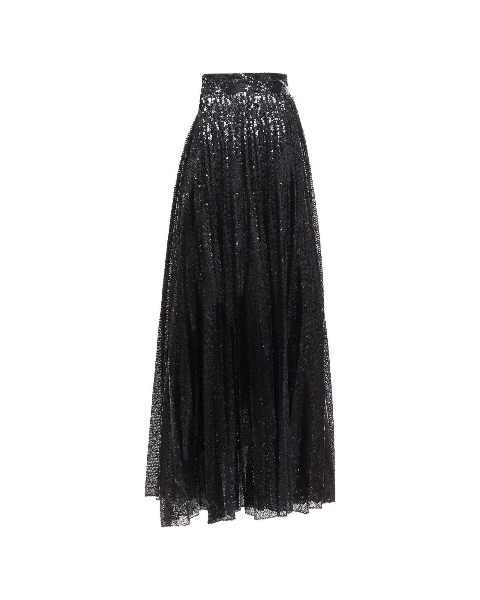 Pre-owned Elegant Pleated Midi Skirt with Delicate Sequin Detailing for Stylish Flair