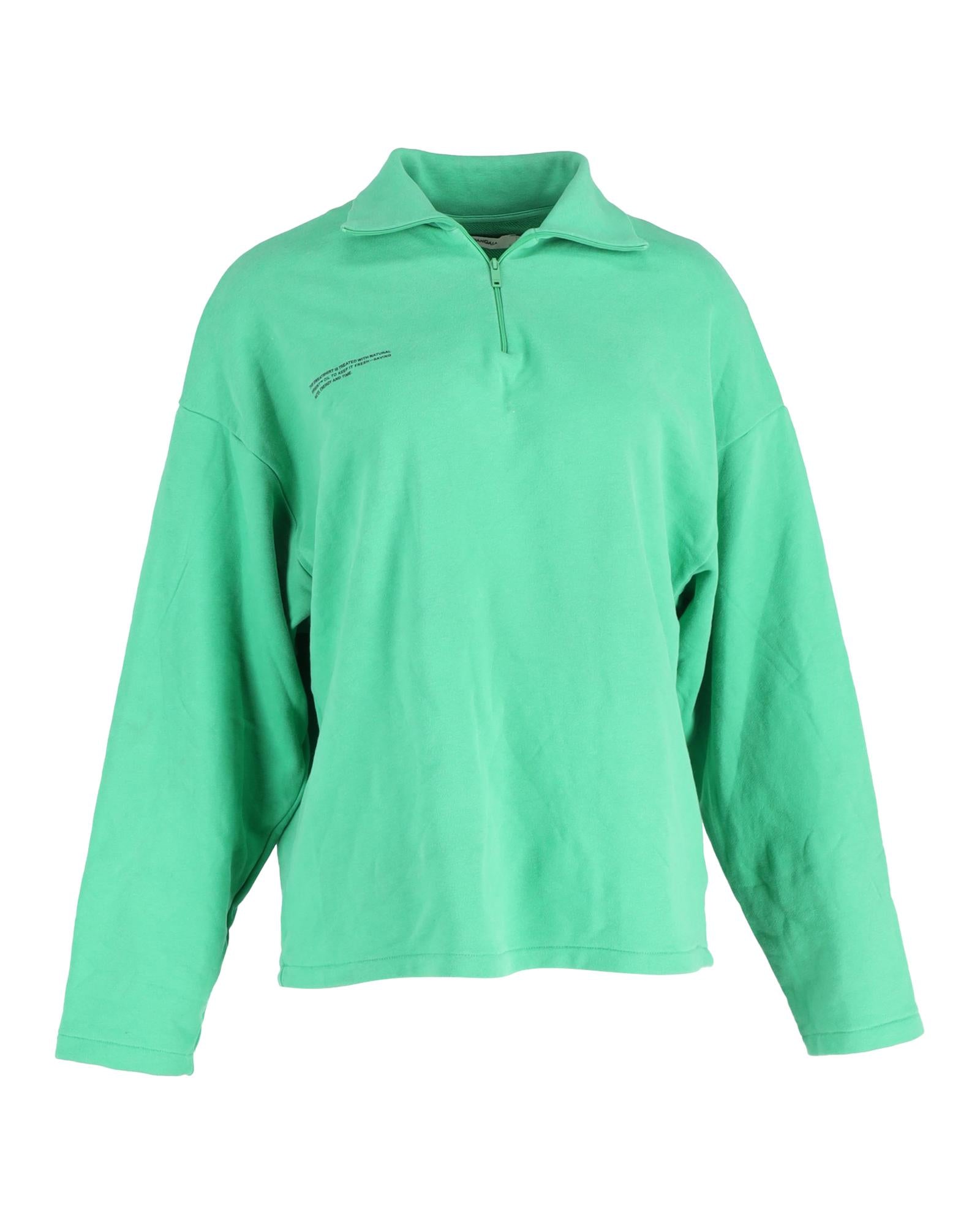 - Pangaia Double Jersey Half Zip Sweatshirt in Green Cotton