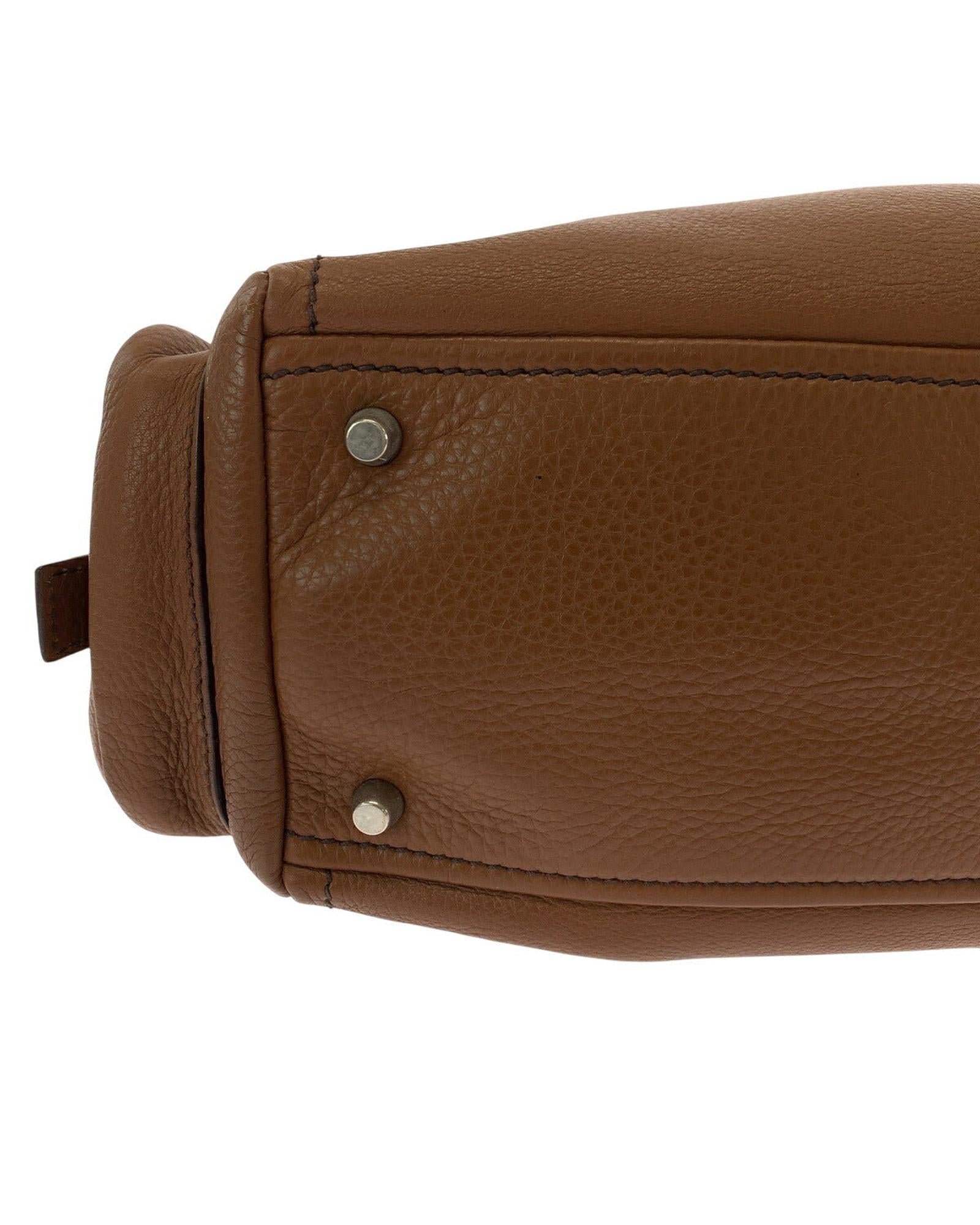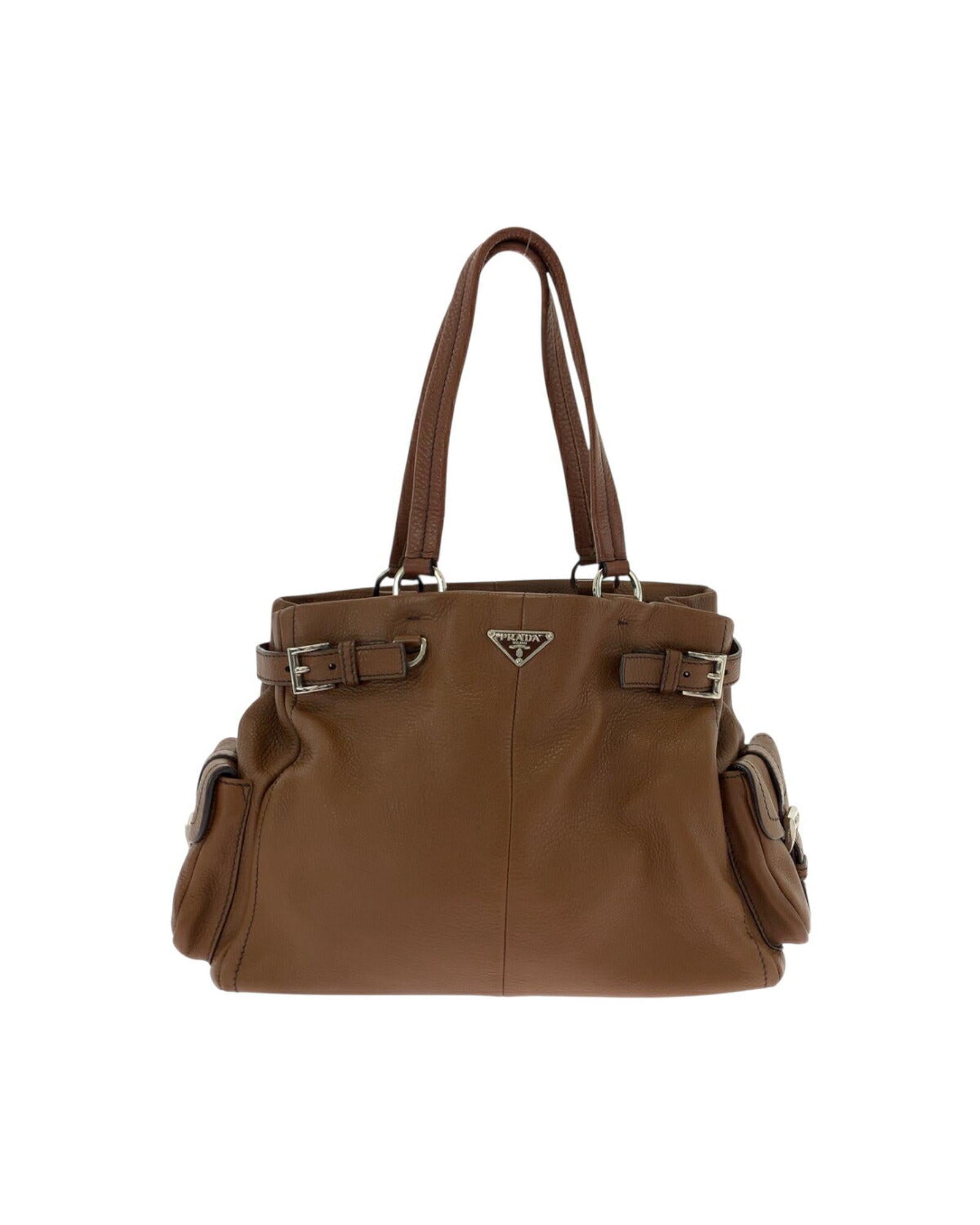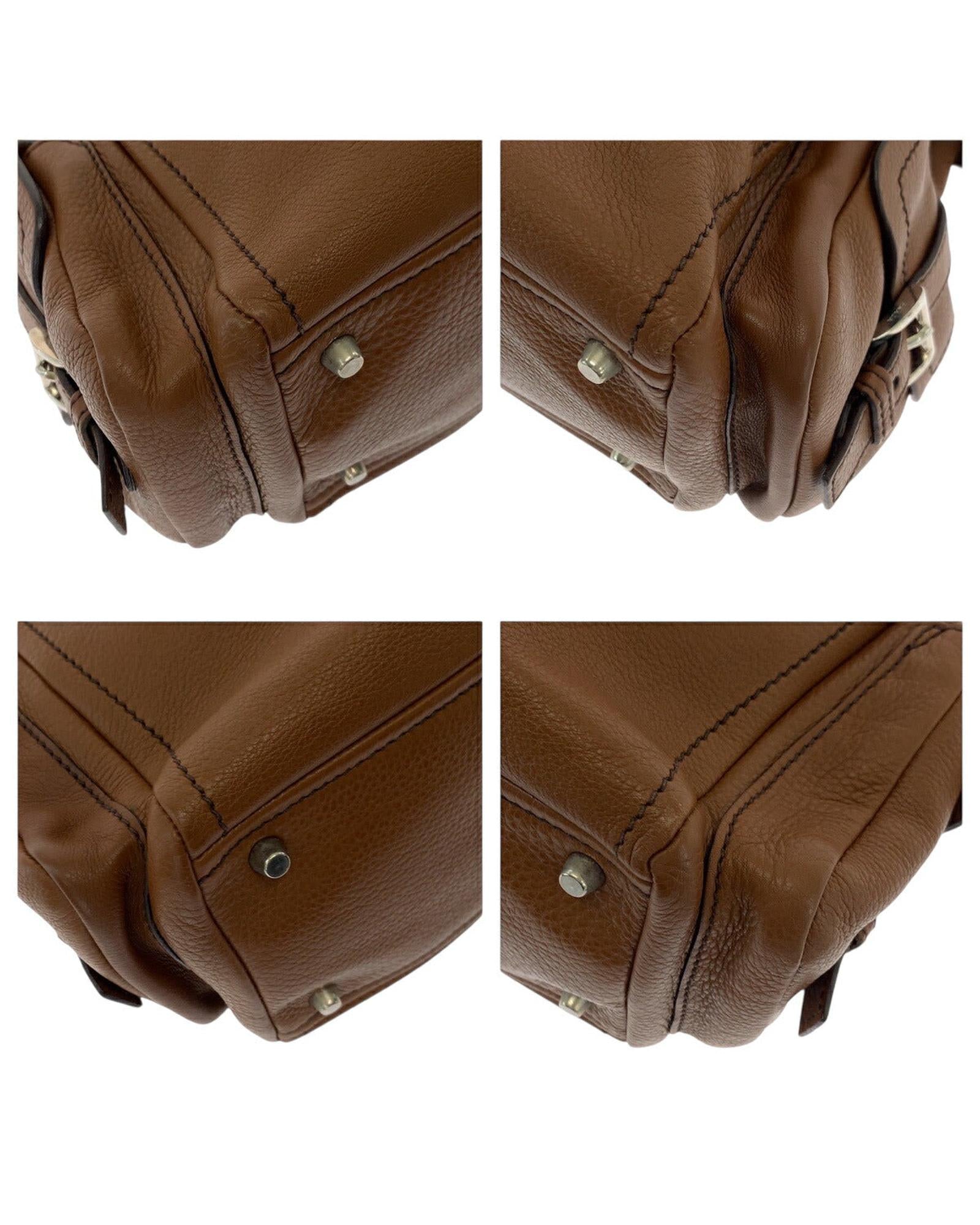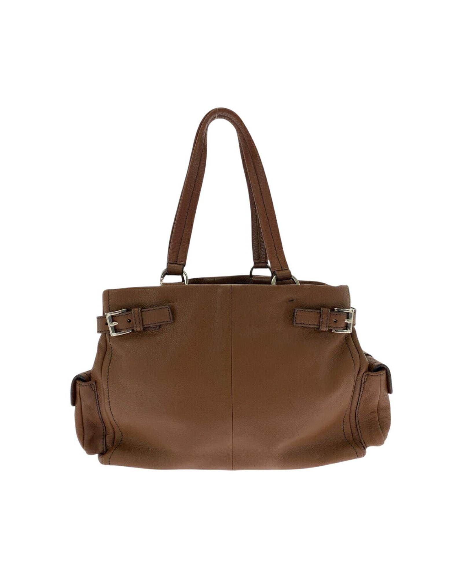 Pre-owned Leather Handbag with Buckle Detail and Interior Compartments