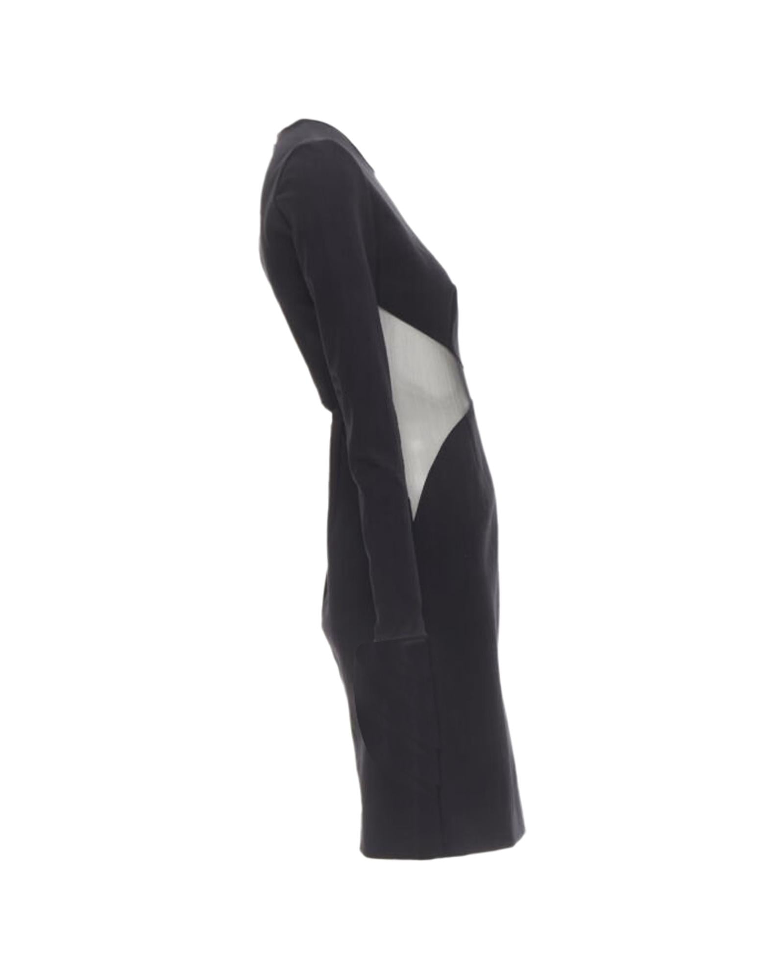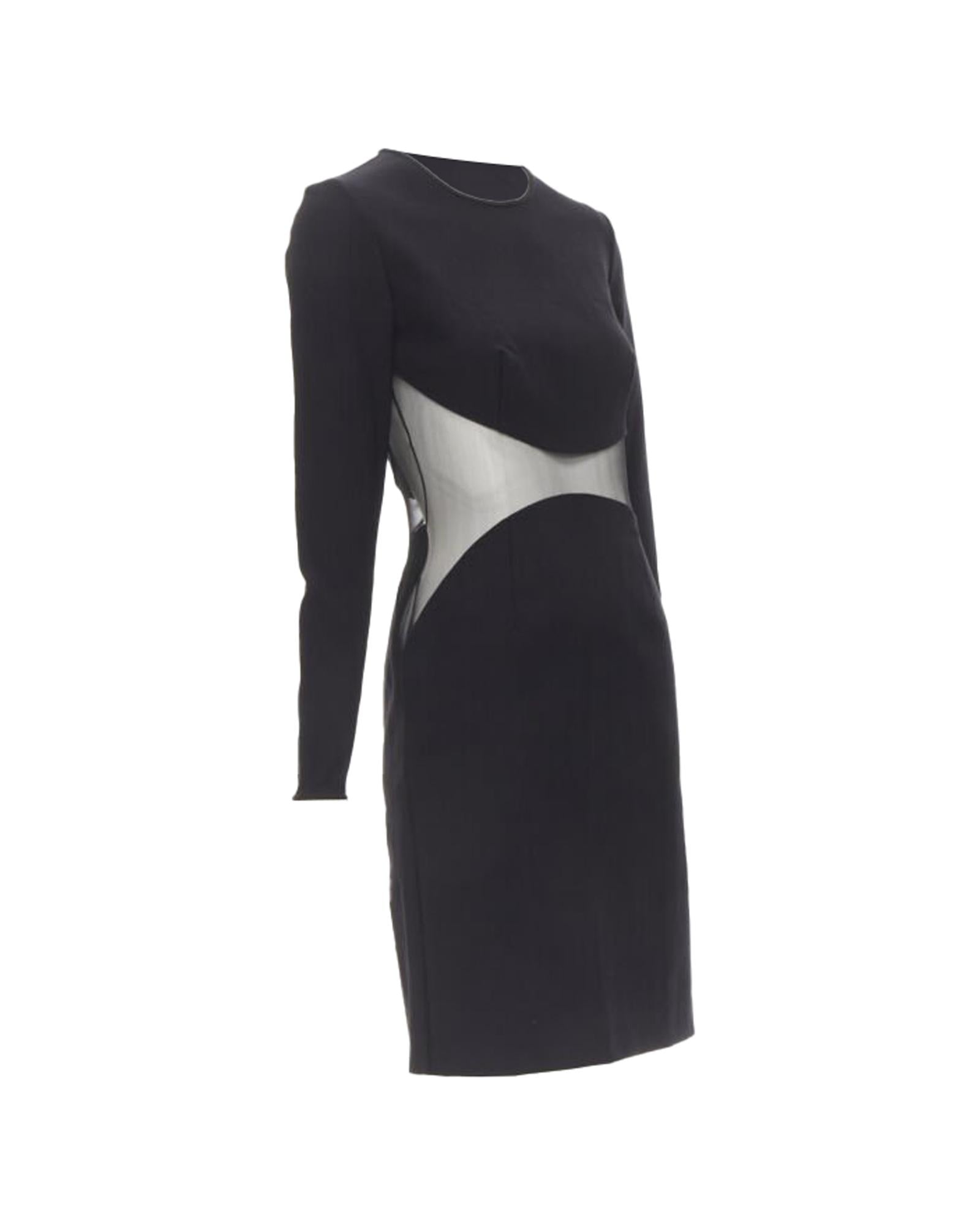 Pre-owned Stylish Fitted Dress with Long Sleeves and Sheer Detail