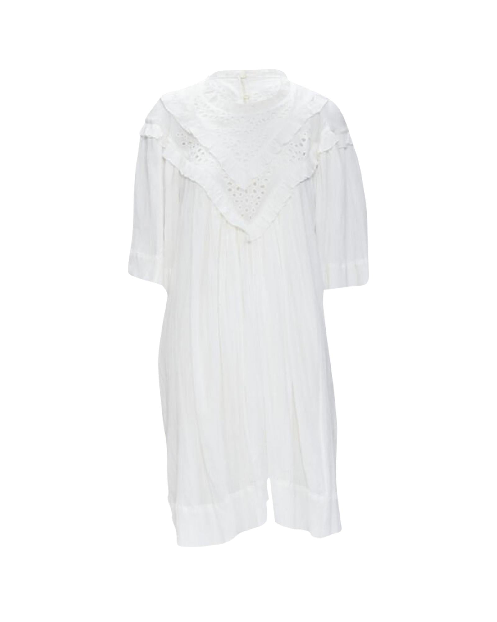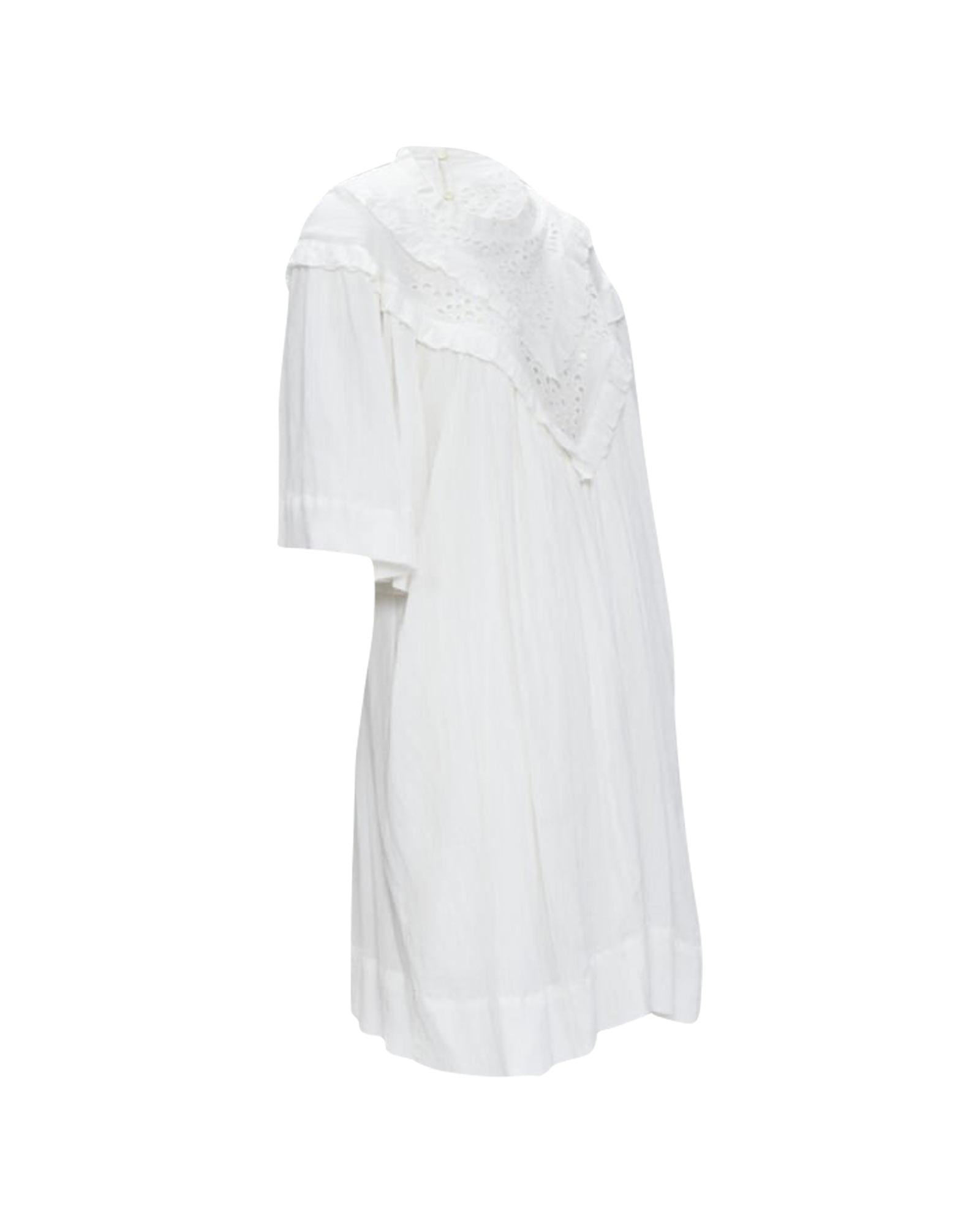 Pre-owned Elegant Dress with Eyelet Detail and Short Sleeves