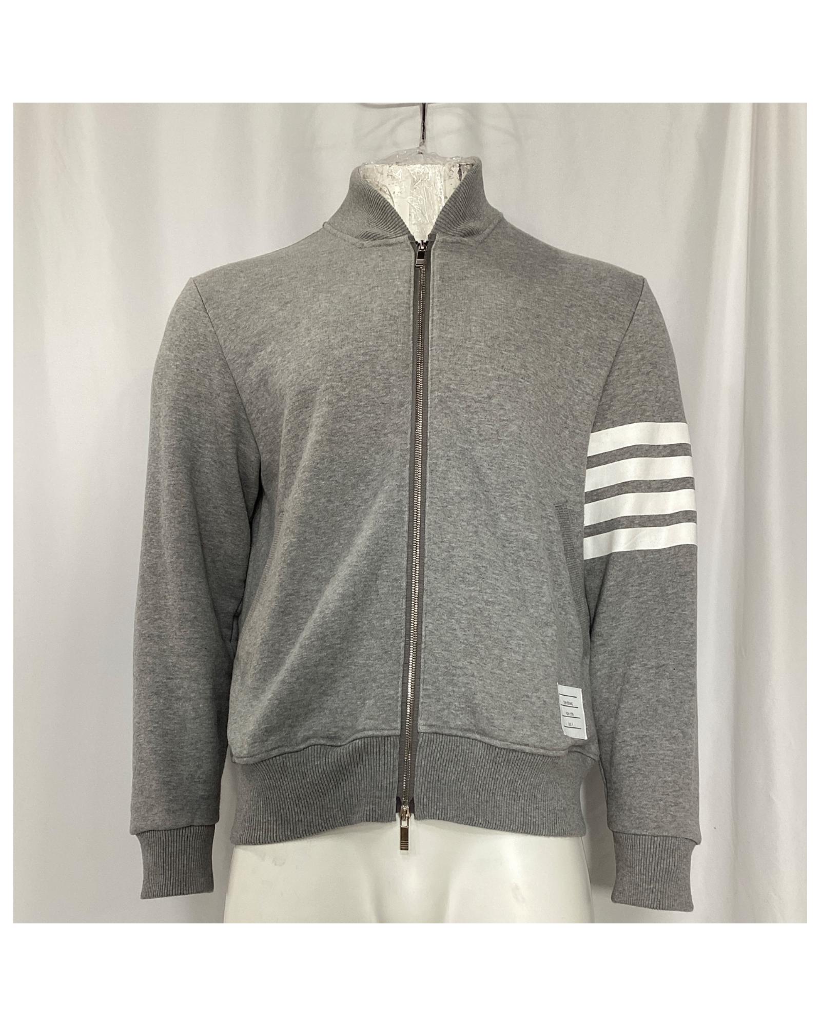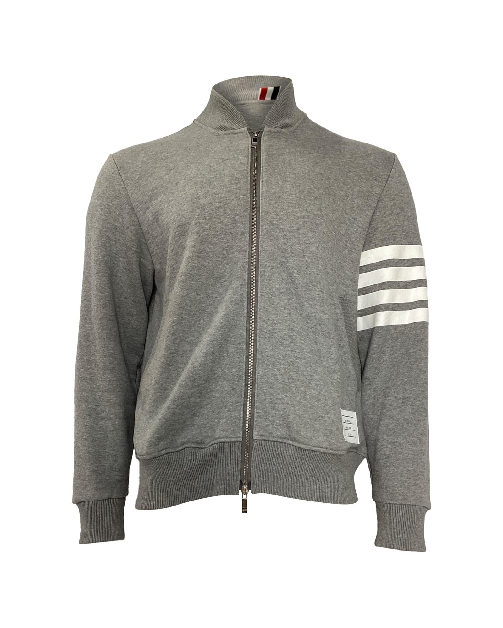 • Thom Browne Bomber Loopback 4 Bar Jacket in Grey Cotton