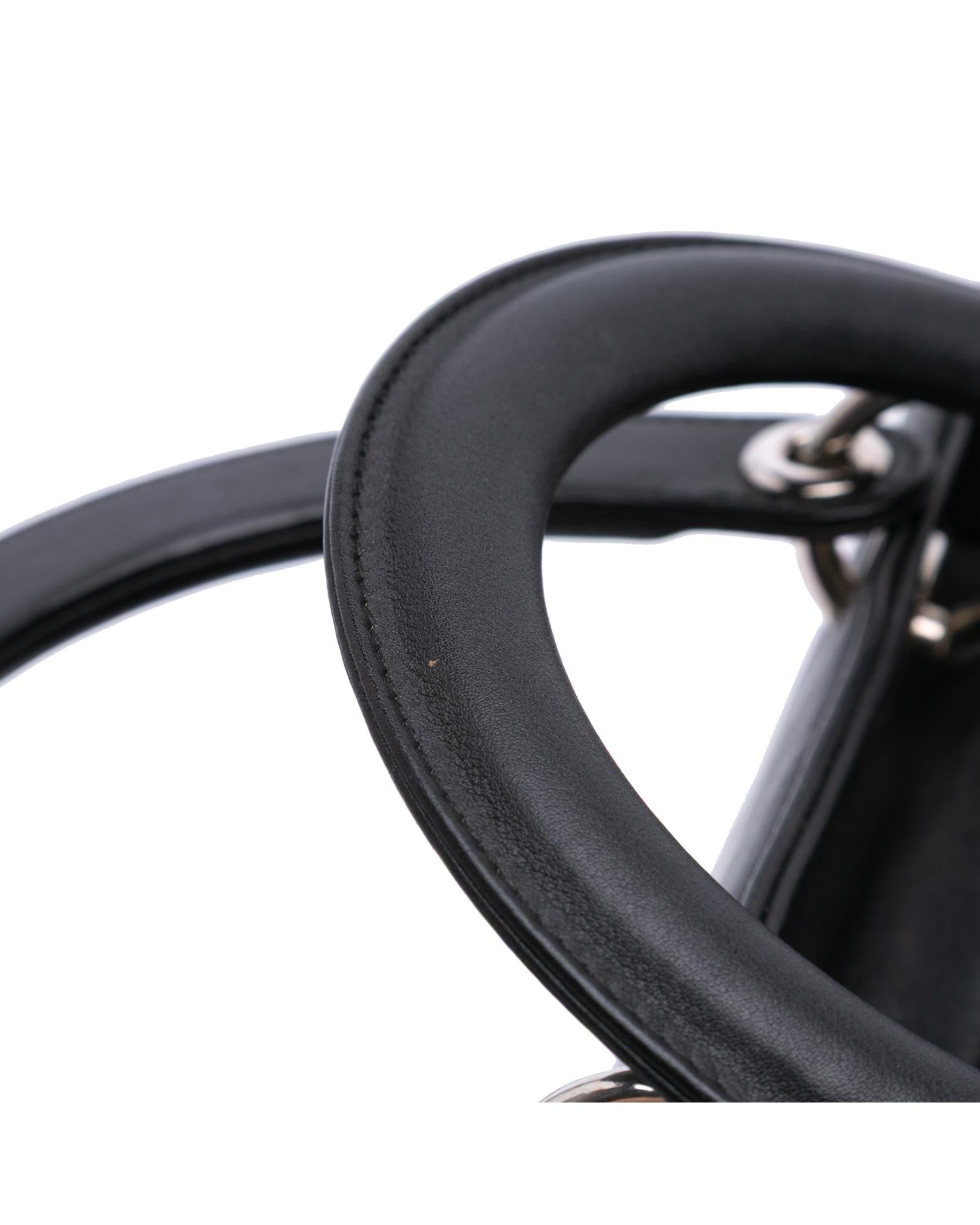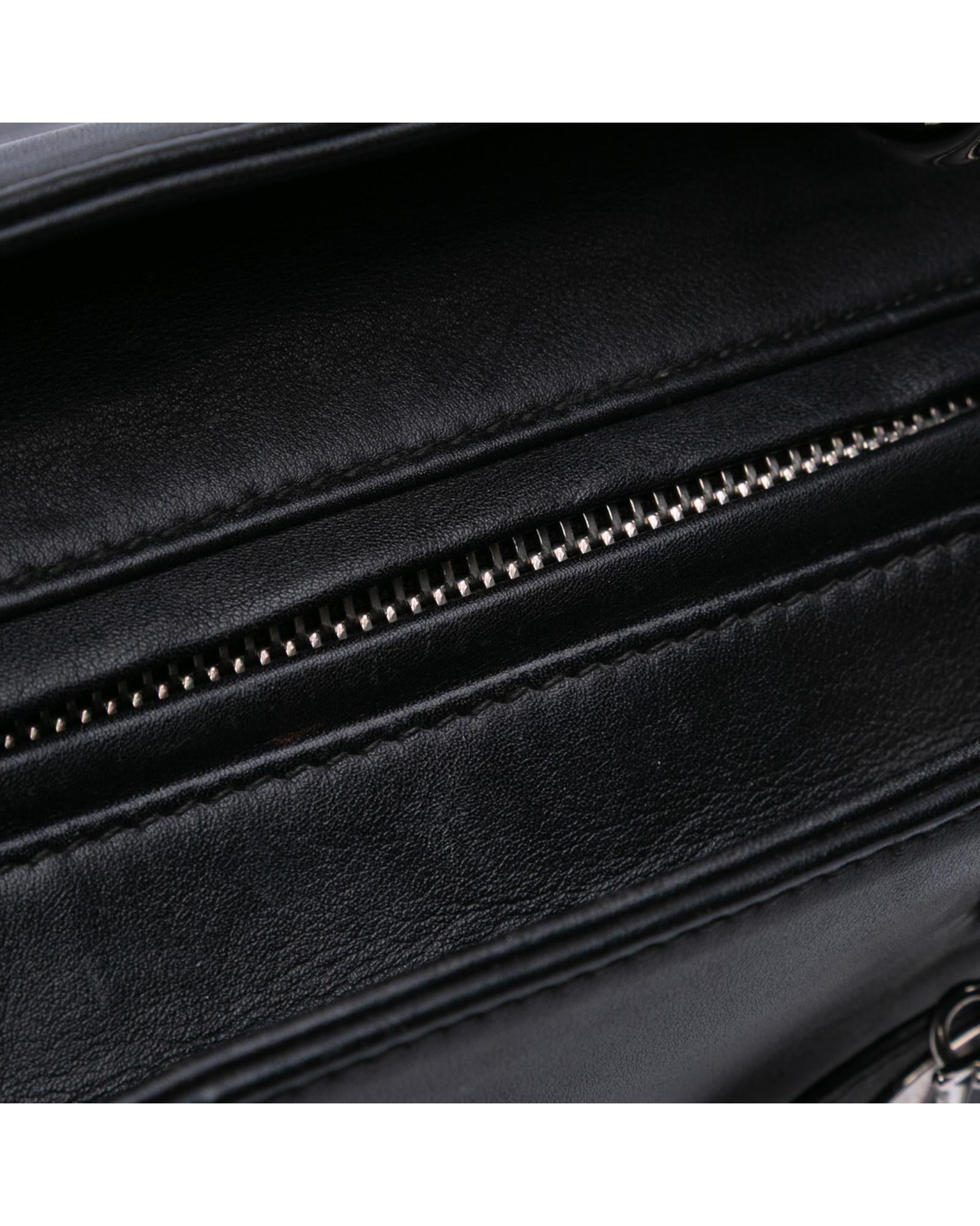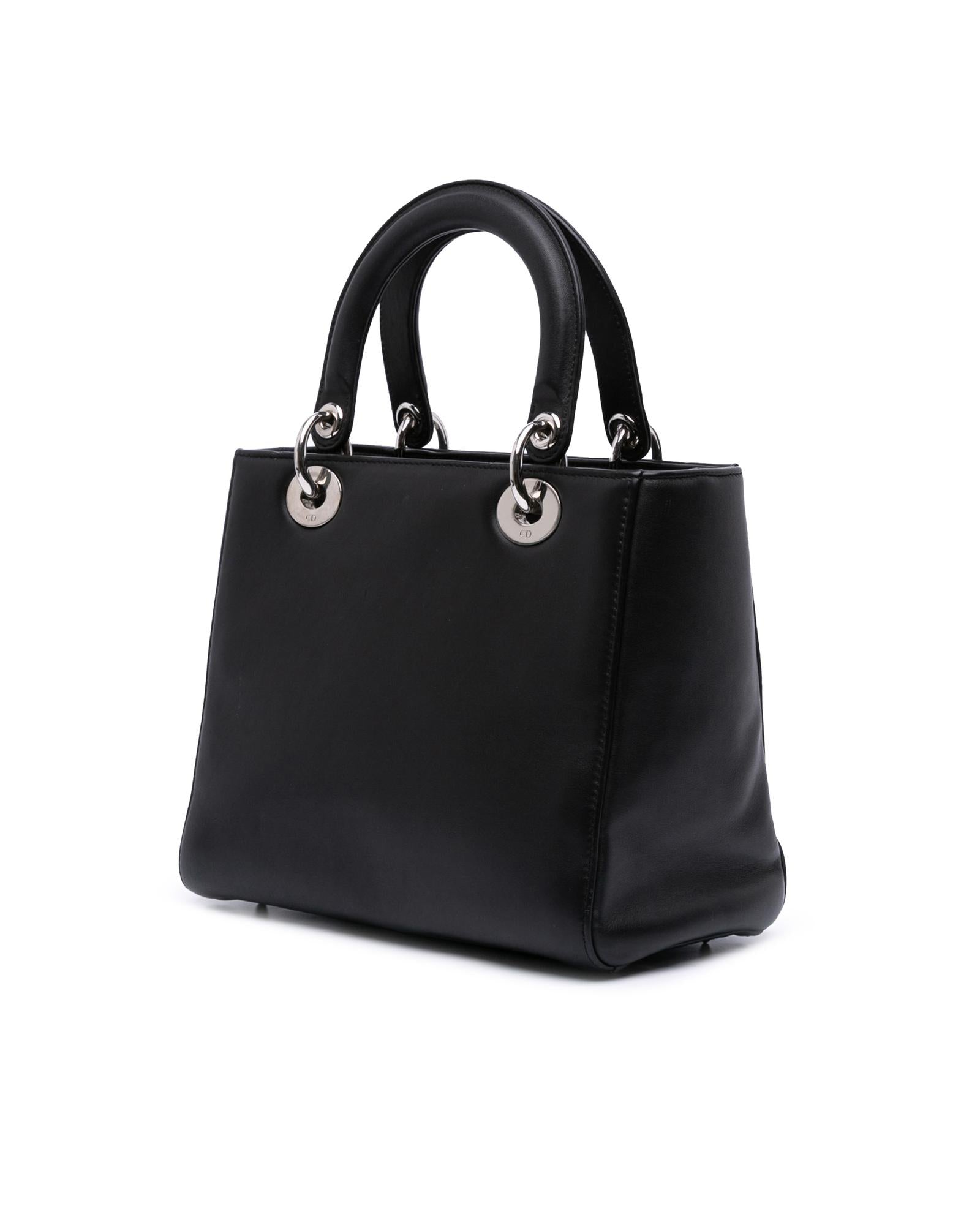This satchel features a leather body flat leather handles a detachable strap a top zip closure and an interior zip pocket.Brand: Dior Vintage