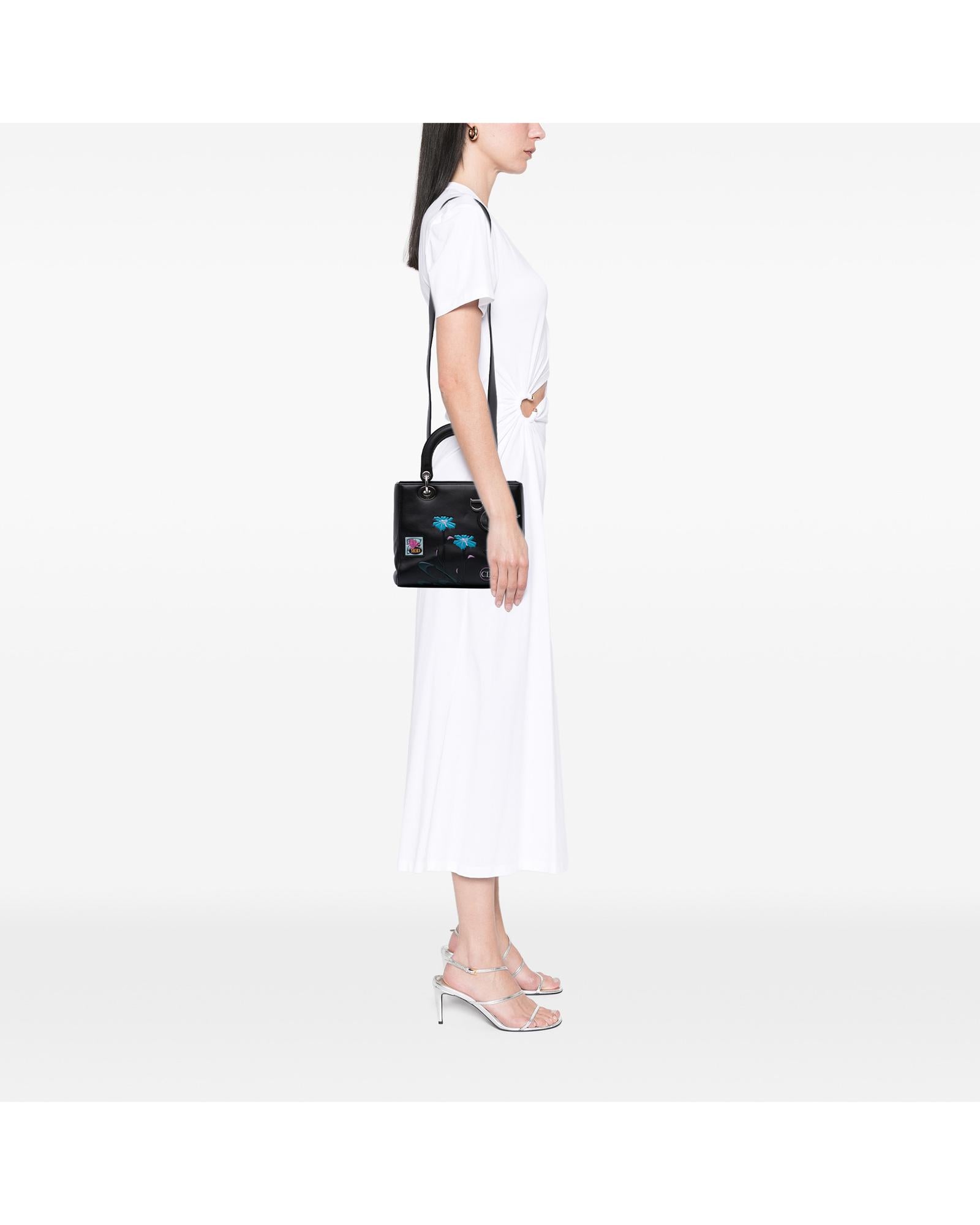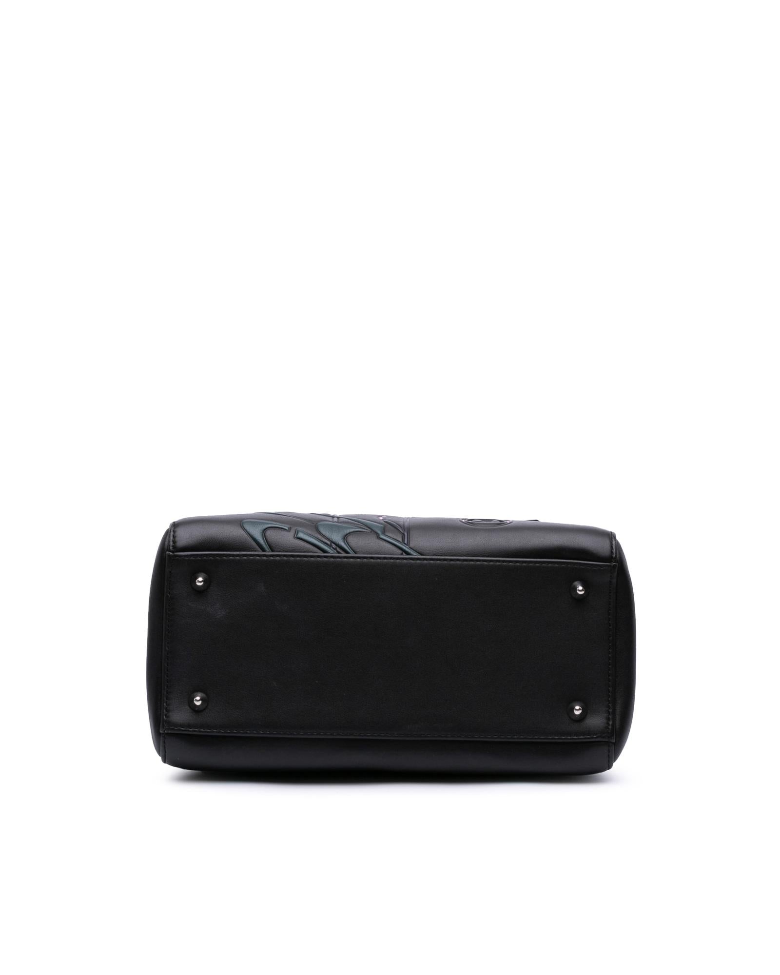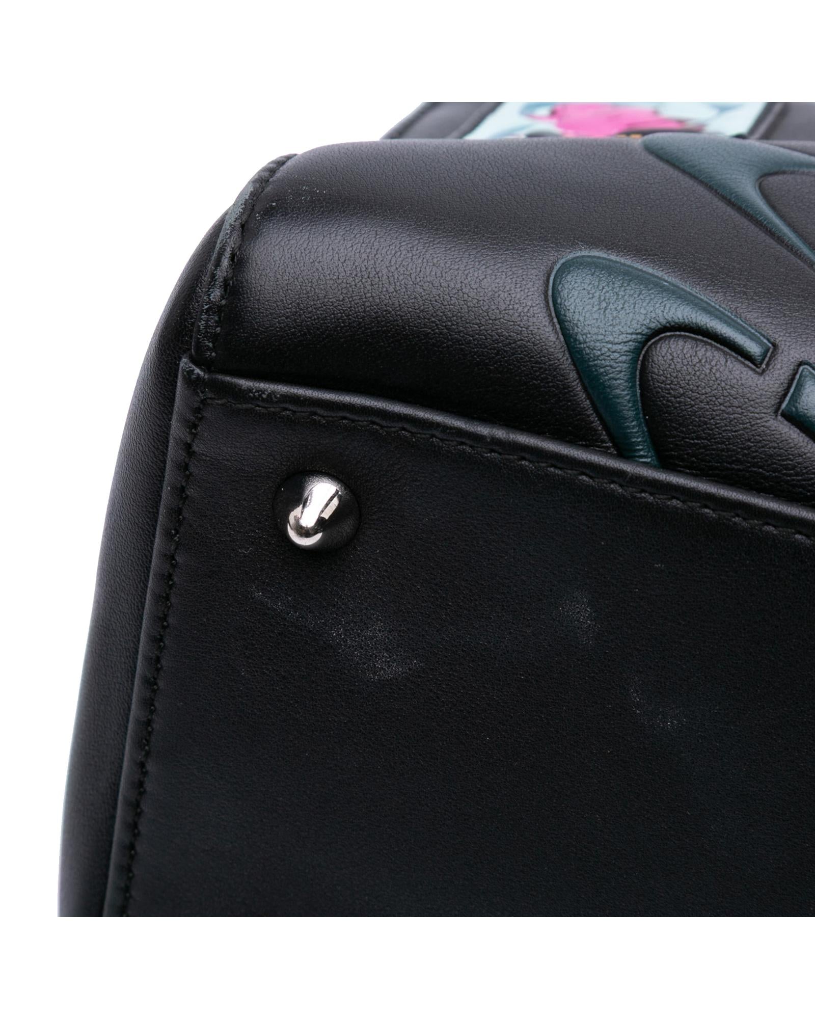 This satchel features a leather body flat leather handles a detachable strap a top zip closure and an interior zip pocket.Brand: Dior Vintage