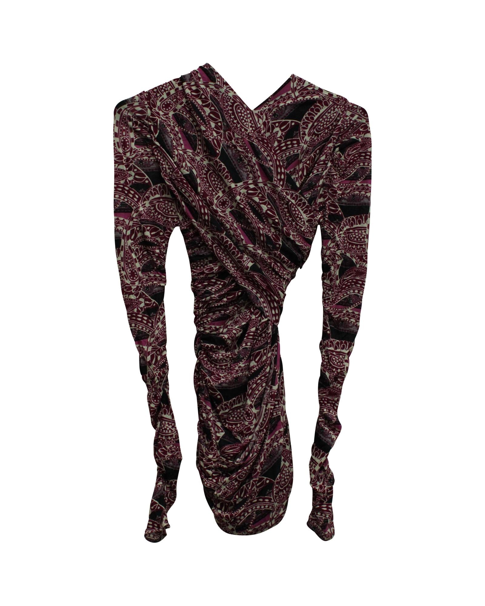 - Isabel Marant Ruched Paisley Print Mini Dress in Purple Viscose