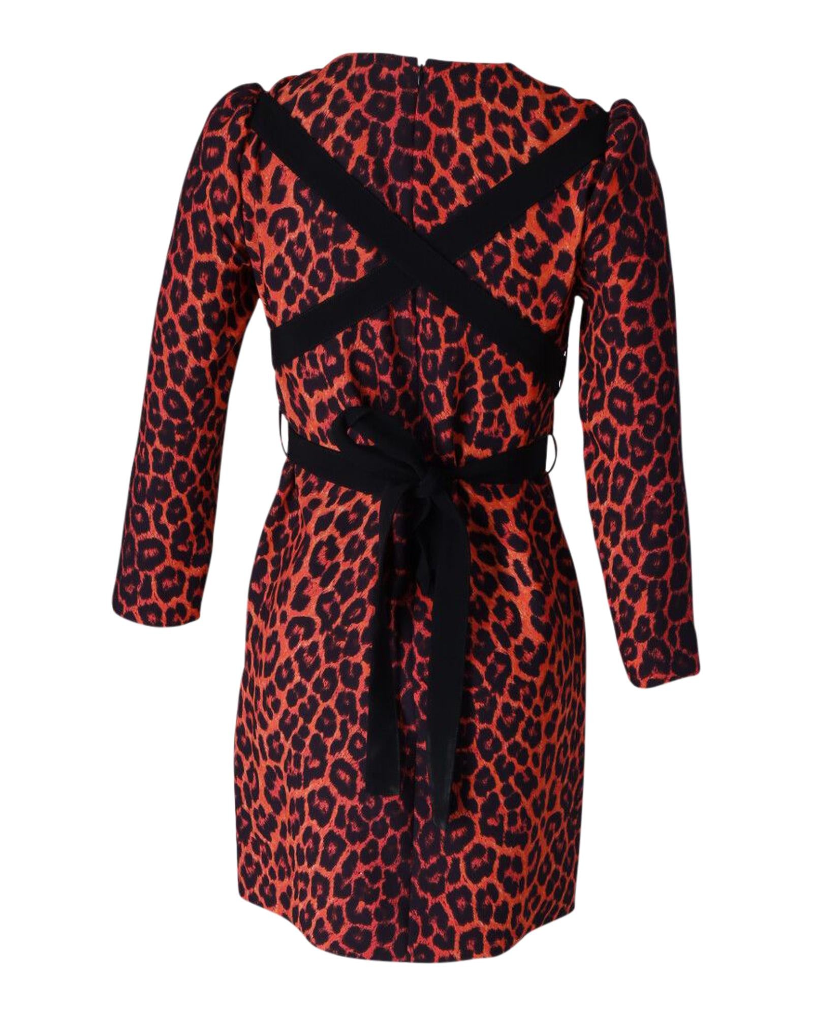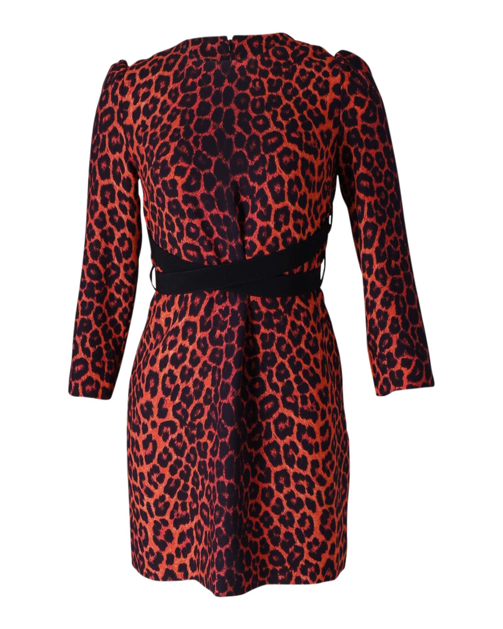 Pre-owned Leopard Print Mini Dress Belted Waist