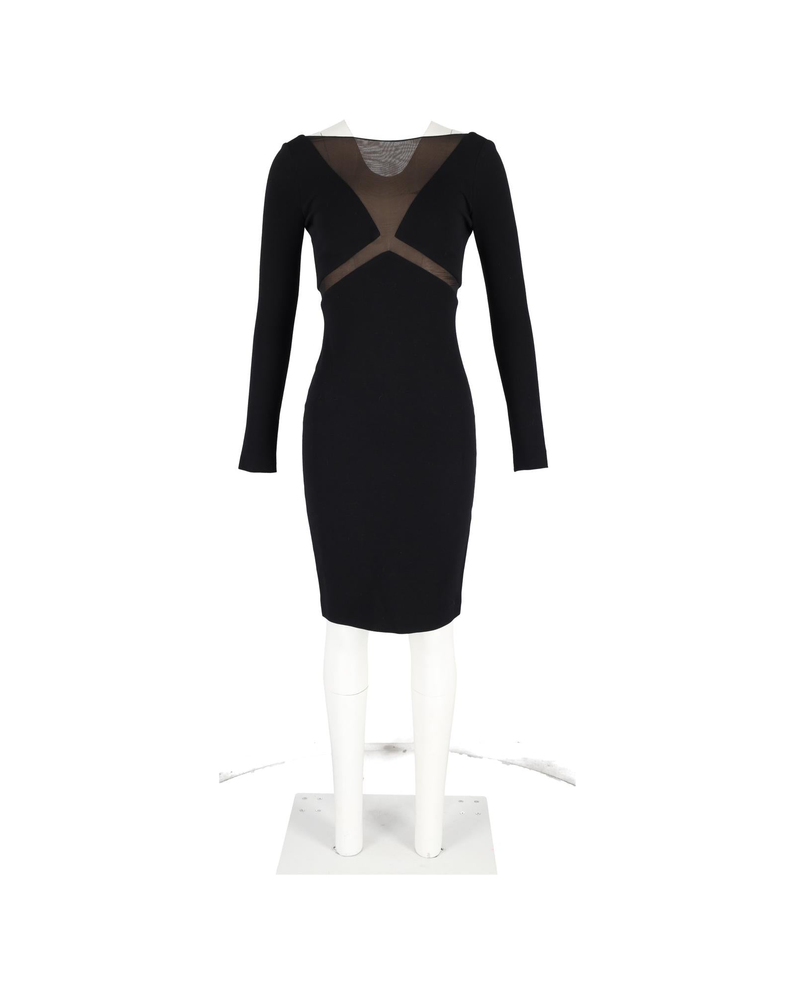 Pre-owned Long Sleeve Bodycon Dress Mesh Neckline