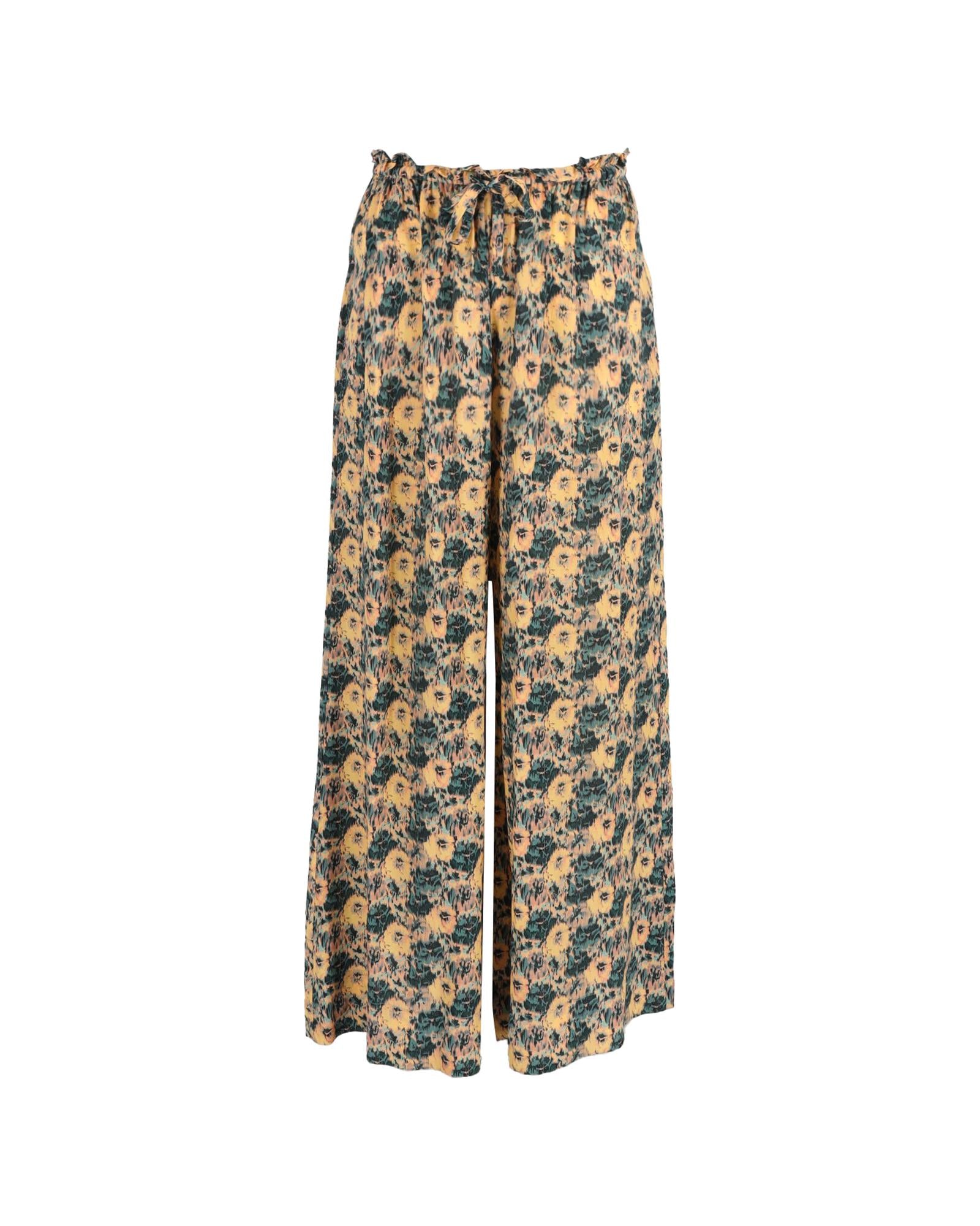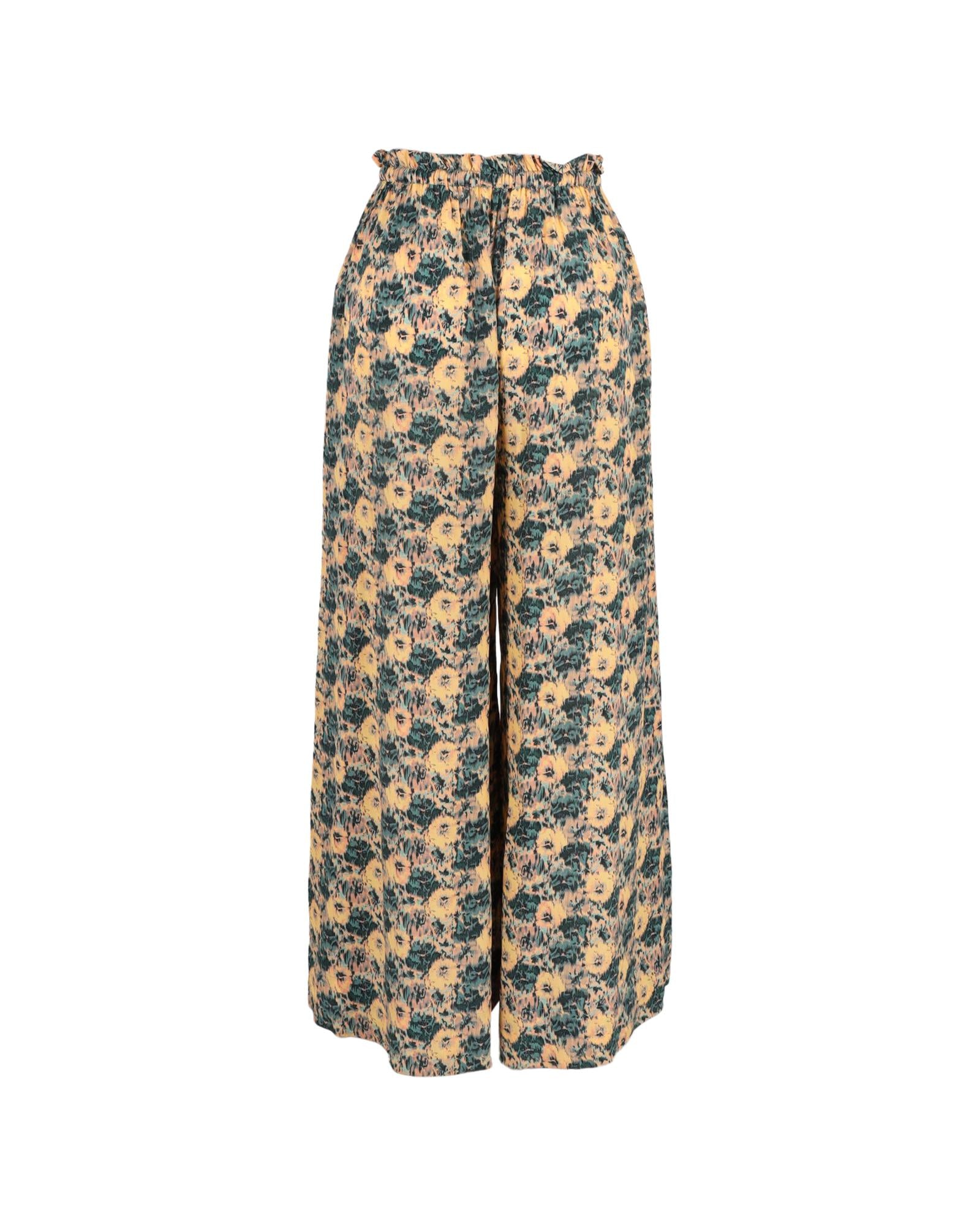 Pre-owned Floral Wide Leg Pants Drawstring Waist